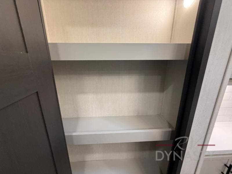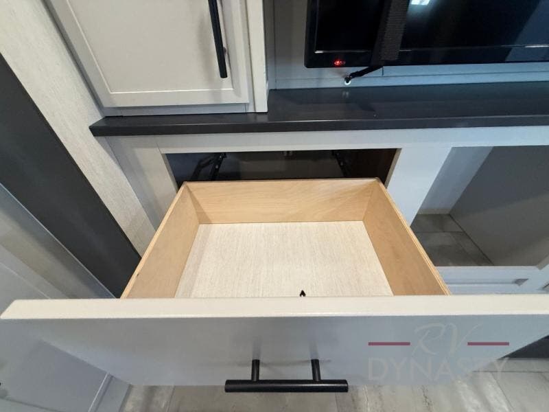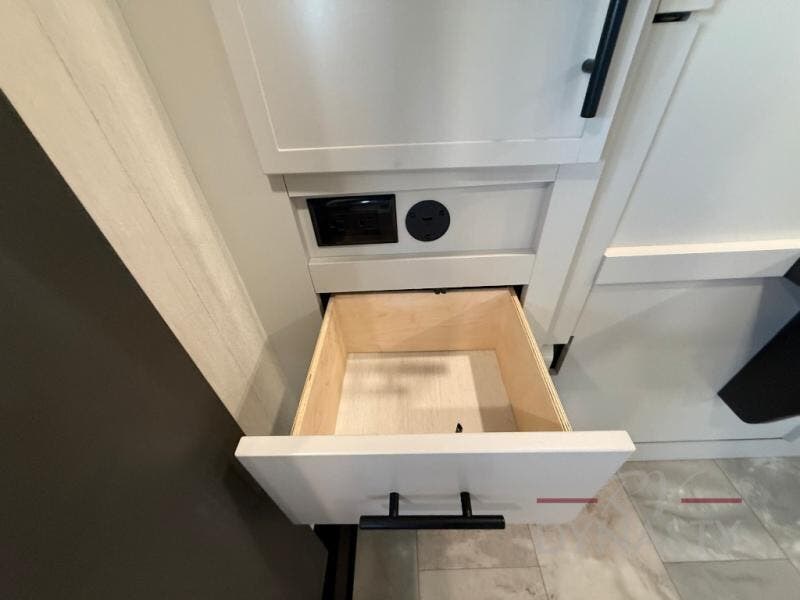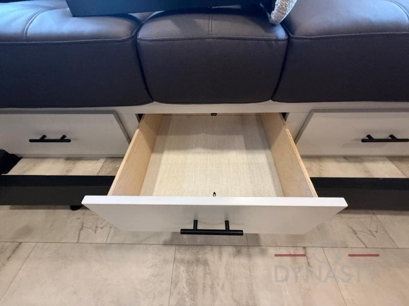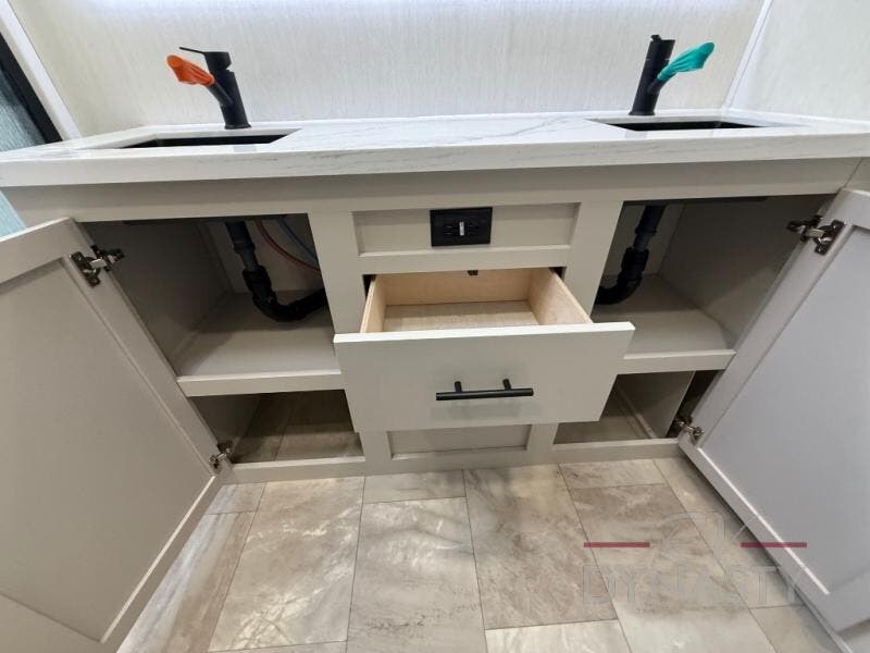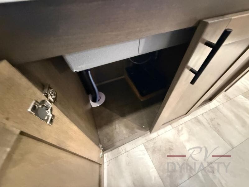 The Sanibel series stands out with a combination of unique and highly functional exterior and interior features designed for both convenience and durability. On the outside, a drop-frame pass-through storage area with a rubberized liner offers ample space while protecting your gear from moisture and wear. Setting up camp is effortless thanks to the one-touch auto-leveling system and rubberized suspension equalizer, which provide a smooth and stable foundation. Inside, comfort meets practicality with carpet less slides for easy cleaning and blackout roller shades for privacy and temperature control. The real wood cabinet doors and solid surface countertops add a touch of elegance, no matter where the road takes you.