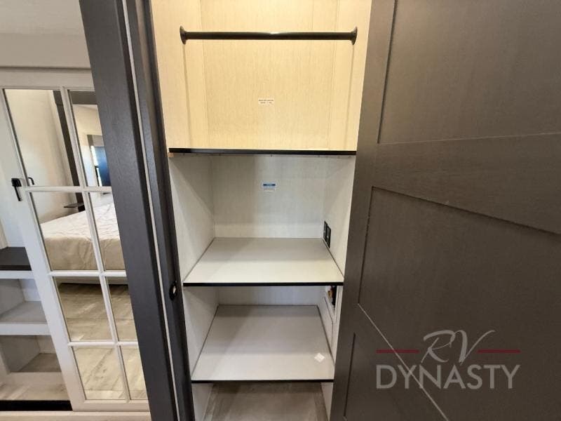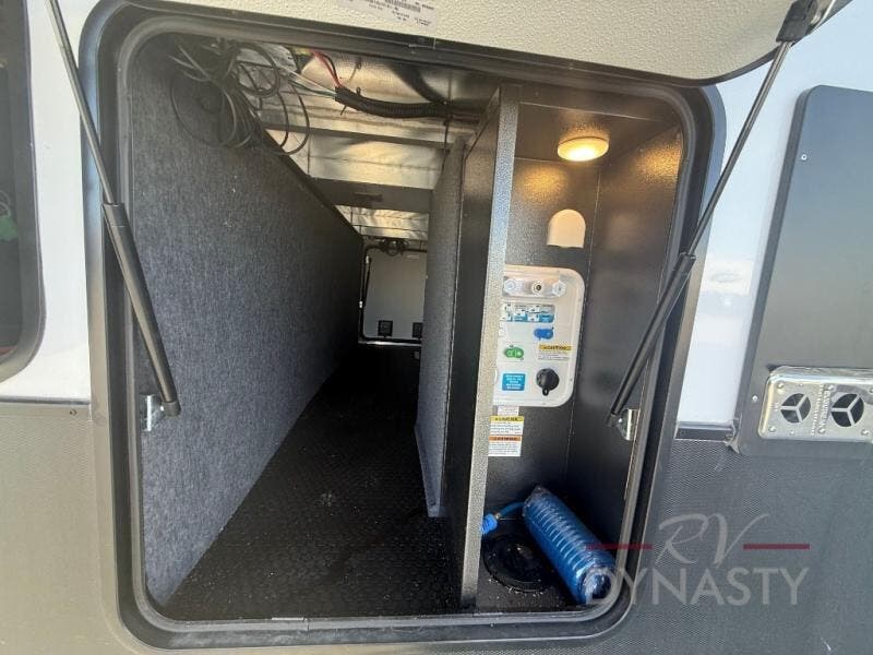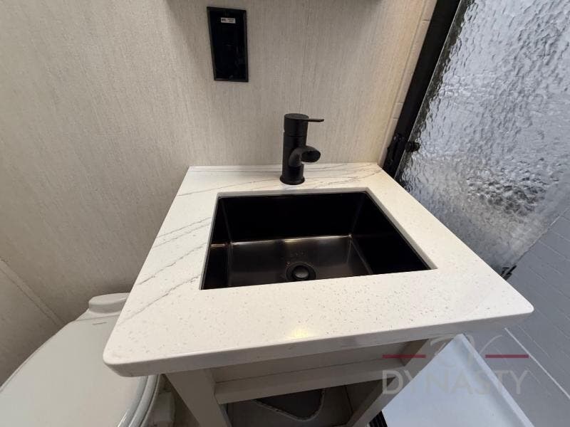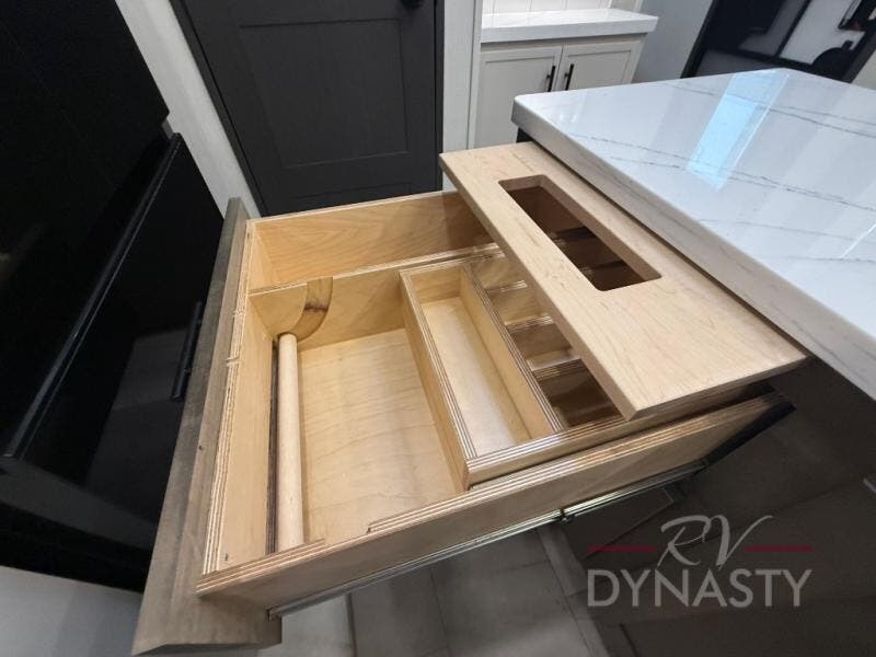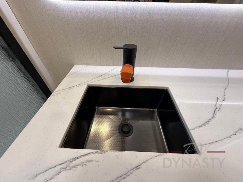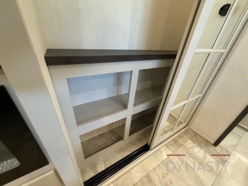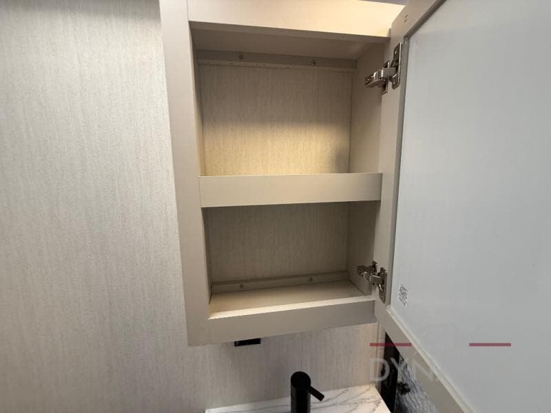 The Sanibel series stands out with a combination of unique and highly functional exterior and interior features designed for both convenience and durability. On the outside, a drop-frame pass-through storage area with a rubberized liner offers ample space while protecting your gear from moisture and wear. Setting up camp is effortless thanks to the one-touch auto-leveling system and rubberized suspension equalizer, which provide a smooth and stable foundation. Inside, comfort meets practicality with carpet less slides for easy cleaning and blackout roller shades for privacy and temperature control. The real wood cabinet doors and solid surface countertops add a touch of elegance, no matter where the road takes you.