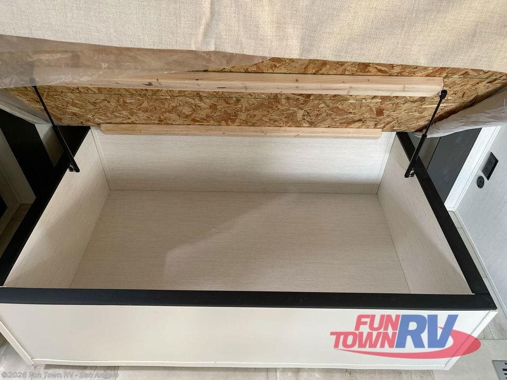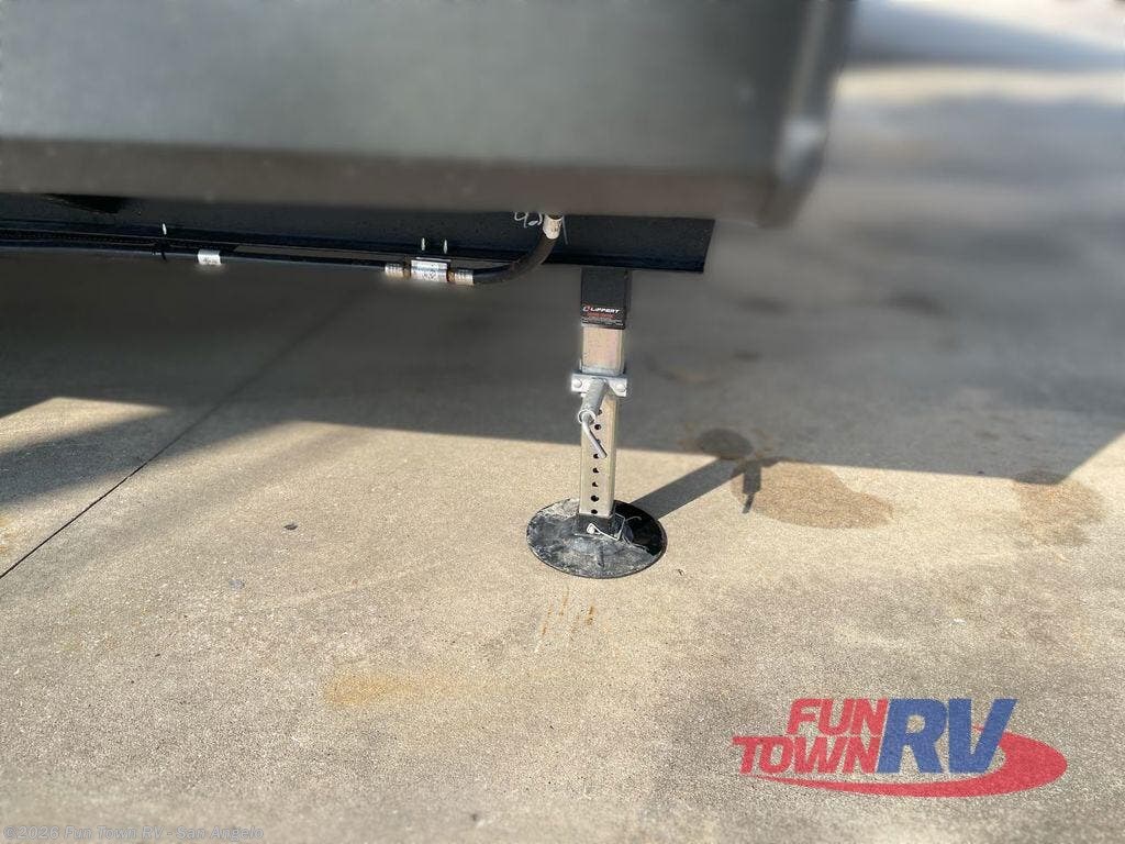 The Sanibel series stands out with a combination of unique and highly functional exterior and interior features designed for both convenience and durability. On the outside, a drop-frame pass-through storage area with a rubberized liner offers ample space while protecting your gear from moisture and wear. Setting up camp is effortless thanks to the one-touch auto-leveling system and rubberized suspension equalizer, which provide a smooth and stable foundation. Inside, comfort meets practicality with carpet less slides for easy cleaning and blackout roller shades for privacy and temperature control. The real wood cabinet doors and solid surface countertops add a touch of elegance, no matter where the road takes you.