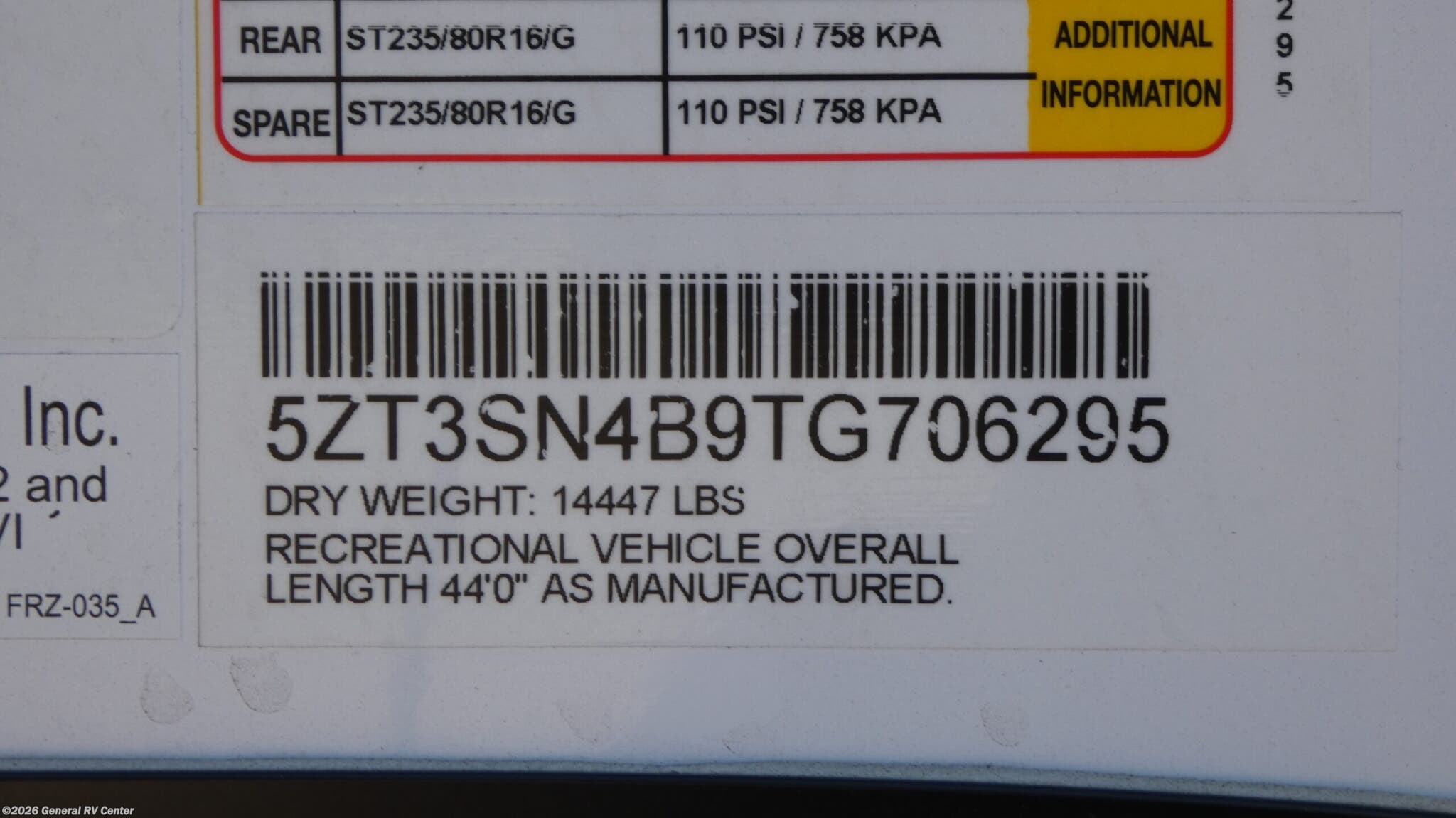 - VIN5ZT3SN4B9TG706295
