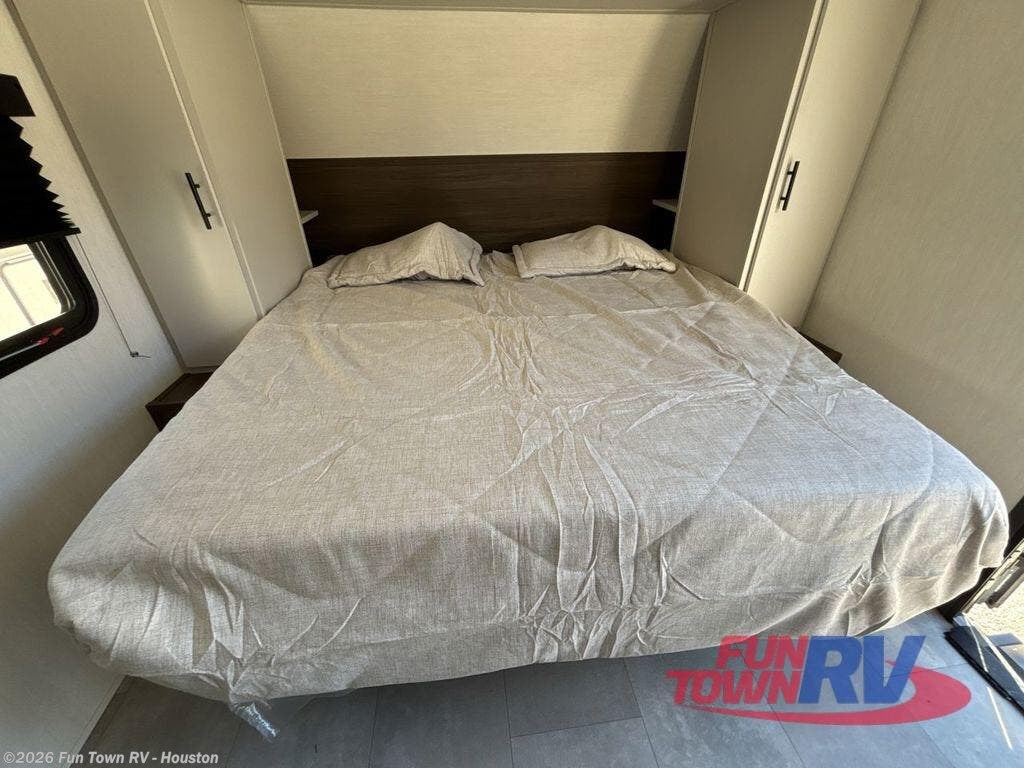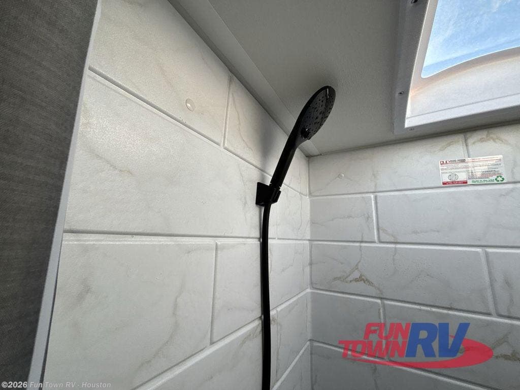 This travel trailer features an array of premium amenities! The spacious full rear shower provides a rejuvenating retreat, perfect for unwinding after a long day. The sophisticated entertainment center is ideal for cozy nights in, and the plush jackknife sofa offers a comfortable spot to relax or sleep. Generous storage space for your belongings is provided by ample overhead cabinets. Further, the gourmet kitchen is equipped with a convenient side 12V fridge, high-performance three-burner cooktop, and cleverly designed hidden pantry, making meal prep and cooking a true delight. Plus, the majestic front bedroom features a sumptuous king bed that will make you feel like you are sleeping in the clouds, expansive wardrobes, and overhead cabinets for storing your essentials.