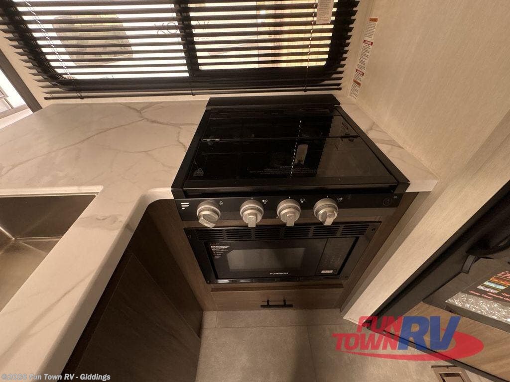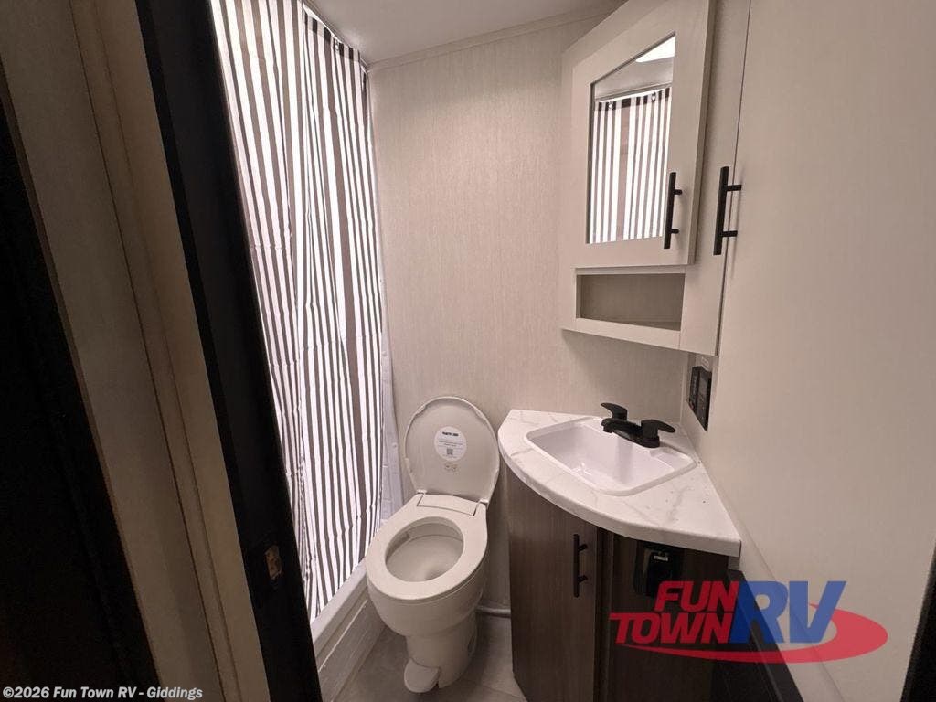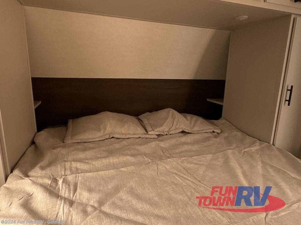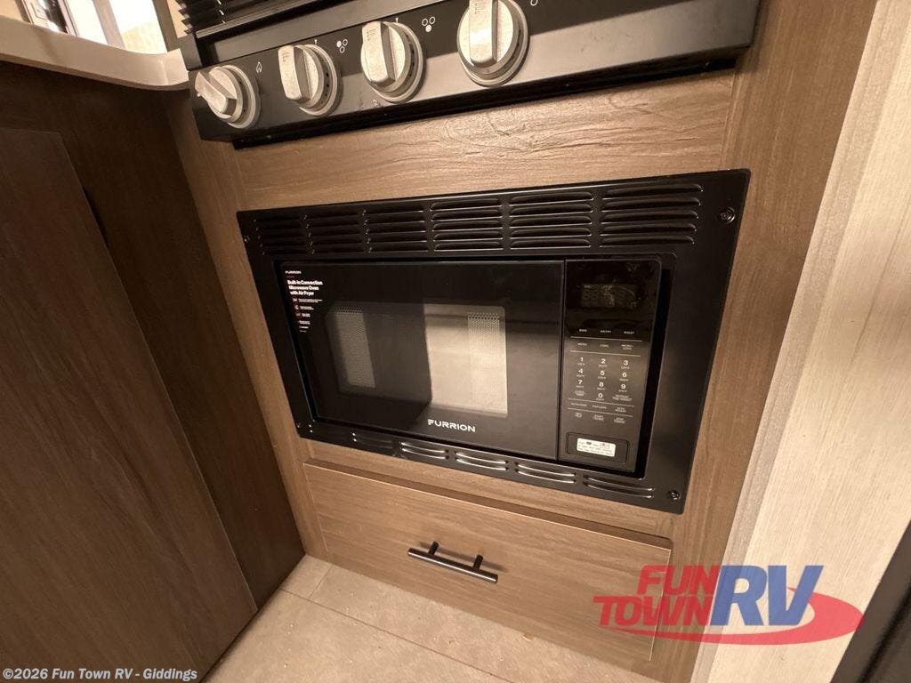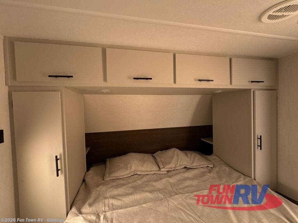 This travel trailer features an array of premium amenities! The spacious full rear shower provides a rejuvenating retreat, perfect for unwinding after a long day. The sophisticated entertainment center is ideal for cozy nights in, and the plush jackknife sofa offers a comfortable spot to relax or sleep. Generous storage space for your belongings is provided by ample overhead cabinets. Further, the gourmet kitchen is equipped with a convenient side 12V fridge, high-performance three-burner cooktop, and cleverly designed hidden pantry, making meal prep and cooking a true delight. Plus, the majestic front bedroom features a sumptuous king bed that will make you feel like you are sleeping in the clouds, expansive wardrobes, and overhead cabinets for storing your essentials.