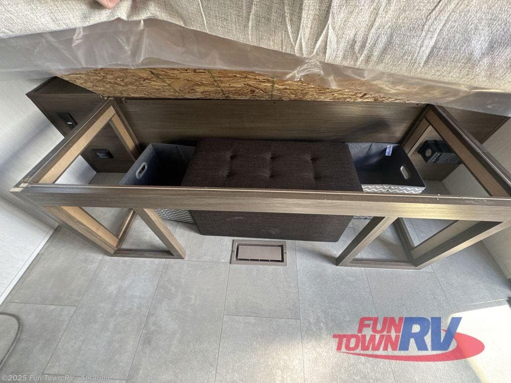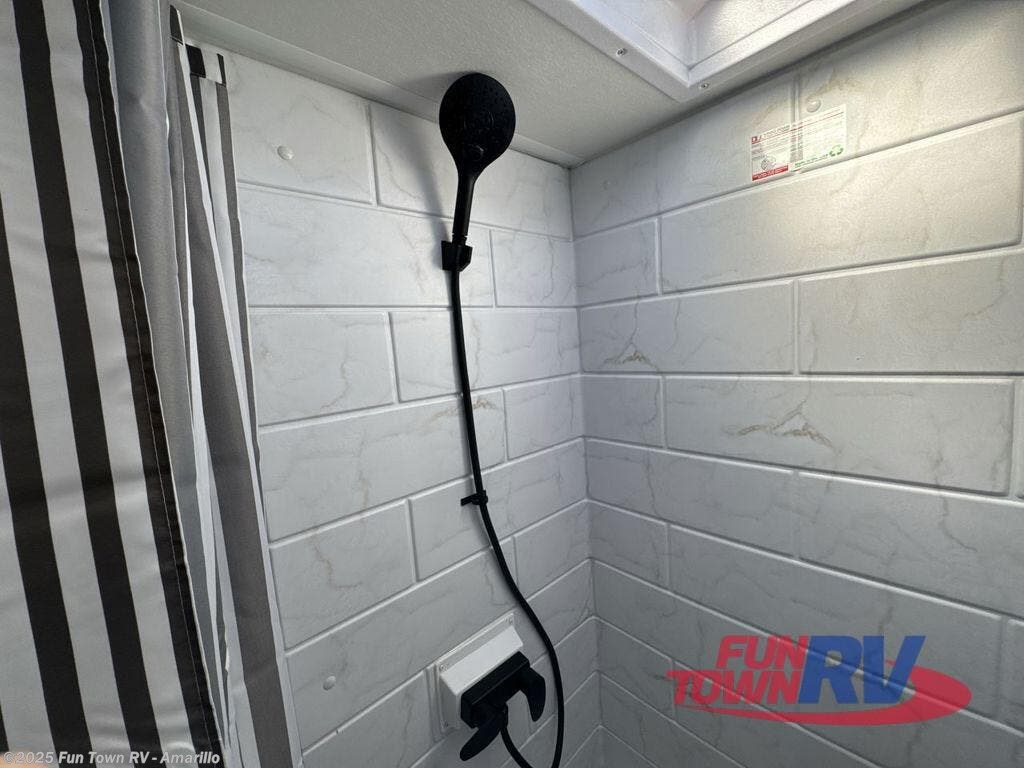 This travel trailer features an array of premium amenities! The spacious full rear shower provides a rejuvenating retreat, perfect for unwinding after a long day. The sophisticated entertainment center is ideal for cozy nights in, and the plush jackknife sofa offers a comfortable spot to relax or sleep. Generous storage space for your belongings is provided by ample overhead cabinets. Further, the gourmet kitchen is equipped with a convenient side 12V fridge, high-performance three-burner cooktop, and cleverly designed hidden pantry, making meal prep and cooking a true delight. Plus, the majestic front bedroom features a sumptuous king bed that will make you feel like you are sleeping in the clouds, expansive wardrobes, and overhead cabinets for storing your essentials.