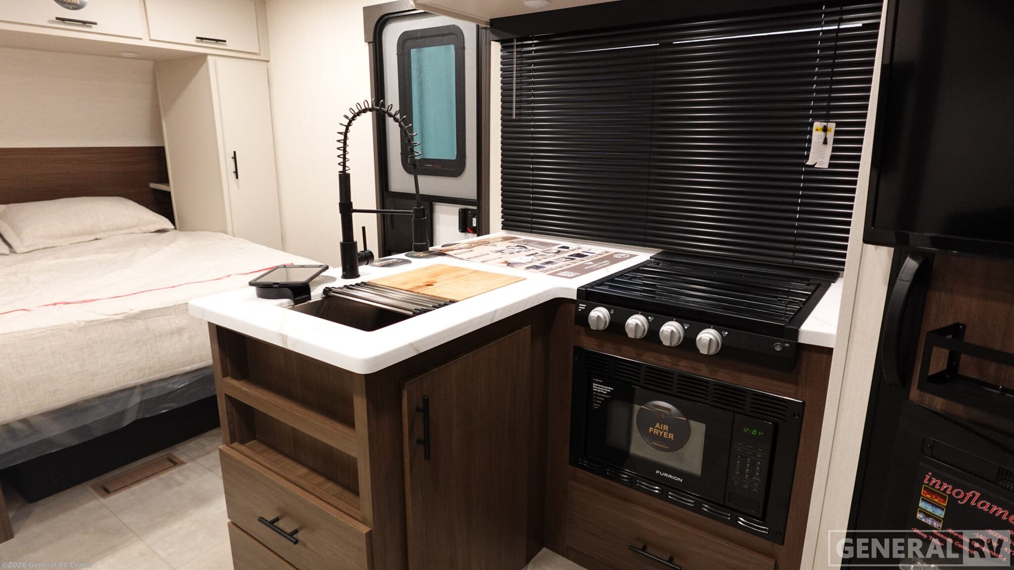 Experience the perfect blend of comfort and functionality with the 2026 Prime Time Tracer 195RB. This travel trailer is designed for those who appreciate both style and practicality. At 23 feet in length, it offers a cozy yet spacious interior that comfortably sleeps three. The inviting camp king bed promises restful nights, while the jackknife sofa provides a versatile space for relaxation or additional sleeping arrangements. The kitchen is equipped with an air fryer cooktop, making meal preparation a breeze. Ample storage options, including a hidden pantry and overhead cabinets, ensure that all your essentials are neatly organized. The bathroom features a convenient shower and a closet for extra storage. With a fresh water capacity of 42 gallons and an impressive gray water capacity of 96 gallons, you'll be well-equipped for extended adventures. The single slide-out expands your living space, and the pass-thru storage offers easy access to your gear. With a sleek exterior and a single awning, the Tracer 195RB is perfect for outdoor enjoyment. Its lightweight design, with a dry weight of 5013 pounds, makes it easy to tow, while the 15,000 BTU air conditioner keeps the interior comfortable, no matter the weather. Visit your nearest General RV dealership to explore this exceptional travel trailer in person and start planning your next adventure!