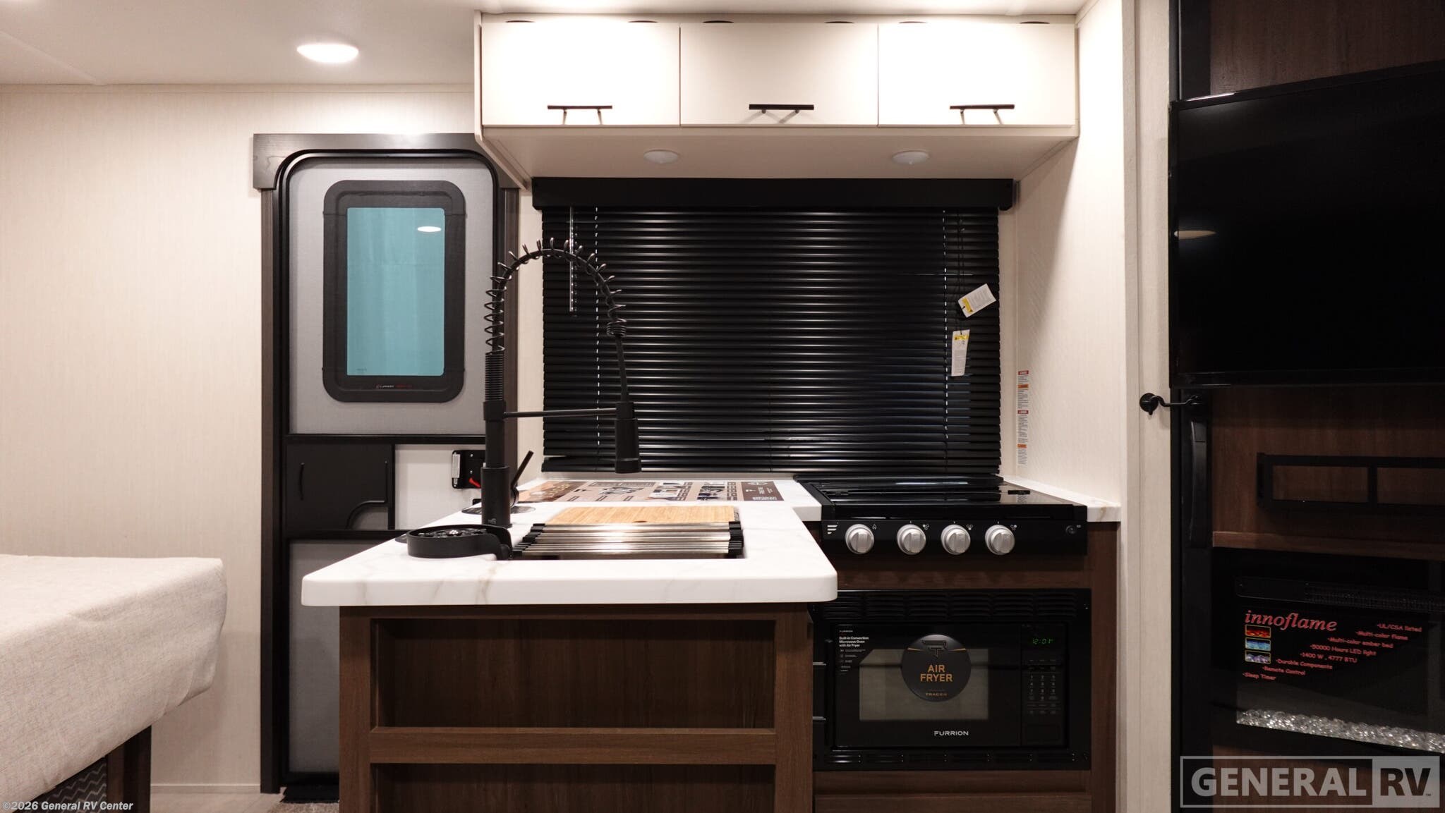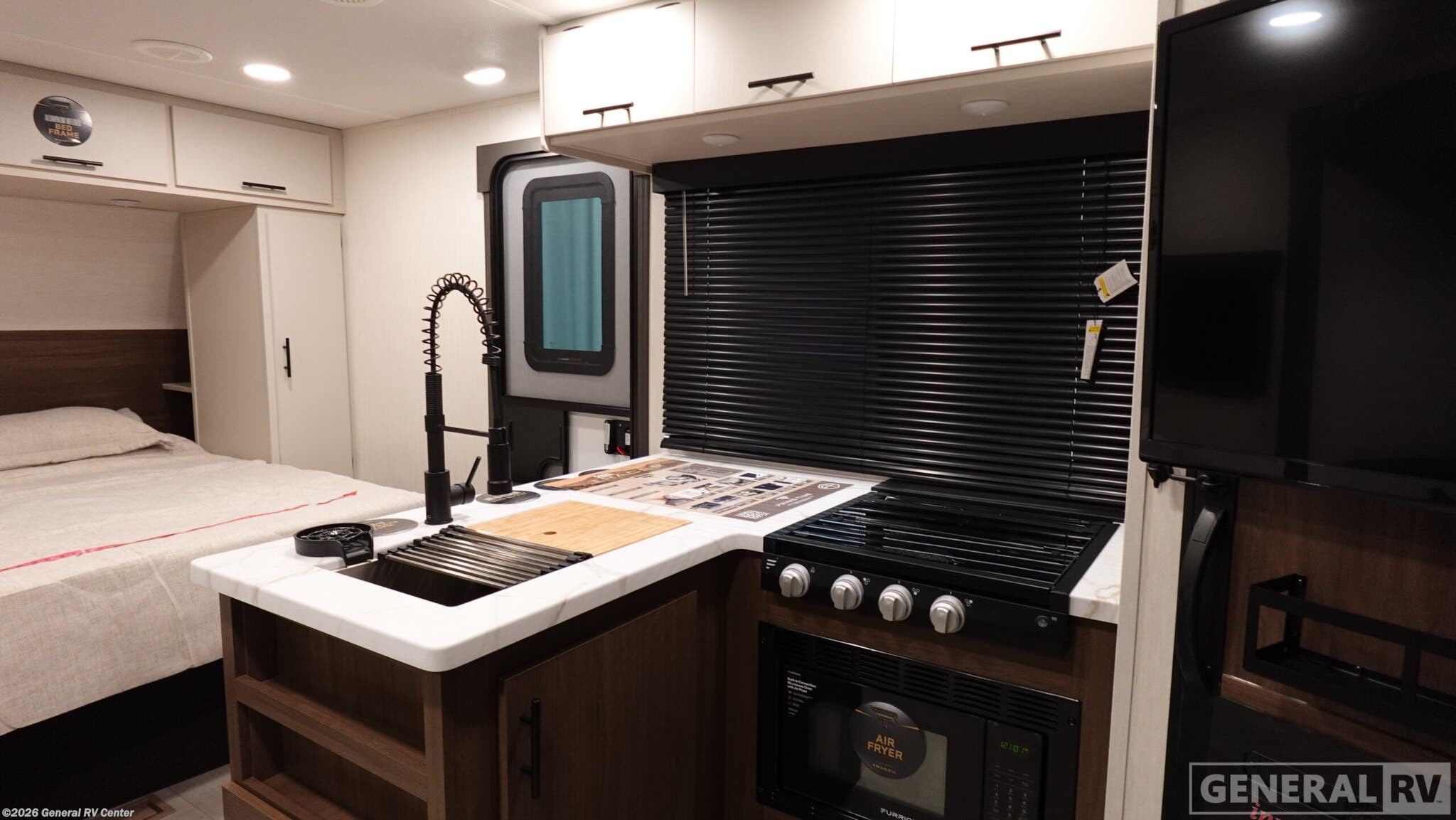 Welcome to the 2025 Prime Time RV Tracer 170RS, where compact meets comfort in a beautifully designed travel trailer. With a total length of 23 feet, this RV is perfect for those seeking adventure without compromising on the comforts of home. The well-appointed center kitchen features a three-burner cooktop and a full-size electric refrigerator, making meal preparation a breeze. The rear living area invites relaxation with theater seating perfectly positioned to enjoy the entertainment center. Natural light floods the space, complemented by the 15 ft. powered retractable awning outside, creating an ideal spot for outdoor lounging. Retreat to the cozy sleeping area that houses a luxurious queen bed, ensuring restful nights under the stars. The center bath provides convenience and privacy, equipped with a shower curtain for a touch of home-like comfort. With ample storage options, including overhead cabinets and pass-thru storage, the Tracer 170RS ensures you have everything you need for your journey. Its lightweight design and single axle make towing effortless, while the robust D rated radial tires promise a smooth ride. Discover the perfect balance of style and functionality with this exceptional travel trailer. For more details or to see it in person, visit your nearest General RV Dealership.
