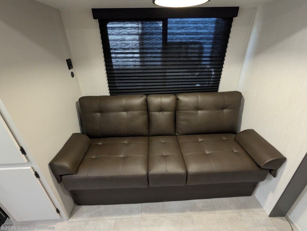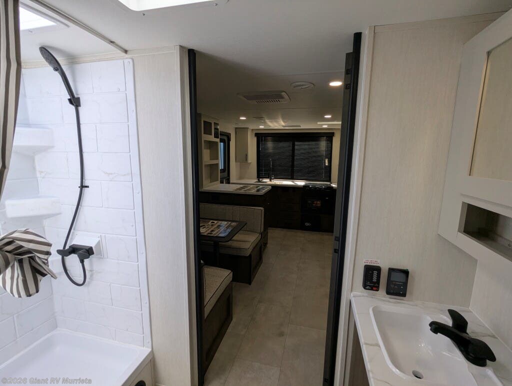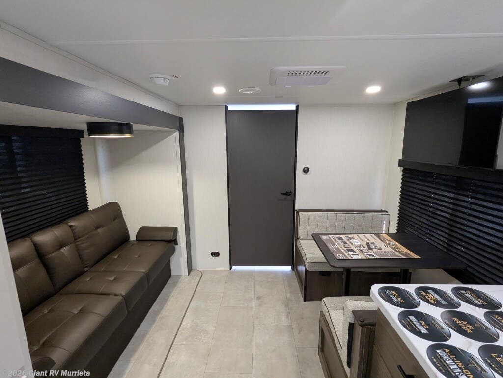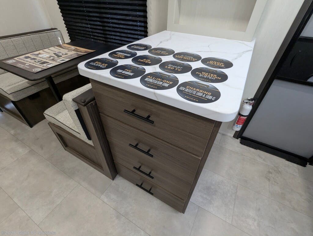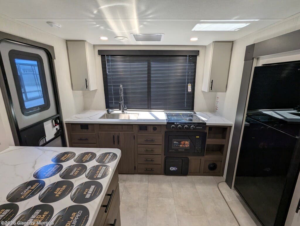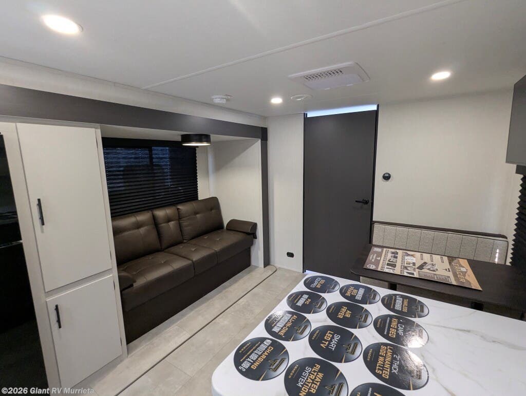 Rear Kitchen Excellence: Sleeps up to 4 with a spacious rear kitchen featuring ample counter space, pantry, and a large slideout that opens the living area with U-shaped dinette for meals and lounging.