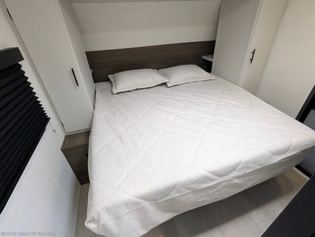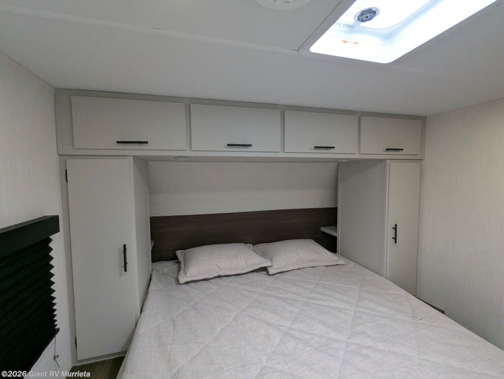 Front Bedroom Retreat: Includes a private front queen bed with wardrobe storage on both sides and overhead cabinets, creating a cozy, separated sleeping space.