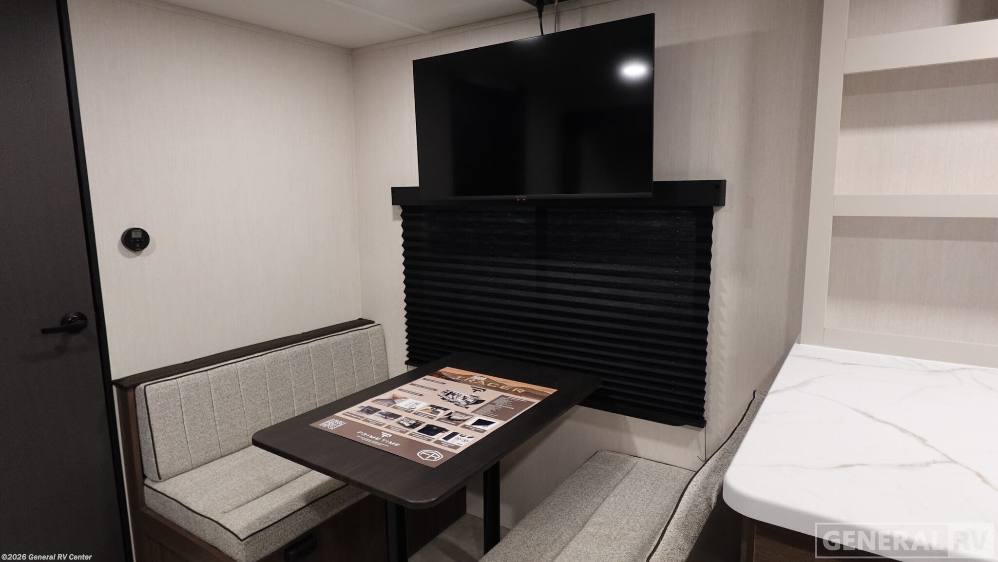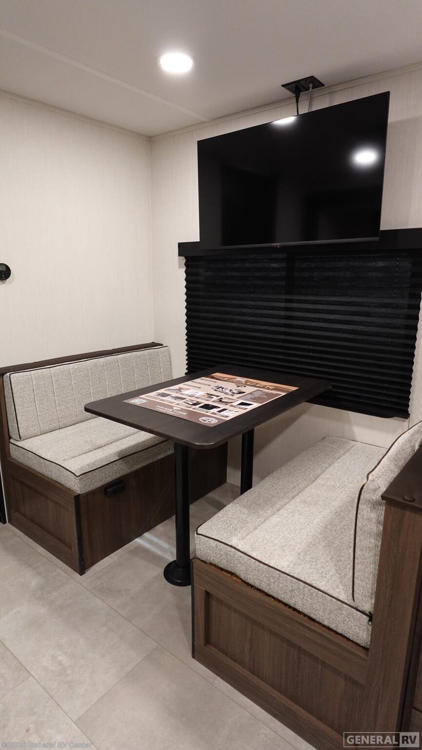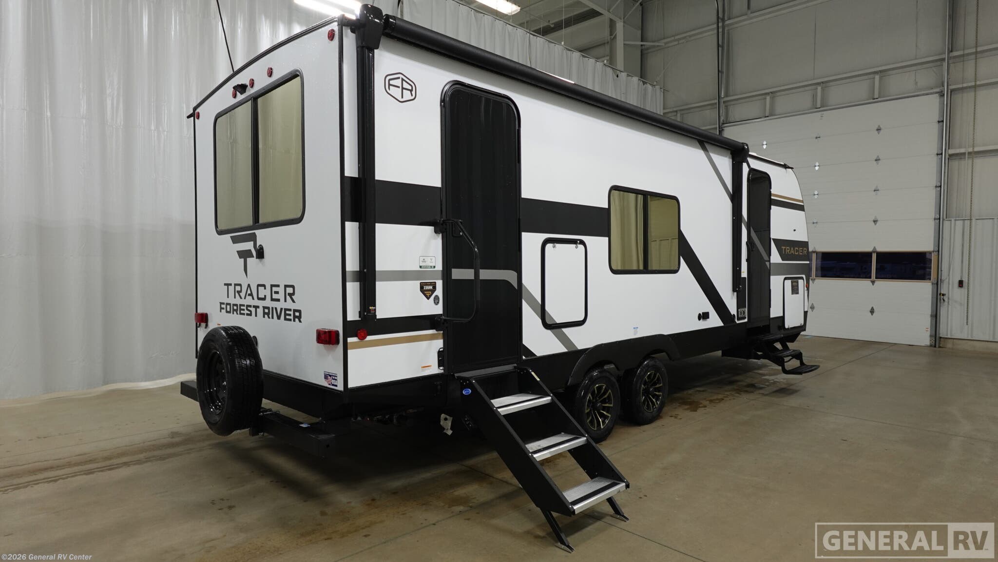 Experience the perfect blend of comfort and adventure with the 2026 Prime Time Tracer 235RK. This thoughtfully designed RV is your ticket to unforgettable journeys, offering a spacious and inviting interior that sleeps up to four. The heart of this model is its rear kitchen, complete with an air fryer cooktop and ample storage, making meal prep a breeze while you're on the road. The cozy jackknife sofa and dinette provide the perfect spots to unwind after a day of exploring, with large windows allowing natural light to fill the space. Retreat to the private bedroom, where a luxurious camp king bed awaits, surrounded by generous wardrobe and overhead storage. The bathroom is well-appointed, ensuring you have all the comforts of home wherever you go. With a single slide-out, this RV maximizes living space without sacrificing mobility. The 29-foot length and sleek design make it easy to tow and park, while the 42-gallon fresh water capacity ensures you're ready for extended stays in the great outdoors. Discover the freedom of the open road with the Tracer 235RK, and let every journey become a cherished memory. For more details, visit your nearest General RV dealership.