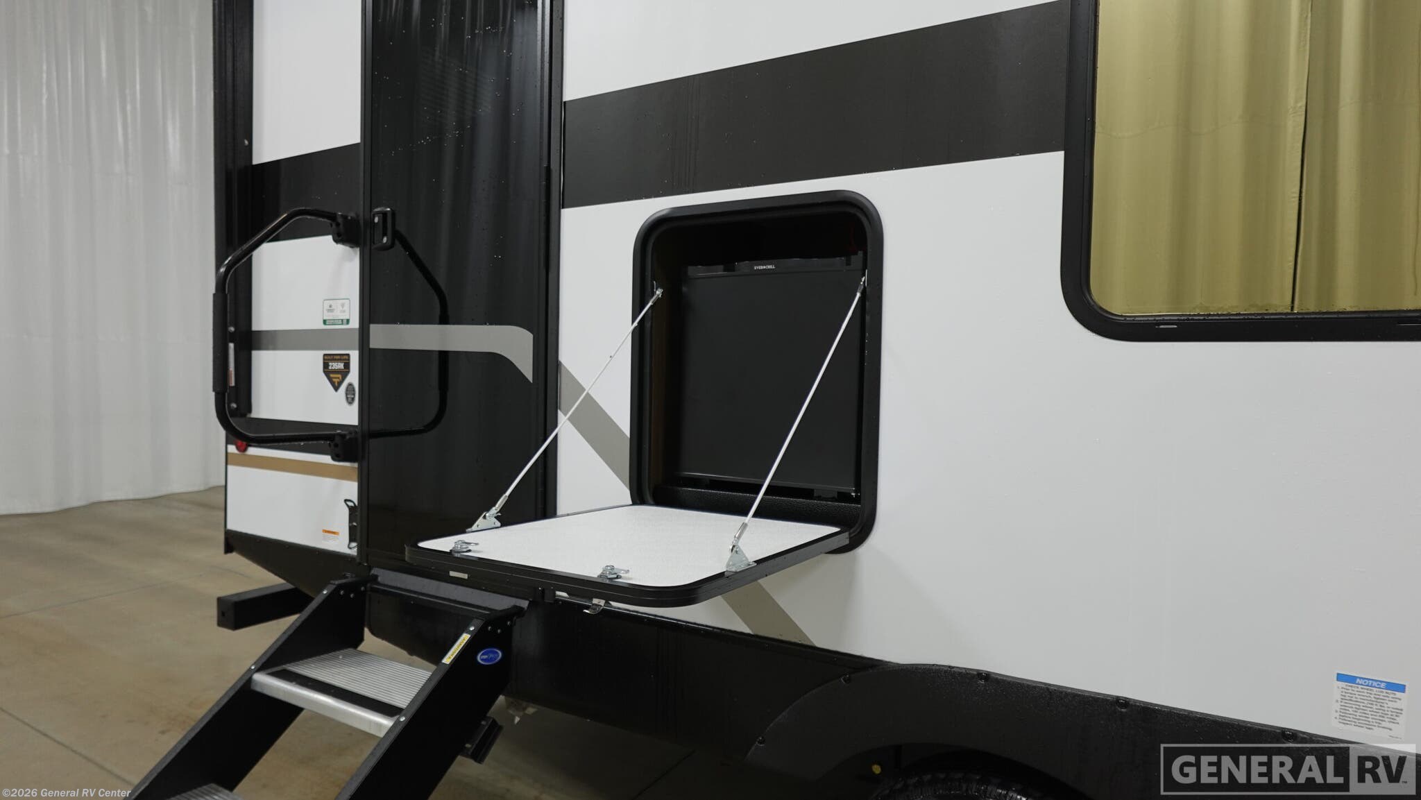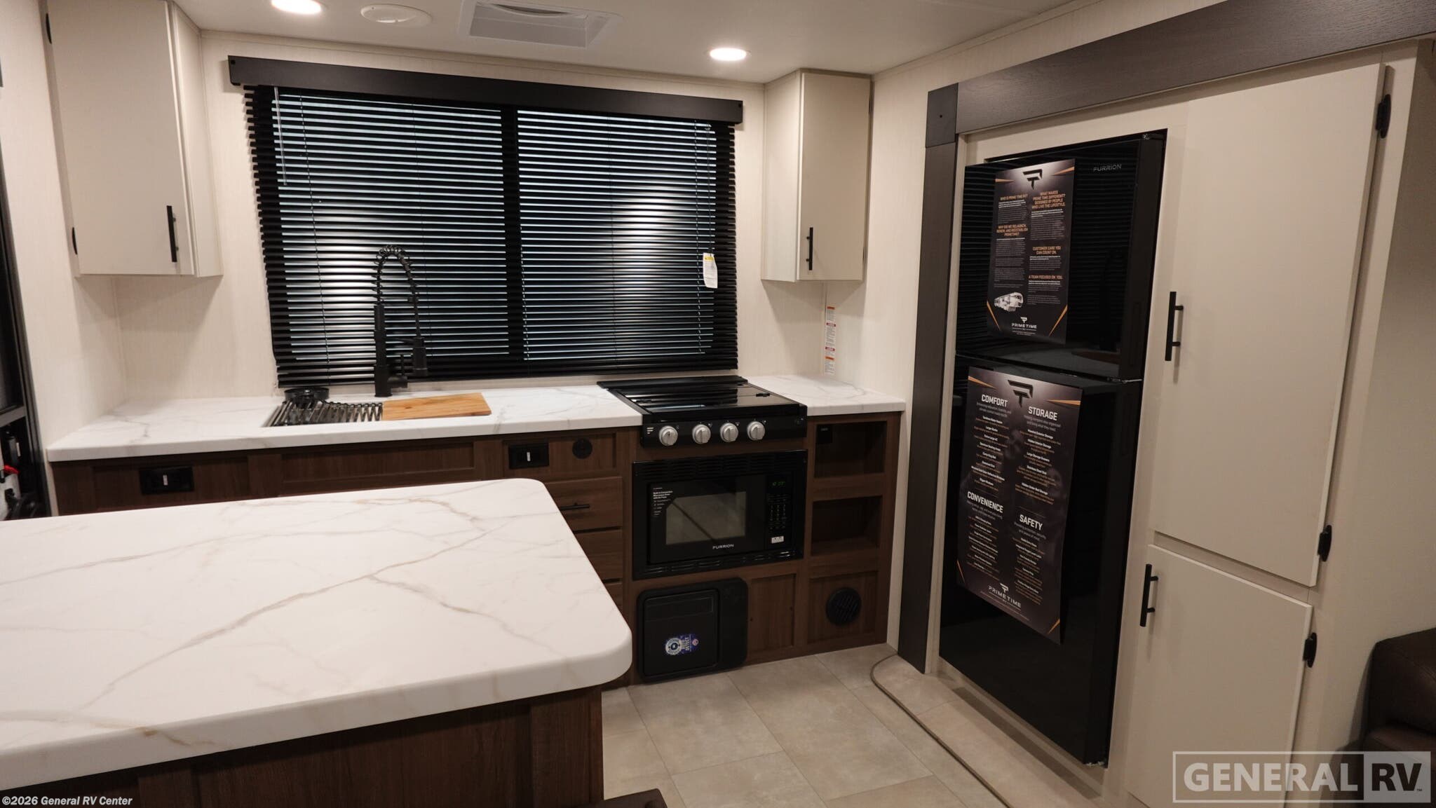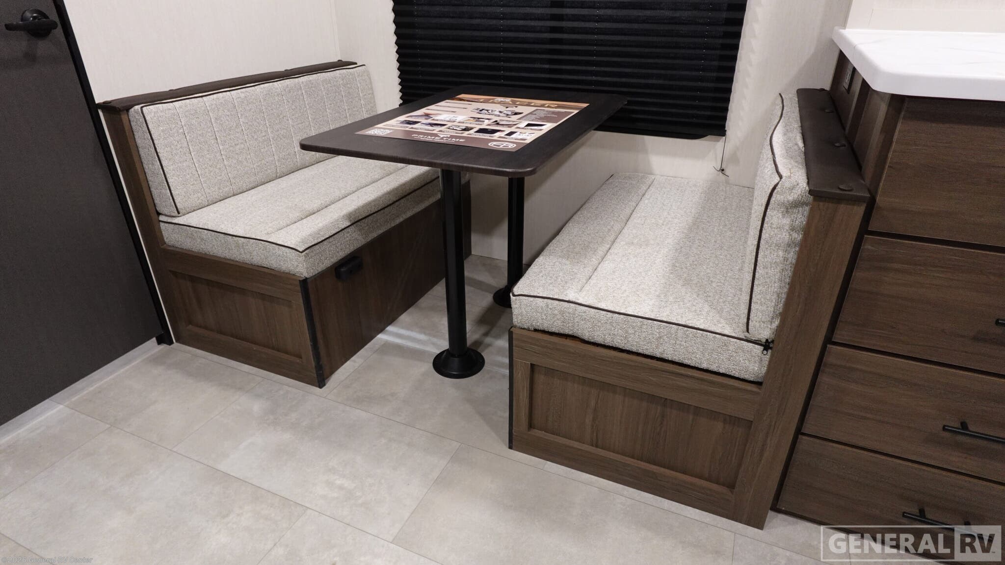 Experience the perfect blend of comfort and adventure with the 2026 Prime Time Tracer 235RK. This thoughtfully designed RV is your ticket to unforgettable journeys, offering a spacious and inviting interior that sleeps up to four. The heart of this model is its rear kitchen, complete with an air fryer cooktop and ample storage, making meal prep a breeze while you're on the road. The cozy jackknife sofa and dinette provide the perfect spots to unwind after a day of exploring, with large windows allowing natural light to fill the space. Retreat to the private bedroom, where a luxurious camp king bed awaits, surrounded by generous wardrobe and overhead storage. The bathroom is well-appointed, ensuring you have all the comforts of home wherever you go. With a single slide-out, this RV maximizes living space without sacrificing mobility. The 29-foot length and sleek design make it easy to tow and park, while the 42-gallon fresh water capacity ensures you're ready for extended stays in the great outdoors. Discover the freedom of the open road with the Tracer 235RK, and let every journey become a cherished memory. For more details, visit your nearest General RV dealership.