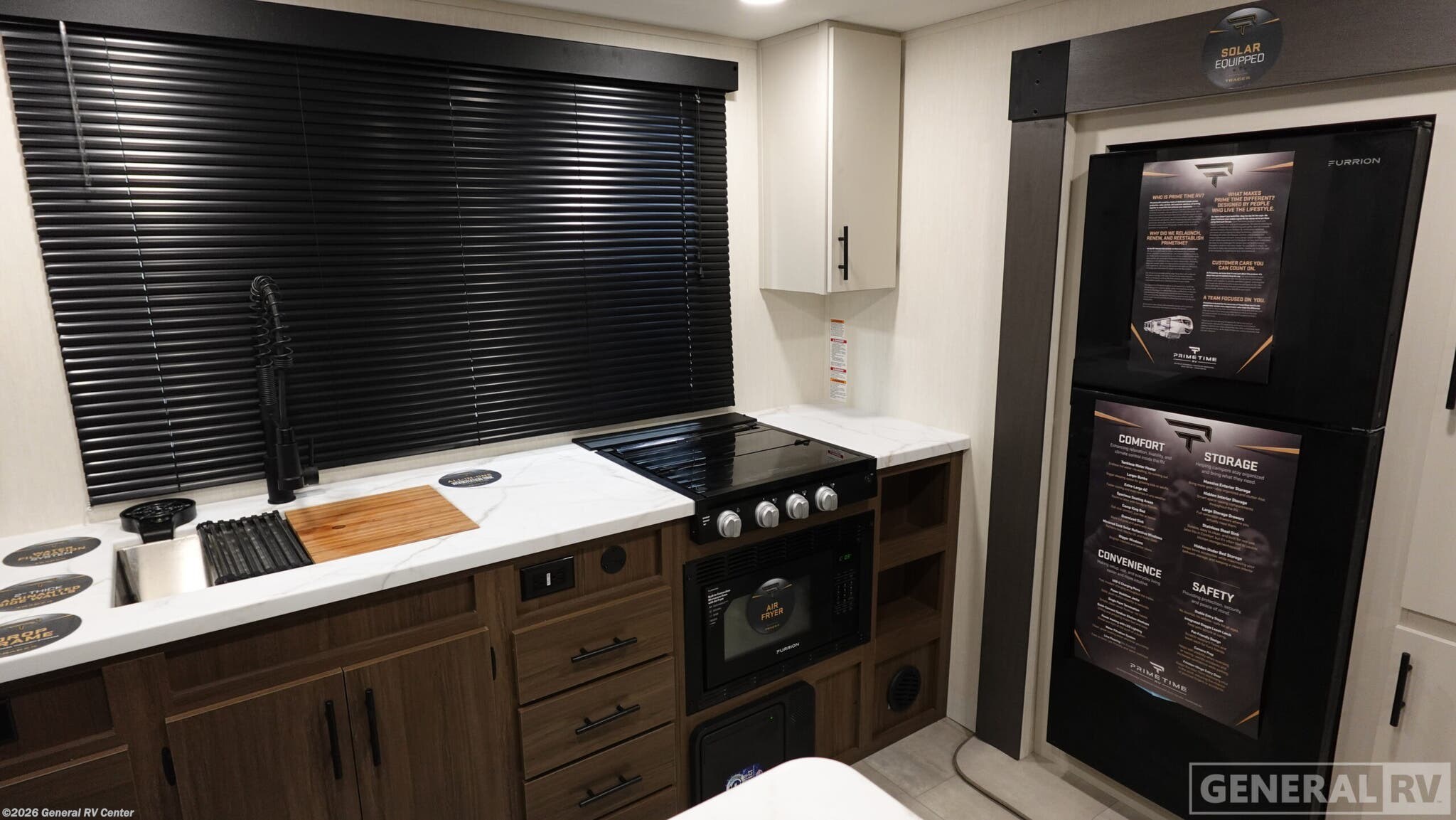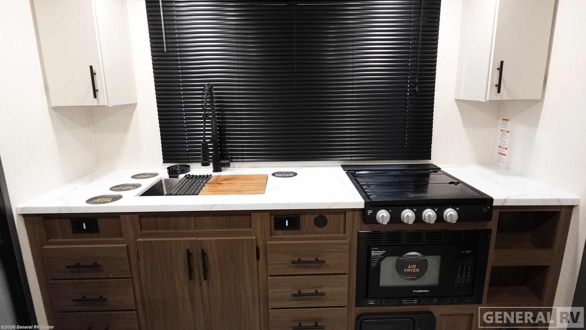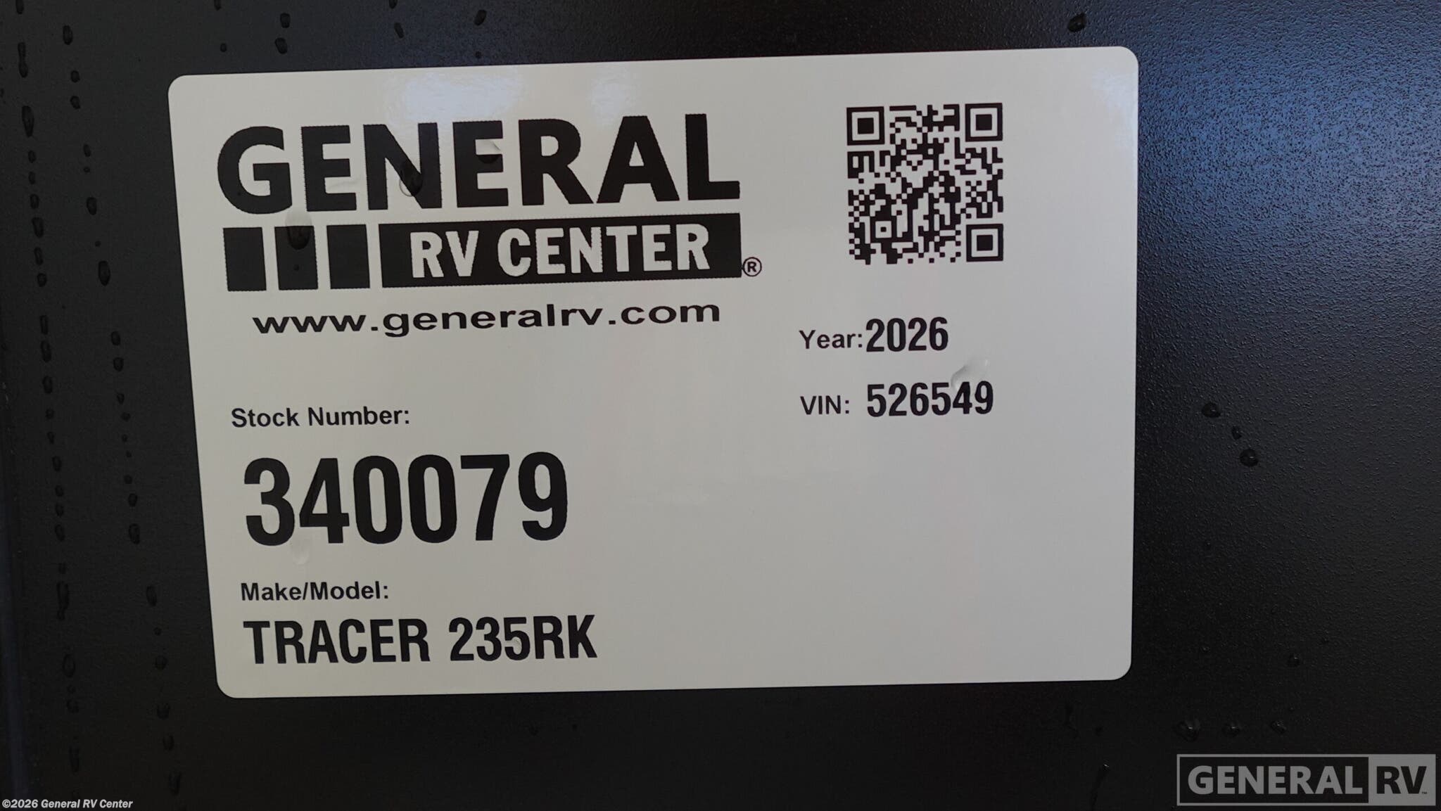 Experience the perfect blend of comfort and adventure with the 2026 Prime Time Tracer 235RK. This thoughtfully designed RV is your ticket to unforgettable journeys, offering a spacious and inviting interior that sleeps up to four. The heart of this model is its rear kitchen, complete with an air fryer cooktop and ample storage, making meal prep a breeze while you're on the road. The cozy jackknife sofa and dinette provide the perfect spots to unwind after a day of exploring, with large windows allowing natural light to fill the space. Retreat to the private bedroom, where a luxurious camp king bed awaits, surrounded by generous wardrobe and overhead storage. The bathroom is well-appointed, ensuring you have all the comforts of home wherever you go. With a single slide-out, this RV maximizes living space without sacrificing mobility. The 29-foot length and sleek design make it easy to tow and park, while the 42-gallon fresh water capacity ensures you're ready for extended stays in the great outdoors. Discover the freedom of the open road with the Tracer 235RK, and let every journey become a cherished memory. For more details, visit your nearest General RV dealership.