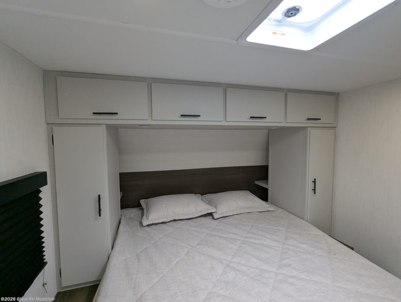 Front Bedroom Retreat: Includes a private front queen bed with wardrobe storage on both sides and overhead cabinets, creating a cozy, separated sleeping space.