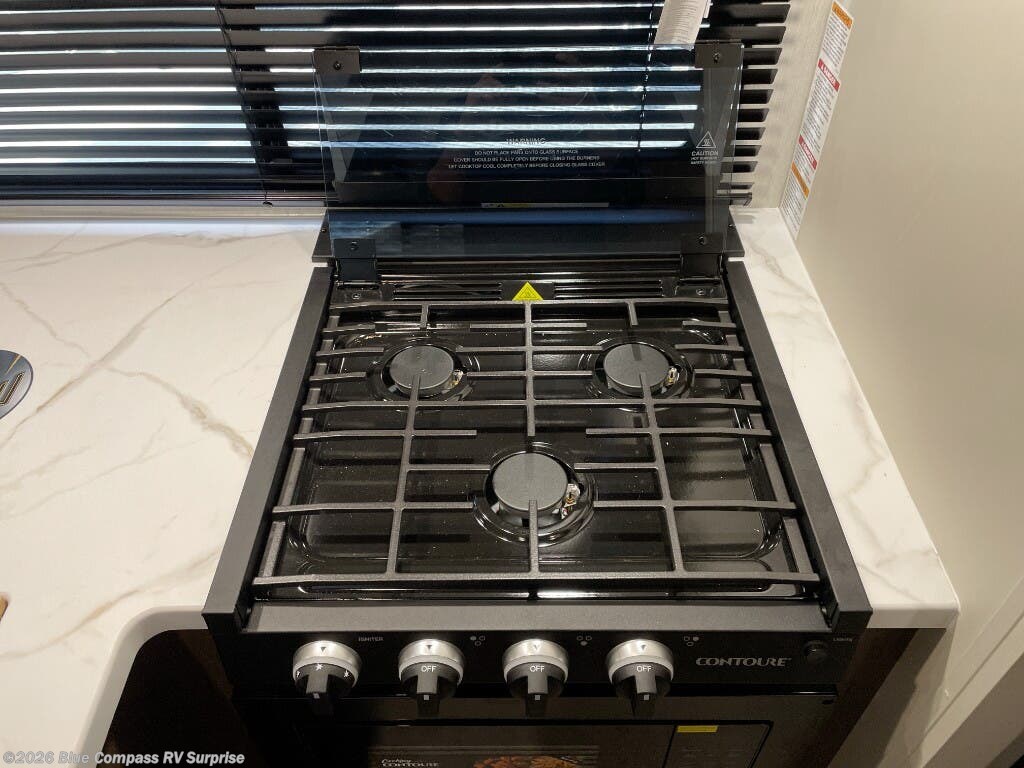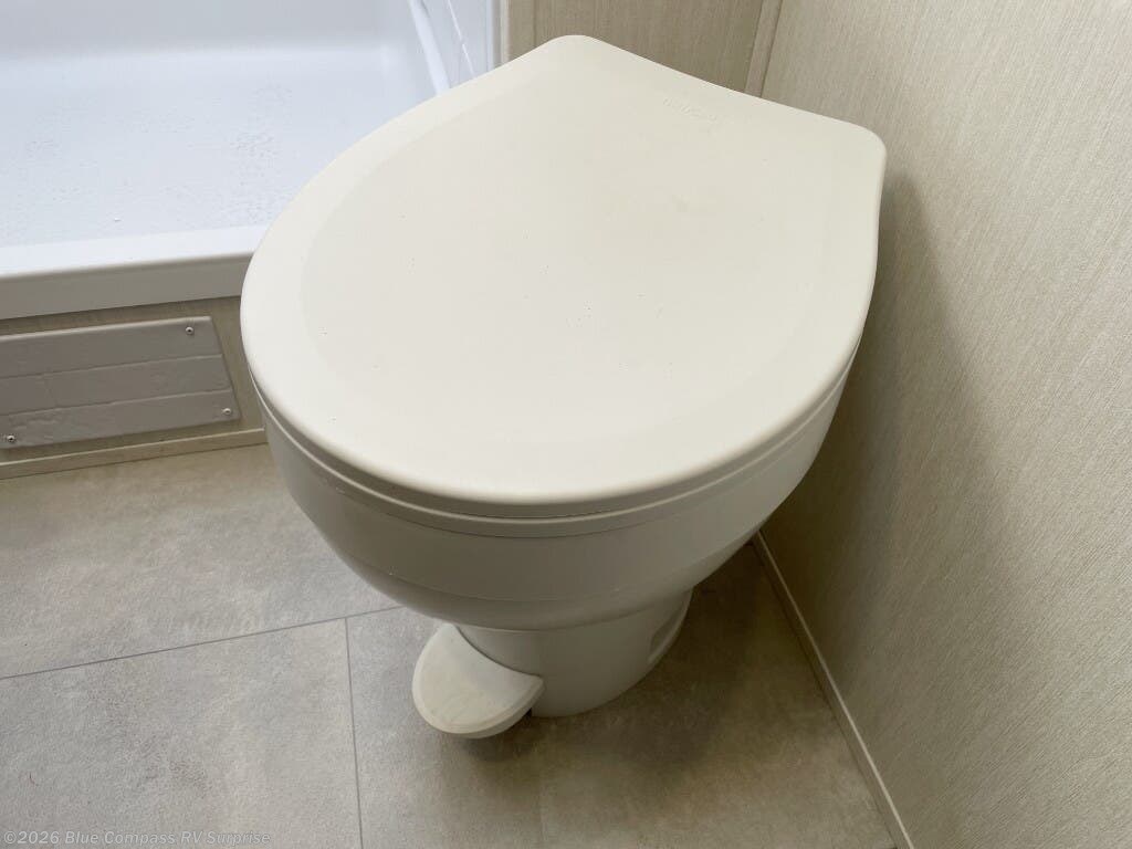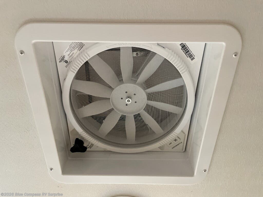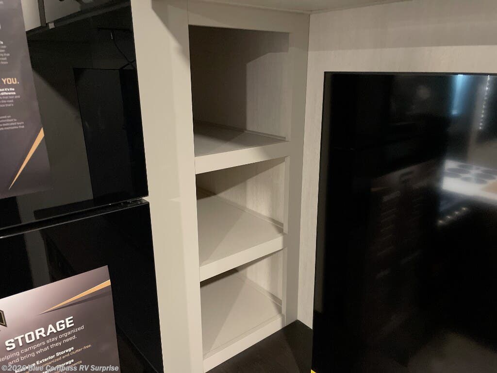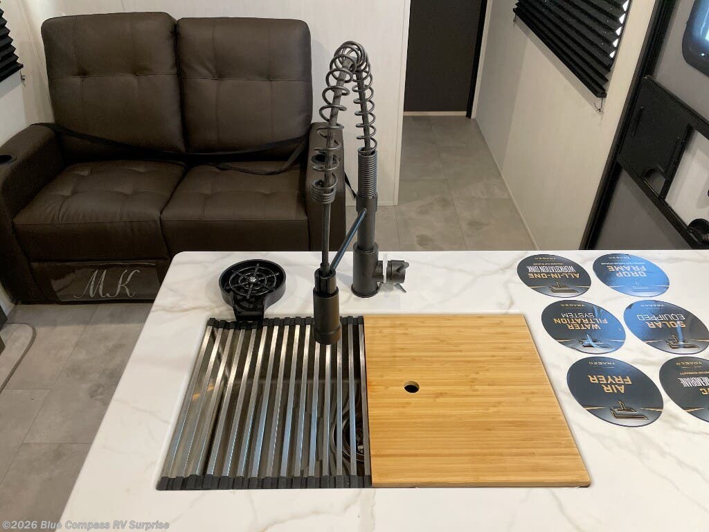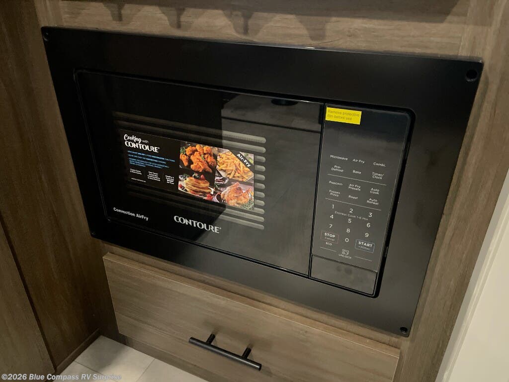 This travel trailer's modern rear kitchen is equipped with a reliable fridge, well-stocked pantry, and even a fireplace, making meal prep and cooking a great experience. The theater seating offers a cozy spot to unwind, while the dinette is perfect for sharing meals or stories with loved ones. The air fryer cooktop will also be useful for some easy delicious meals on the go, and the practical full bathroom to freshen up. The serene front bedroom is a peaceful retreat, featuring a comfortable camp king bed, spacious wardrobes, and ample overhead cabinets for storing your essentials.