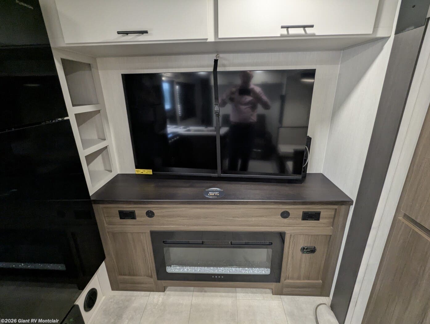 • Rear Entertainment Living Area with a spacious layout, seating, fireplace, and large viewing space — ideal for relaxing after a day of adventure.