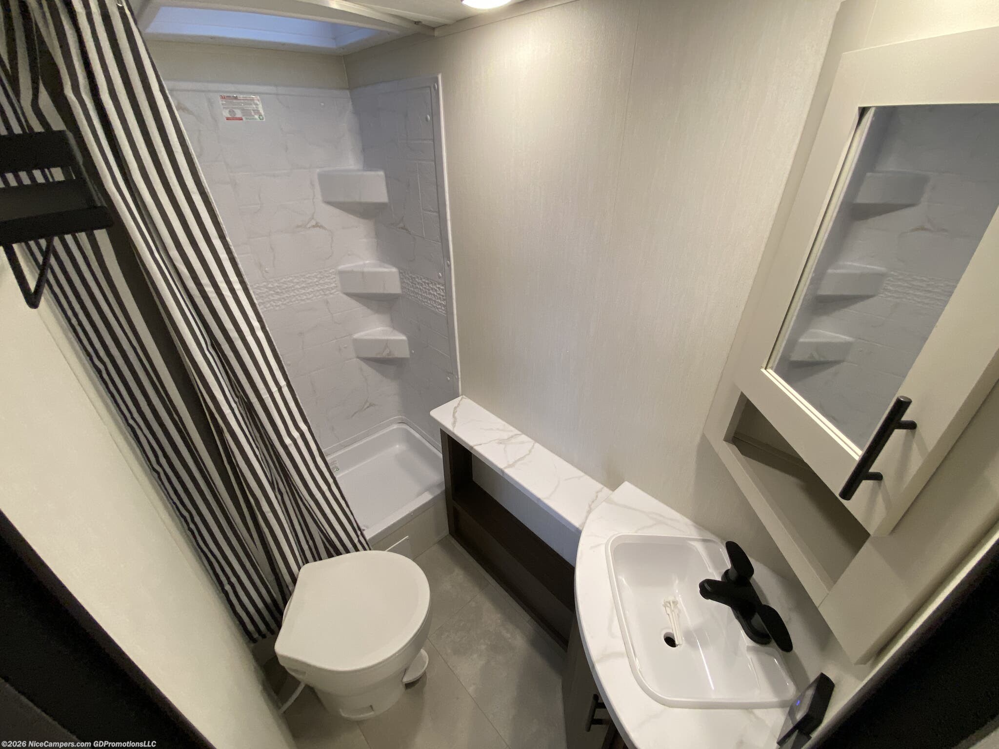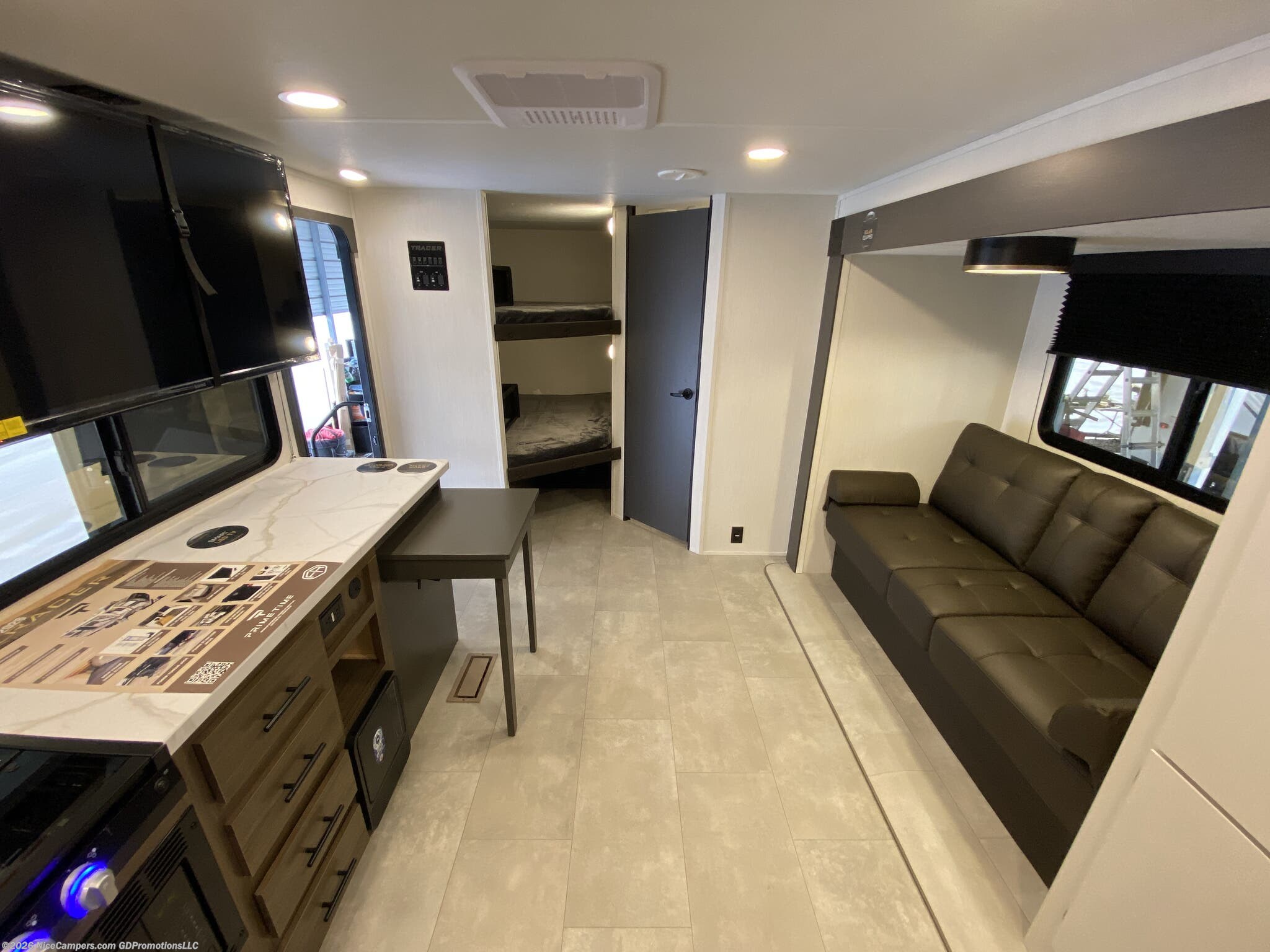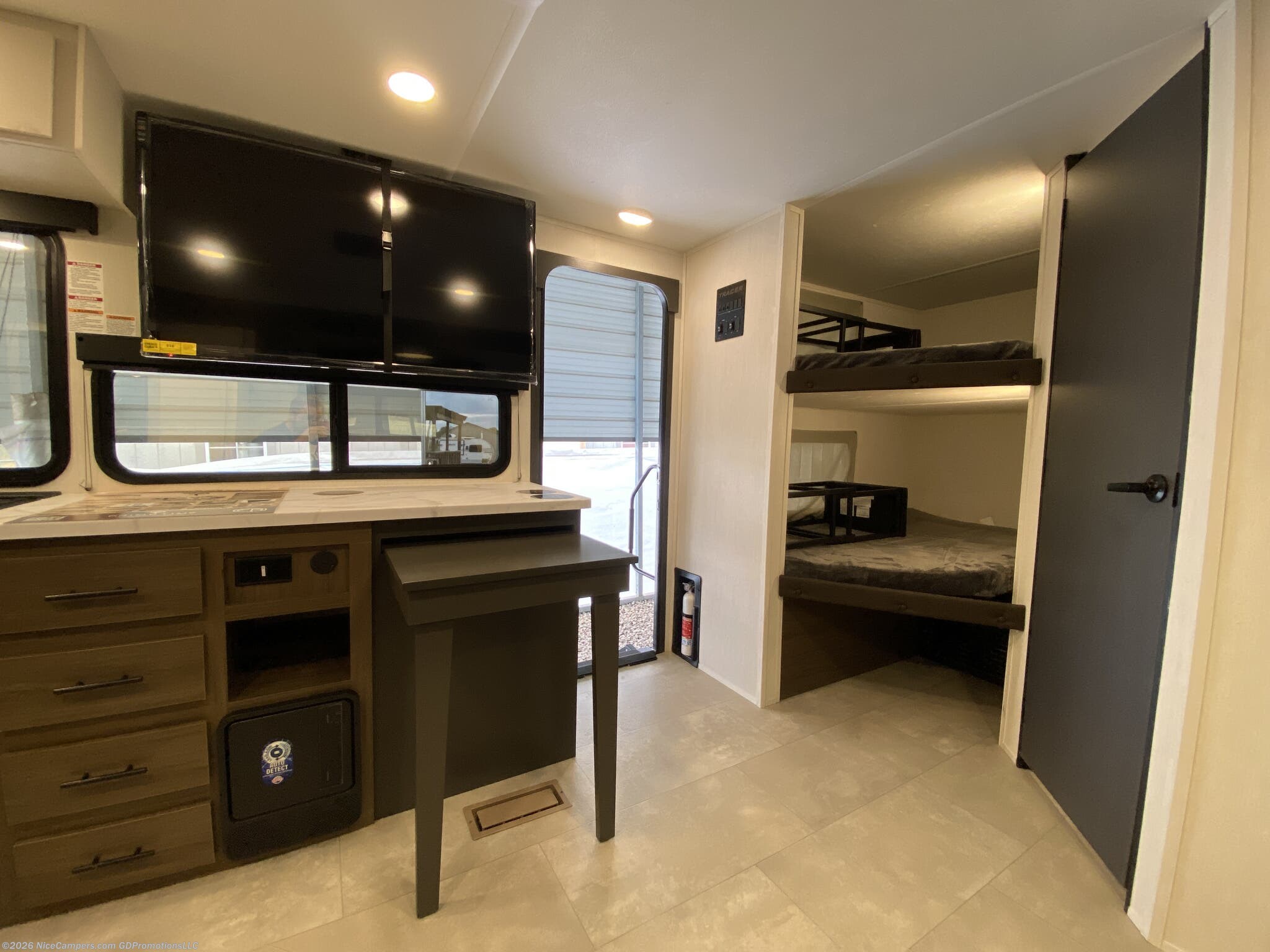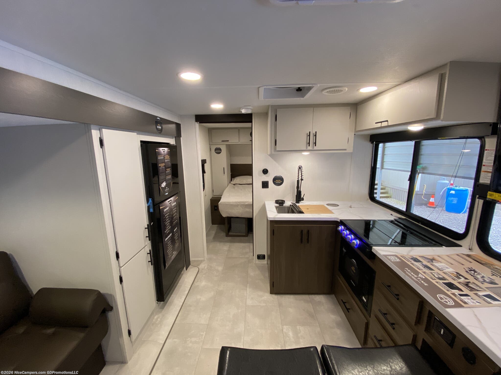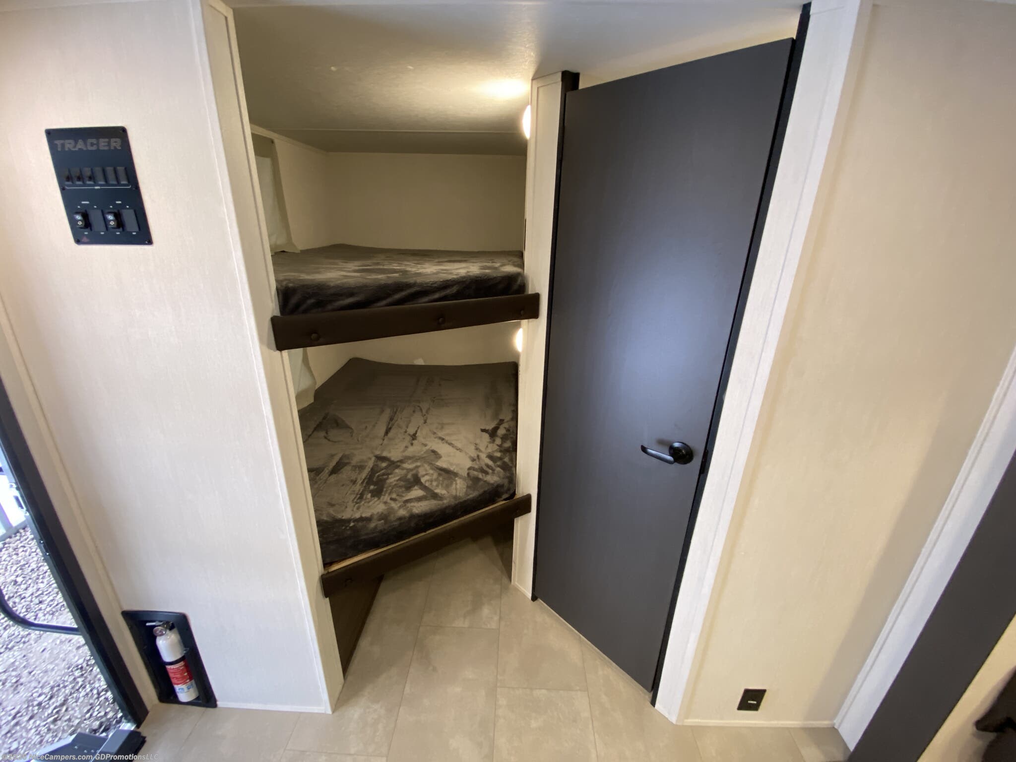 This 2026 Prime Time Tracer 250BH is outfitted with all the features you need for happy camping. Be a part of the Prime Time family with this 2026 Prime Time Tracer 250BH. If you’re looking for a family RV, you’ve found it: this rig sleeps 6. The one slide allows for easy setup and just enough extra space inside. It doesn’t matter whether you are cooking for one or an entire campground, this kitchen has everything you need with the fridge. Spend time together as a family in the living area with the TV. Keep a comfortable temperature inside your rig with the heating option. Go longer without filling up thanks to the 42 gallon fresh water tanks. Outside, you’ll find awning, black tank flush, enclosed underbelly, power awning, power stabilizer jacks, pvc roof, roof deck, skylight and stabilizer jacks.