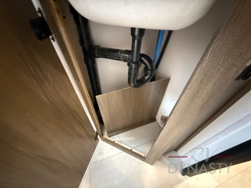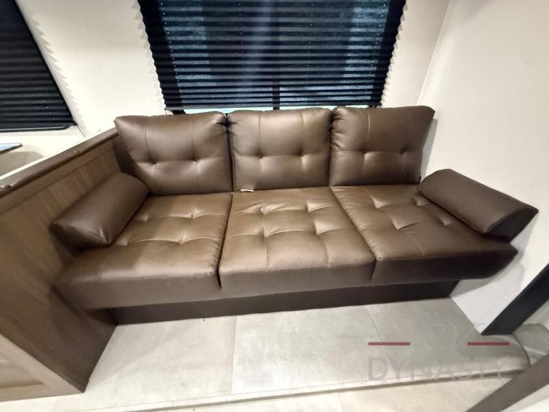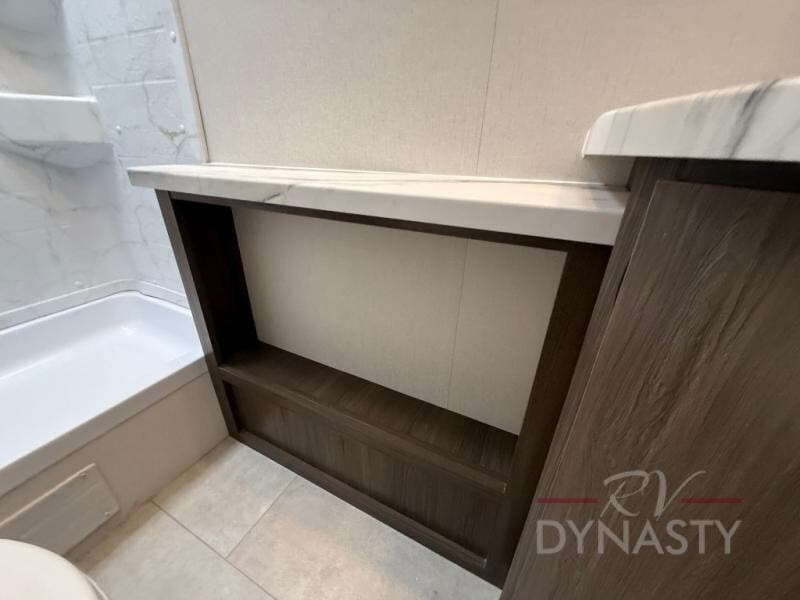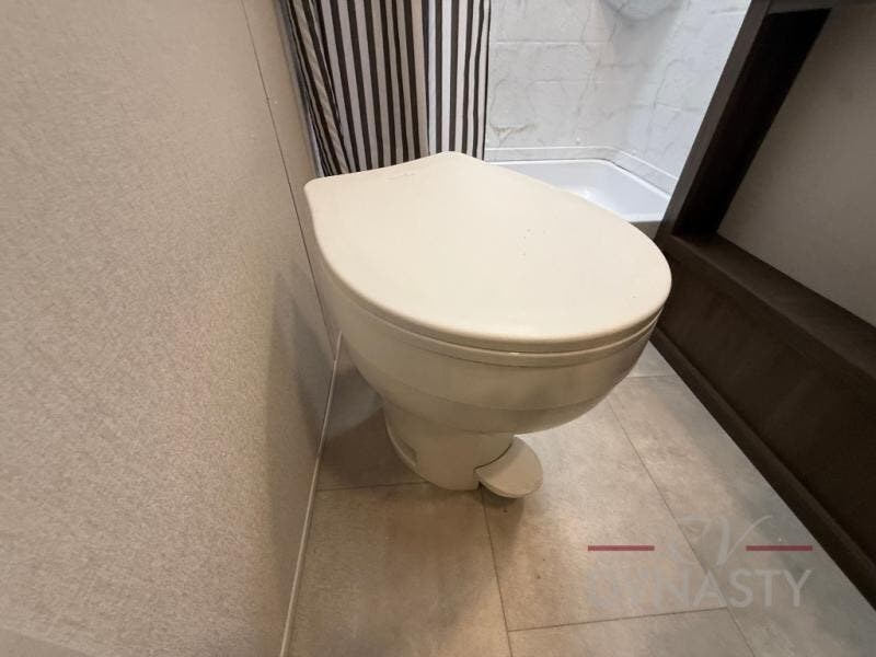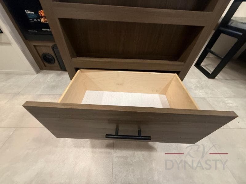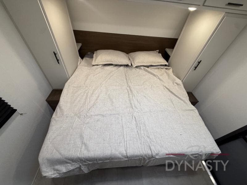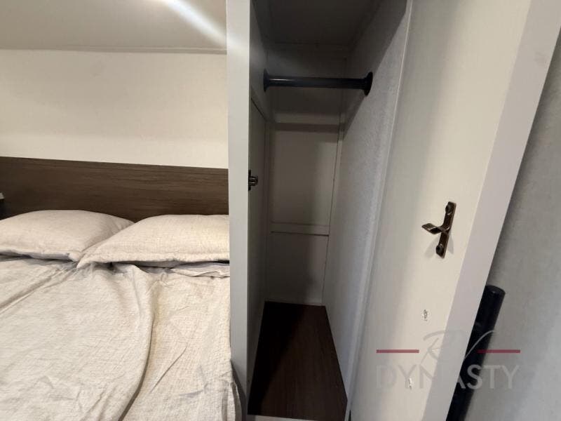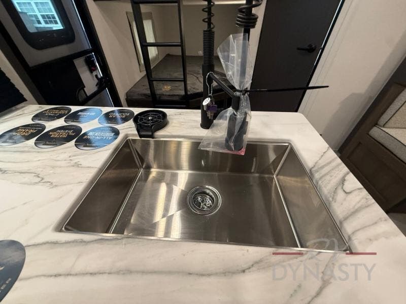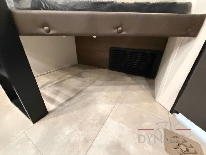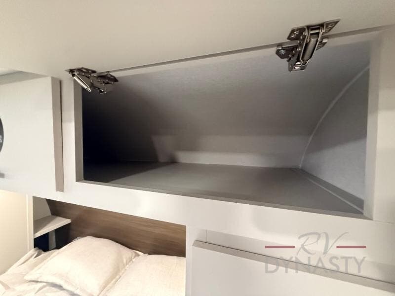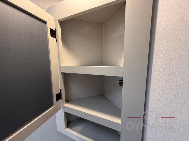 If you're looking for more comfort and a larger sleeping capacity in your next RV, this travel trailer is the one! There are double-size bunks in the rear corner, along with a ladder to easily hop into bed, and the full bath is in the other rear corner for easy nighttime use. You'll enjoy the front private bedroom with its queen bed and dual wardrobes for your things, and a separate closet with washer and dryer prep if you choose to add those appliances. And one of the dual entry doors is located here so you can easily slip out in the morning without waking everyone else up in the trailer! In the morning, you can make breakfast in the full kitchen, then dine at the booth dinette within the large slide out. There is also a jack knife sofa here for more comfort. This travel trailer also includes plenty of storage space, including a walk-in pantry with shelves, an additional storage closet, and a pass-thru storage outside for fishing poles!
