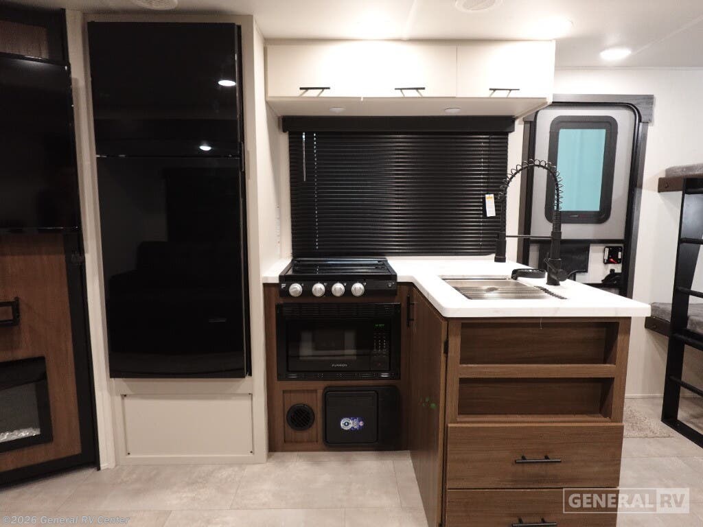 Discover the 2025 Prime Time Tracer 275BH, a haven for families and adventurers alike. This thoughtfully designed RV offers ample sleeping accommodations for up to eight, featuring a cozy queen bed in the front bedroom and double bunks at the rear. The convertible dinette and theater seating ensure everyone has a comfortable spot to relax after a day of exploration. The center kitchen, equipped with a full-size electric refrigerator and three-burner cooktop, makes meal prep a breeze, allowing you to whip up delicious meals on the go. The Tracer 275BH boasts a spacious layout with a single slide-out, enhancing the living area for maximum comfort. The rear bath with a shower curtain offers convenience, while the washer and dryer prep add a touch of home-like comfort. Outside, the powered retractable awning creates an inviting outdoor space, perfect for enjoying sunny days or starlit nights. With its sleek design and practical features, this RV is ready to accompany you on countless adventures. For more details or to experience this model in person, visit your nearest General RV dealership.
