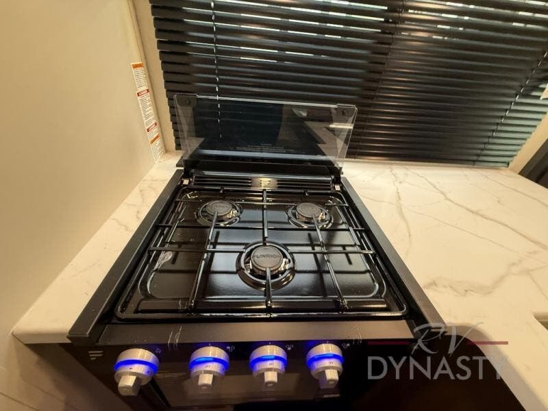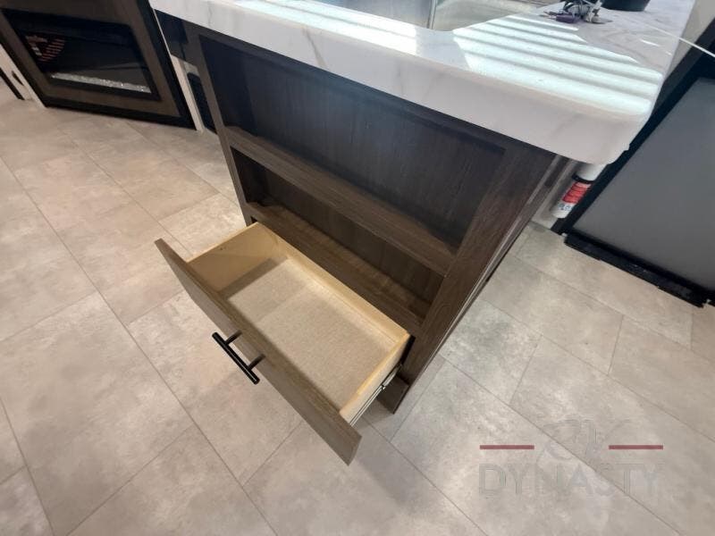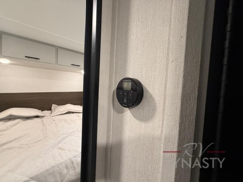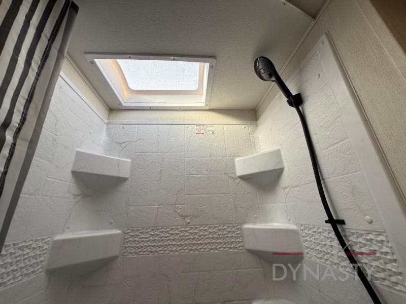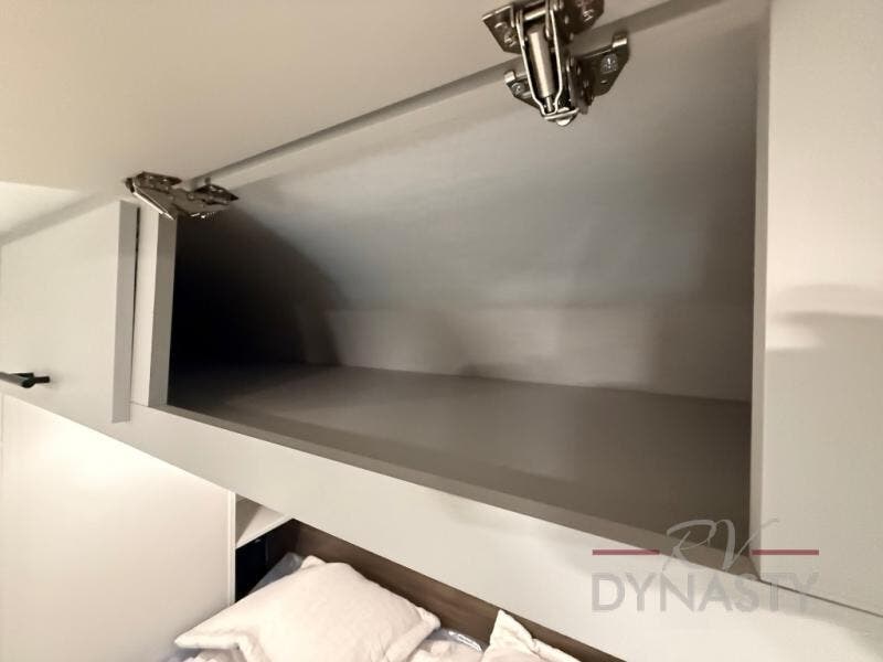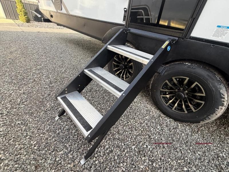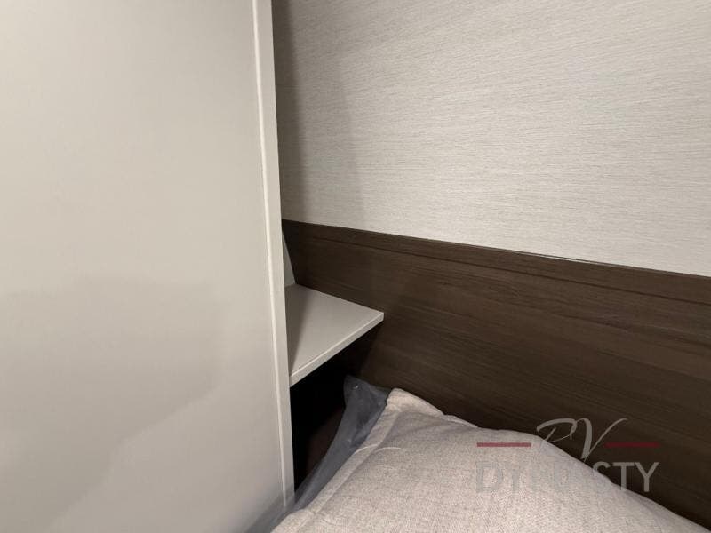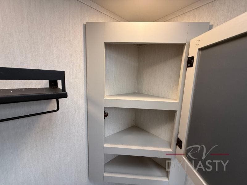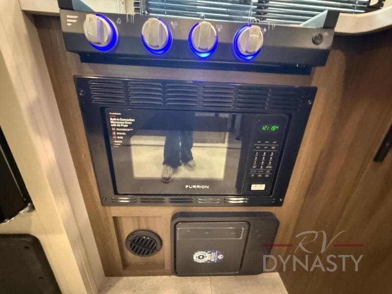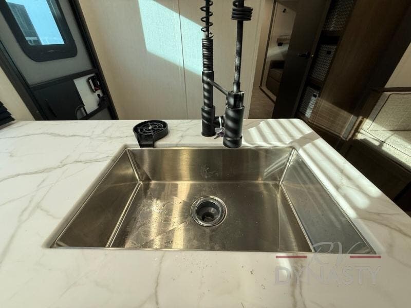 This travel trailer is the best option for a big family! The trailer boasts a spacious bunk bed above a sofa bed, providing ample sleeping space for kids and adults alike. The luxurious front king bed is a serene retreat, featuring expansive wardrobes and overhead cabinets for storing your essentials. The charming booth dinette is a cozy spot for meals or extra sleeping space, as well as the versatile jackknife sofa, which also provides additional sleeping space or a comfortable spot to relax. The sleek entertainment center is perfect for family movie nights. The well-appointed kitchen is equipped with a large fridge, convenient shelves, and a spacious pantry, making meal prep and storage an easy chore. The modern full bathroom features a well-stocked linen closet and provides a convenient space for freshening up. Plus, with two convenient entry/exit doors, this trailer offers added flexibility and ease of use, and the ample overhead cabinets provide additional storage space for your belongings.