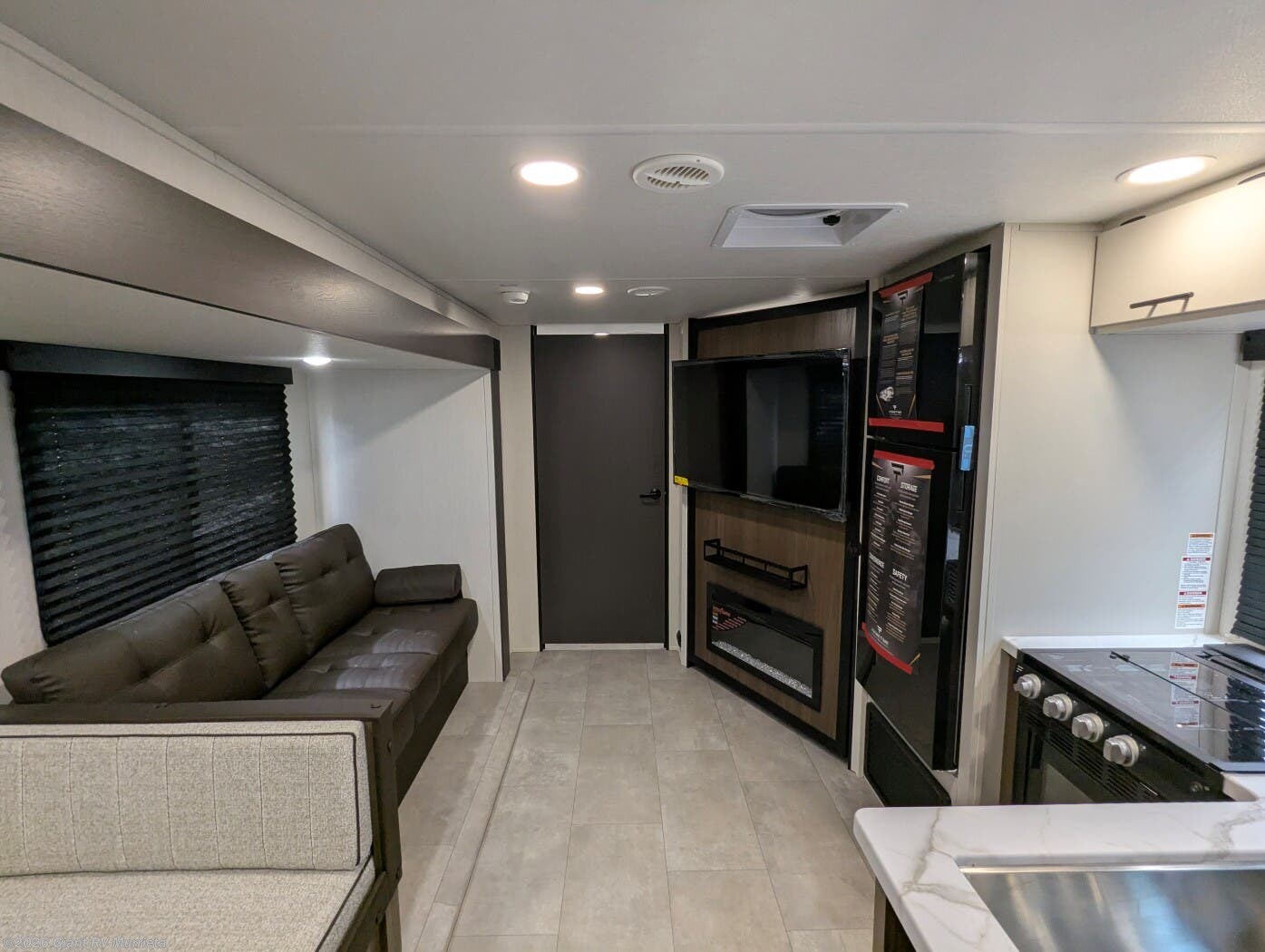 - Lightweight Towing: With a 6,685 lbs dry weight and 34’7” length, this travel trailer ensures fuel-efficient towing by most trucks.