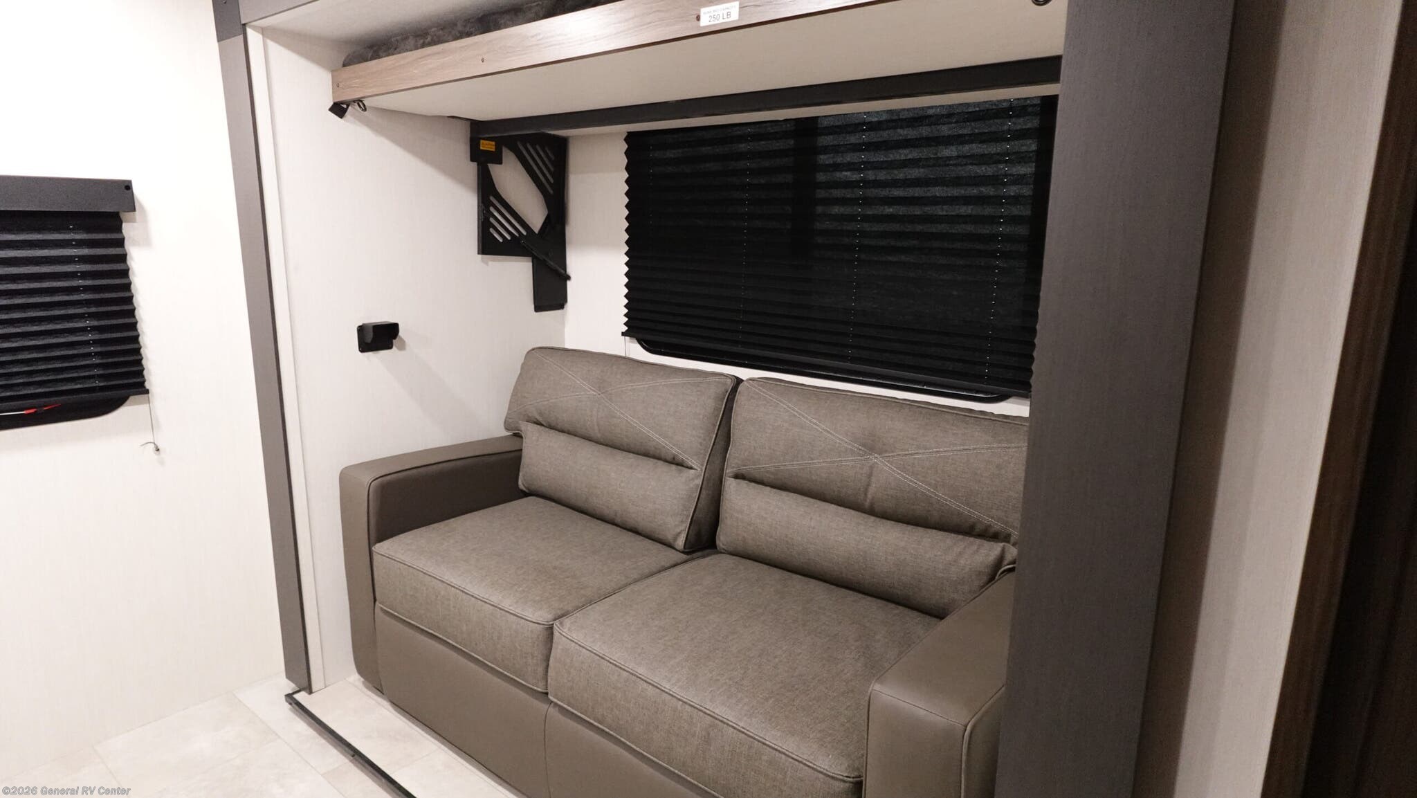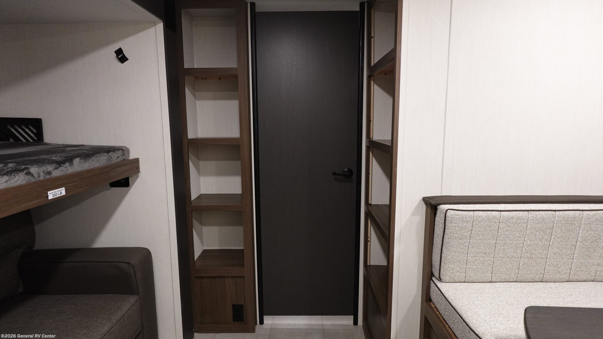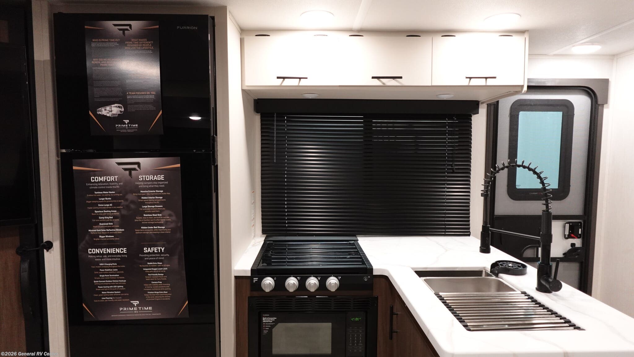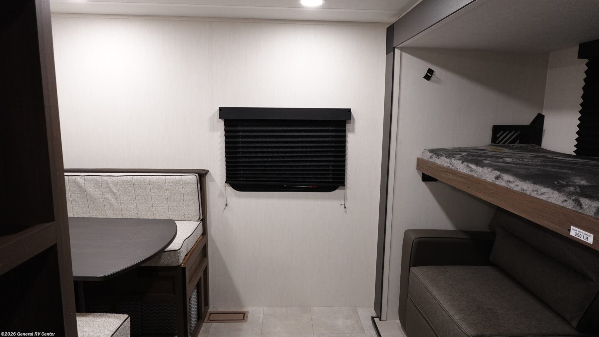 Discover the 2026 Prime Time Tracer 295DB, a spacious and thoughtfully designed travel trailer perfect for families and adventurers alike. With a length of 37 feet, this RV offers ample room to relax and enjoy your journey. The layout includes a cozy bunk bed area and a versatile sofa bed, ensuring comfortable sleeping arrangements for up to eight people. The central living space features a jackknife sofa and a dinette, providing the perfect setting for meals and relaxation. The well-equipped kitchen comes with an air fryer cooktop and a generous pantry, making meal preparation a breeze. The entertainment center is conveniently located for easy viewing from the main living area. At the rear, the private bedroom boasts a luxurious camp king bed, surrounded by ample storage including wardrobes and overhead cabinets. The bathroom features a spacious shower and linen closet, adding to the comfort and convenience of this model. With a fresh water capacity of 42 gallons and a gray water capacity of 102 gallons, the Tracer 295DB is designed for extended stays. An exterior awning provides a shaded outdoor space, perfect for enjoying the great outdoors. For more information or to see this model in person, visit your nearest General RV Dealership Location.