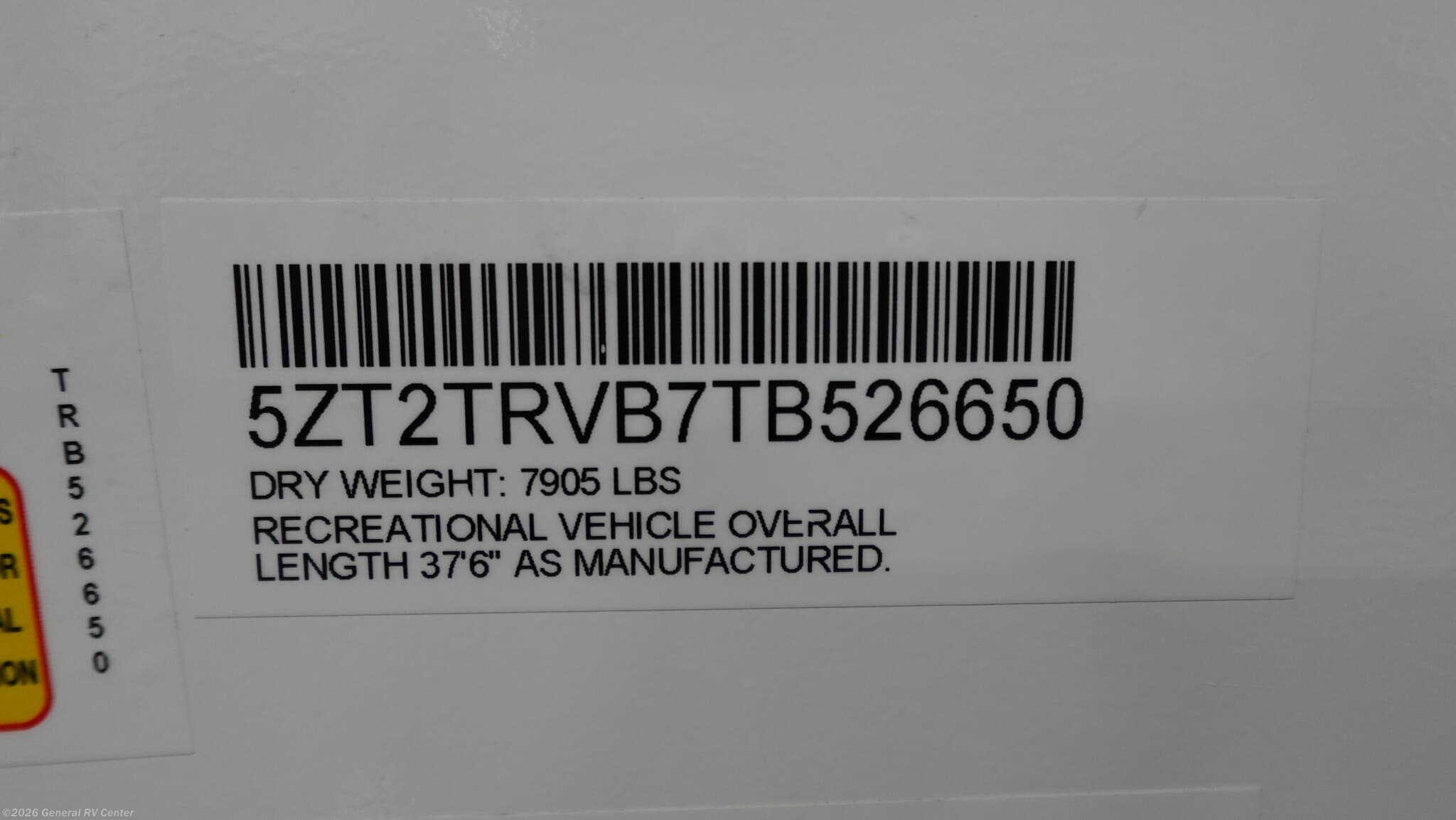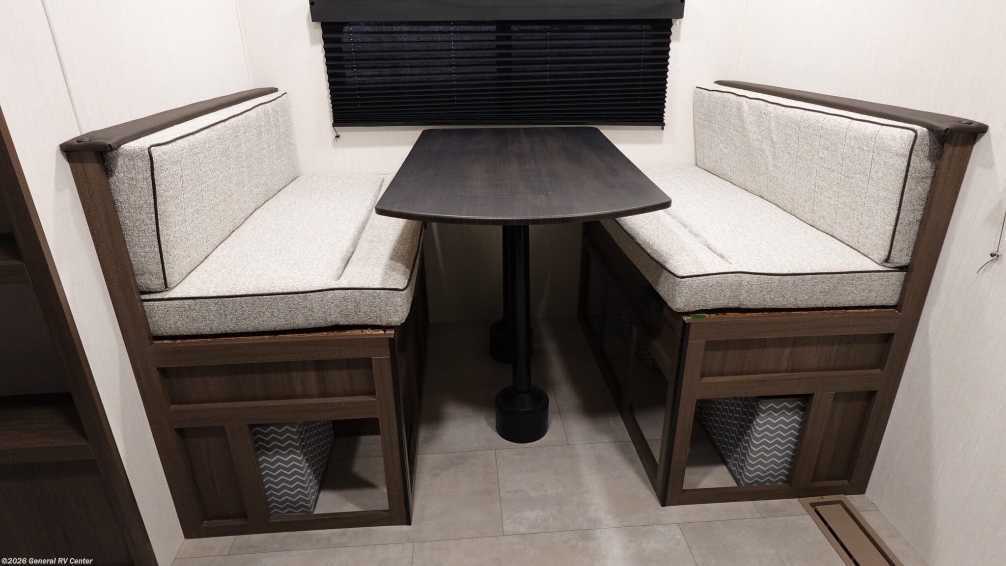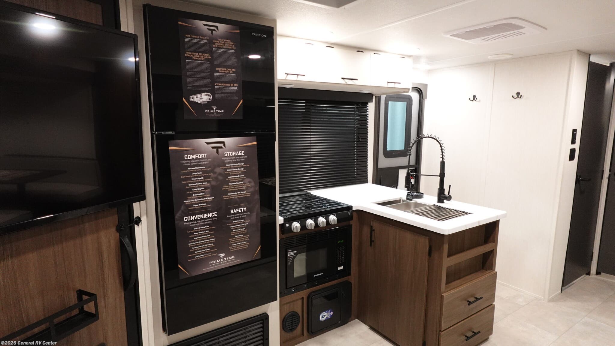 Discover the 2026 Prime Time Tracer 295DB, a spacious and thoughtfully designed travel trailer perfect for families and adventurers alike. With a length of 37 feet, this RV offers ample room to relax and enjoy your journey. The layout includes a cozy bunk bed area and a versatile sofa bed, ensuring comfortable sleeping arrangements for up to eight people. The central living space features a jackknife sofa and a dinette, providing the perfect setting for meals and relaxation. The well-equipped kitchen comes with an air fryer cooktop and a generous pantry, making meal preparation a breeze. The entertainment center is conveniently located for easy viewing from the main living area. At the rear, the private bedroom boasts a luxurious camp king bed, surrounded by ample storage including wardrobes and overhead cabinets. The bathroom features a spacious shower and linen closet, adding to the comfort and convenience of this model. With a fresh water capacity of 42 gallons and a gray water capacity of 102 gallons, the Tracer 295DB is designed for extended stays. An exterior awning provides a shaded outdoor space, perfect for enjoying the great outdoors. For more information or to see this model in person, visit your nearest General RV Dealership Location.