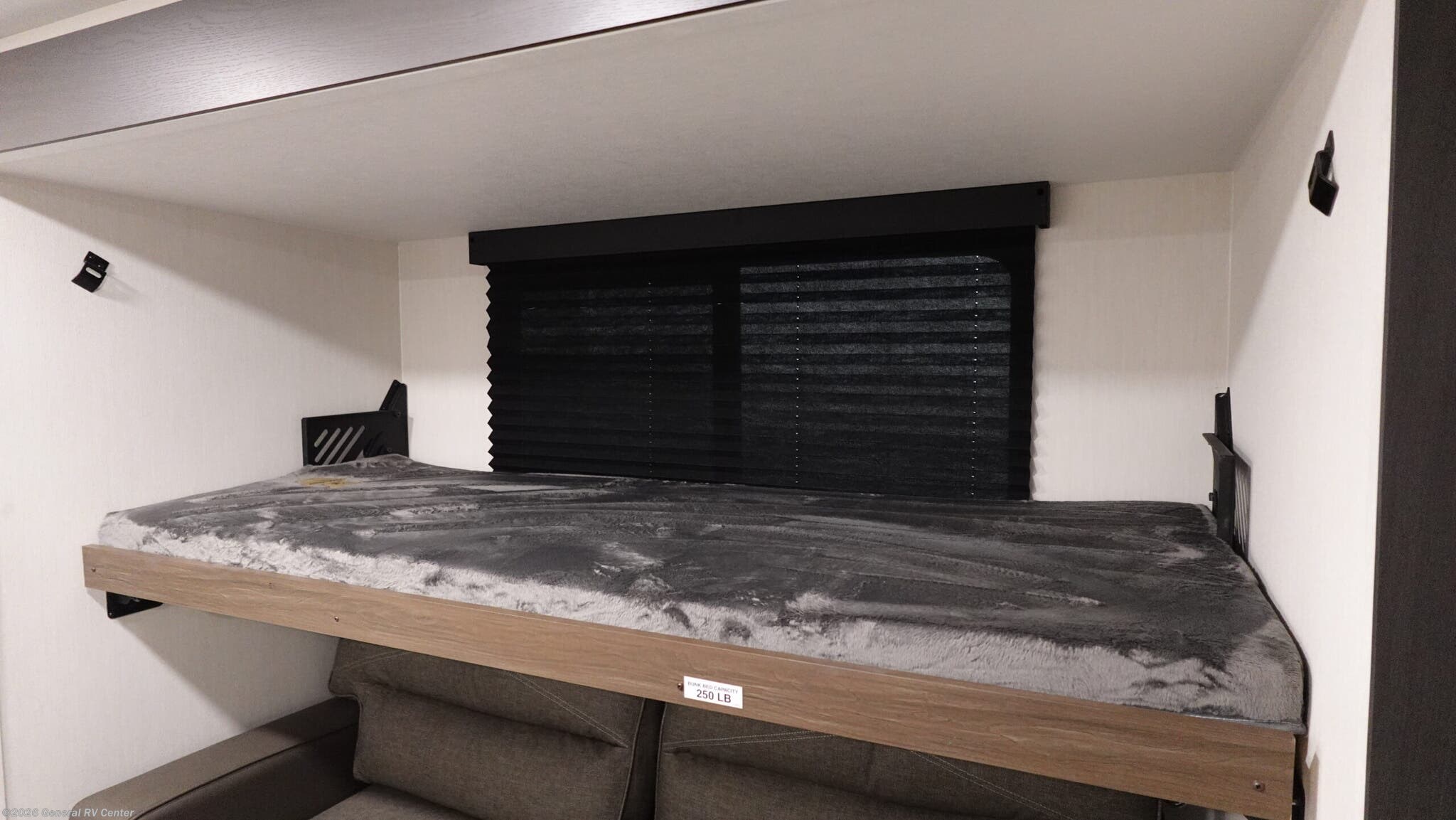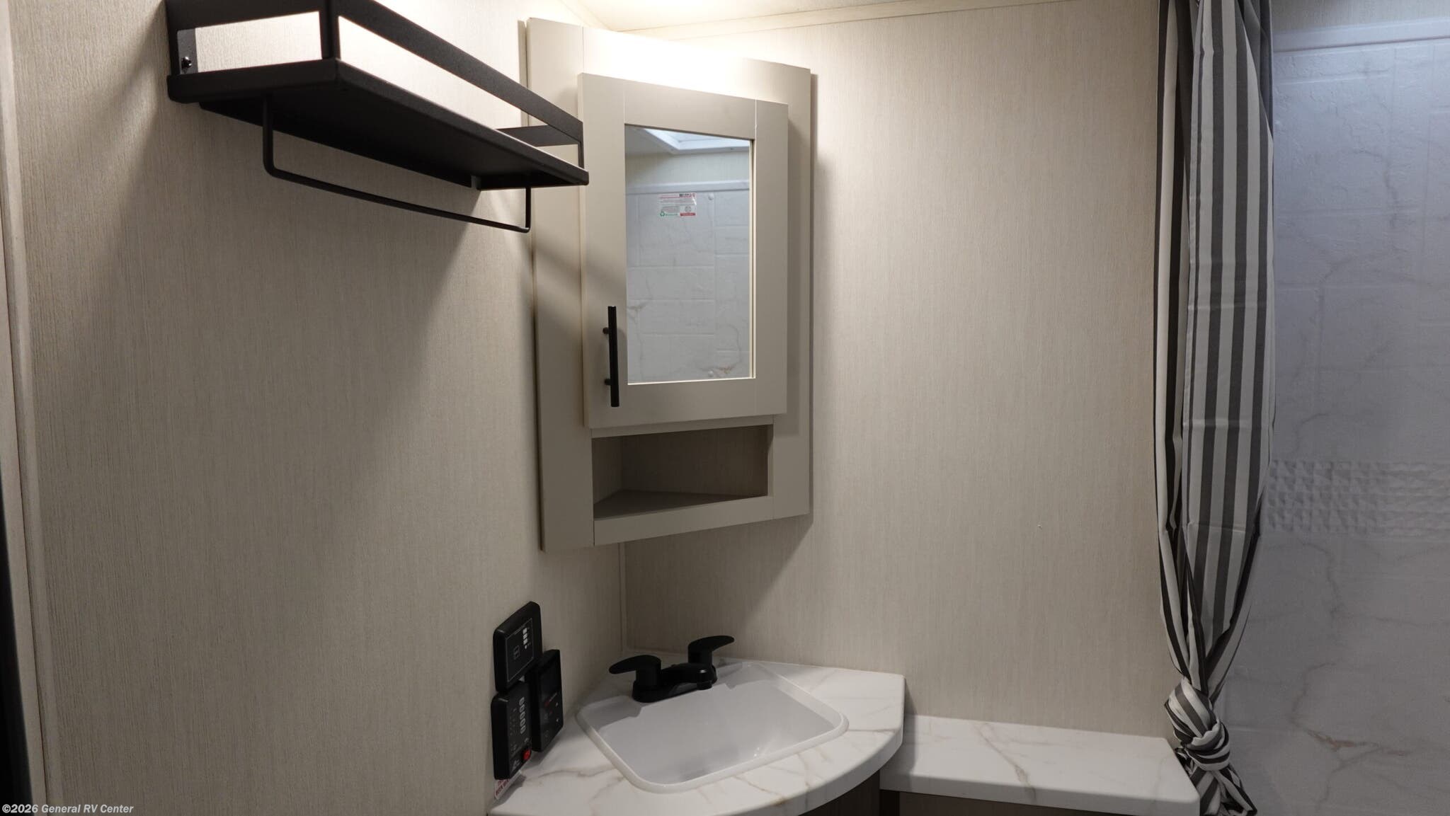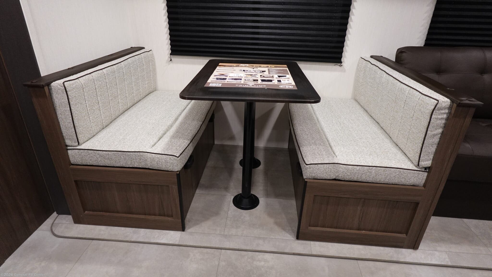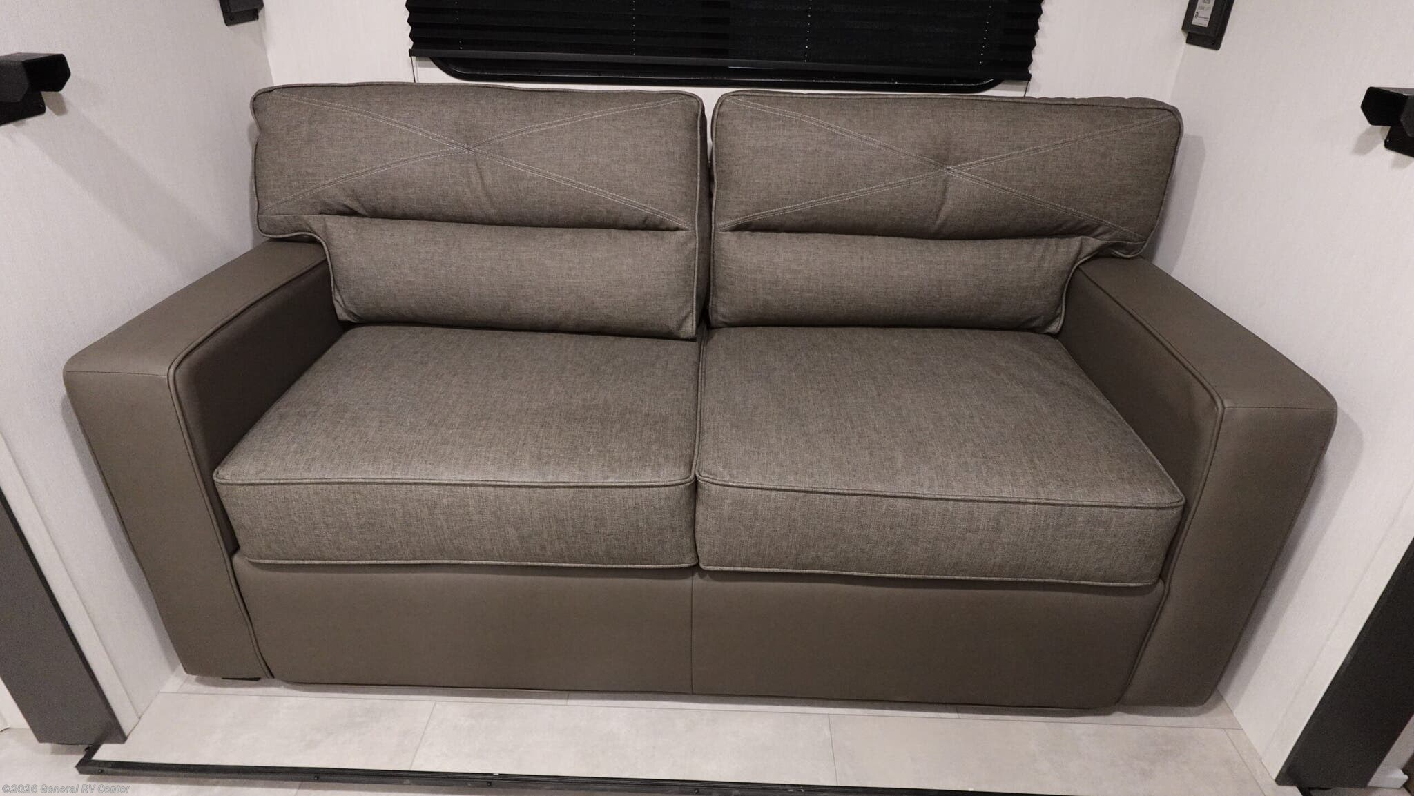Discover the 2026 Prime Time Tracer 295DB, a spacious and thoughtfully designed travel trailer perfect for families and adventurers alike. With a length of 37 feet, this RV offers ample room to relax and enjoy your journey. The layout includes a cozy bunk bed area and a versatile sofa bed, ensuring comfortable sleeping arrangements for up to eight people. The central living space features a jackknife sofa and a dinette, providing the perfect setting for meals and relaxation. The well-equipped kitchen comes with an air fryer cooktop and a generous pantry, making meal preparation a breeze. The entertainment center is conveniently located for easy viewing from the main living area. At the rear, the private bedroom boasts a luxurious camp king bed, surrounded by ample storage including wardrobes and overhead cabinets. The bathroom features a spacious shower and linen closet, adding to the comfort and convenience of this model. With a fresh water capacity of 42 gallons and a gray water capacity of 102 gallons, the Tracer 295DB is designed for extended stays. An exterior awning provides a shaded outdoor space, perfect for enjoying the great outdoors. For more information or to see this model in person, visit your nearest General RV Dealership Location.