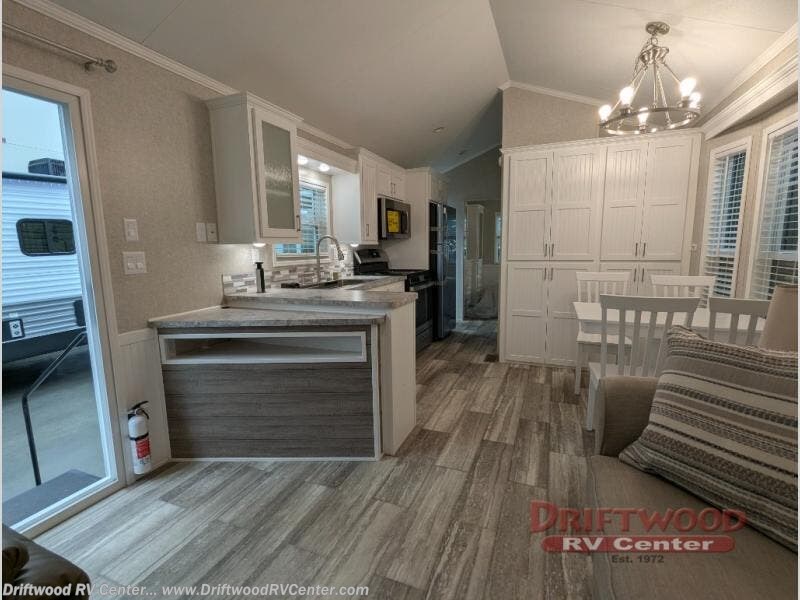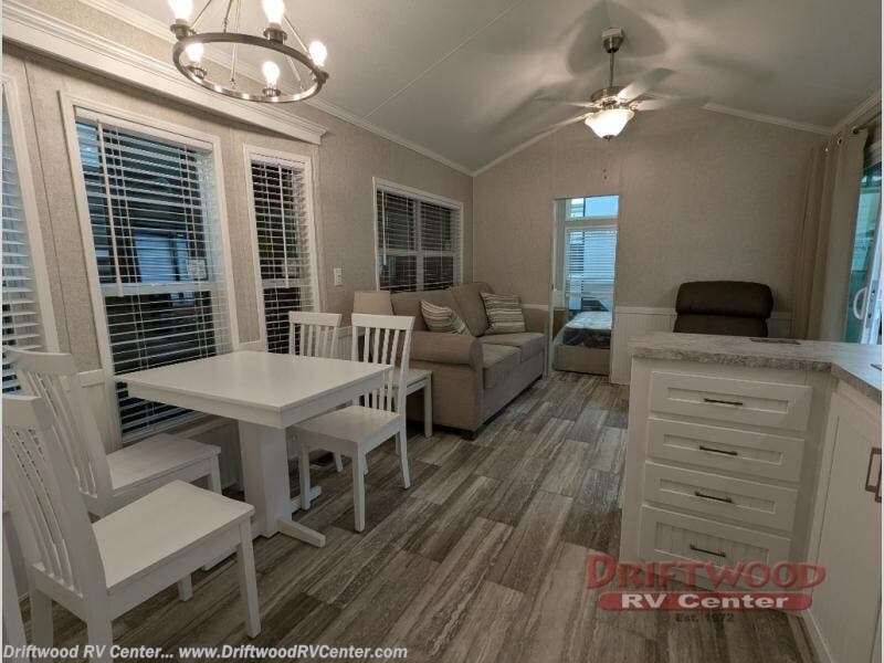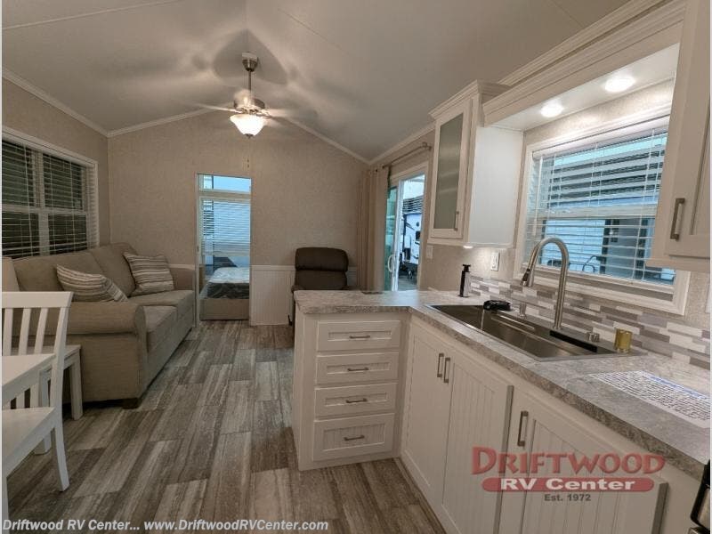 With each Parkvue park model by Canterbury the construction includes a certified roof truss and sidewalls on 16" on center, an aluminum one piece floor duct system, single hung vinyl thermopane low E windows, and Dutchlap vinyl siding. The interior provides an electric 20 gallon water heater for plenty of warm showers, an Atwood RV furnace for the cooler months, Durabac Beauflor flooring, and plush carpeting. You might even add a bay window option or two if the floorplan allows. Choose the park model that fits your lifestyle, and experience great views from inside and outside!