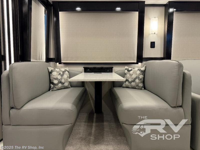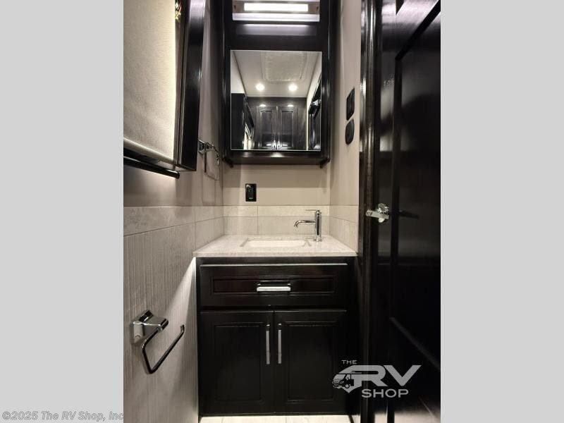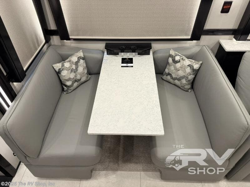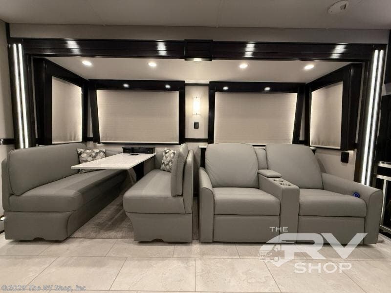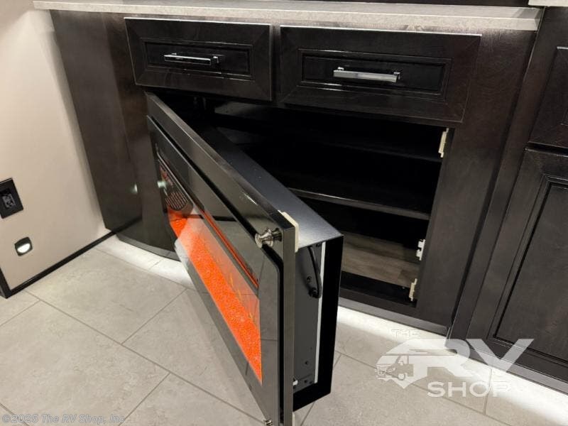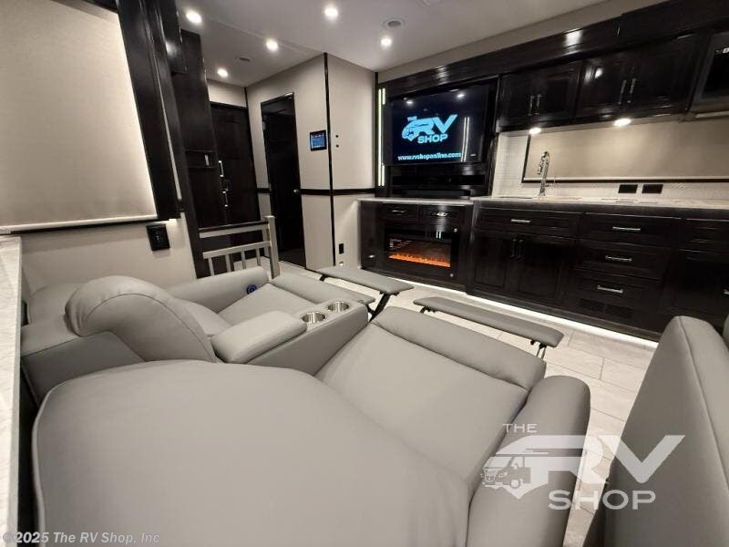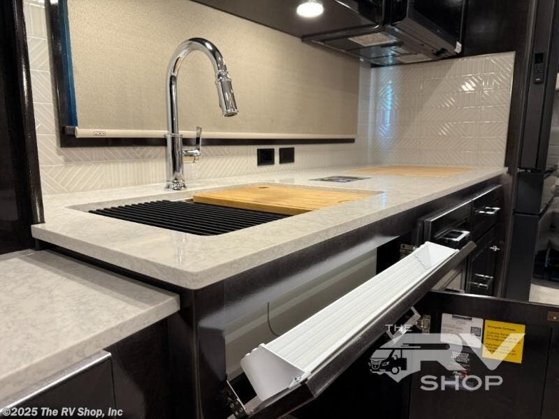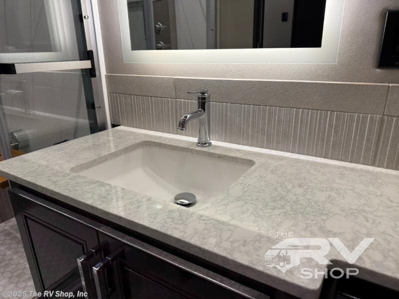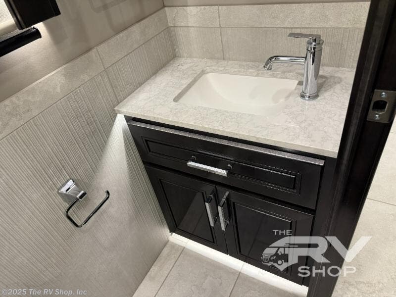 Pack your bags and pick your favorite destination to travel to in this motorhome! Get a good night's rest each night on the 66" x 80" mini-king bed slide and watch your favorite movies in true comfort with the 43" 4K Smart LED TV in the master suite. You will love having quick access into the full rear bath with a lighted vanity mirror, Cambria Quartz countertops, and solid surface shower. Across from the half bathroom is the kitchen pantry and an area prepped to add an optional washer and dryer for clean clothes throughout the entire trip. You can watch the big game either indoors with the 50" 4K Smart LED TV while relaxing on the sofa sleeper and booth dinette or head to the outside entertainment center and watch it with the 43" Smart LED TV with sound bar and USB charging!