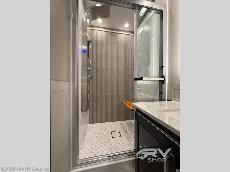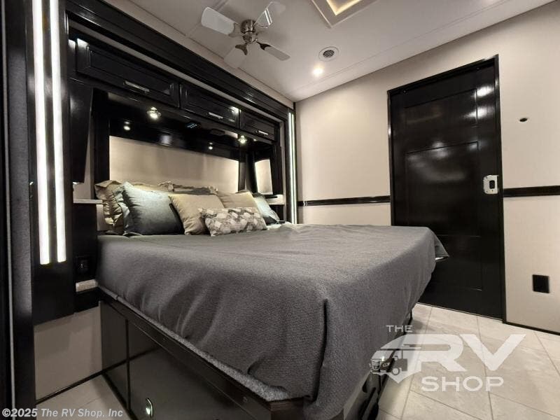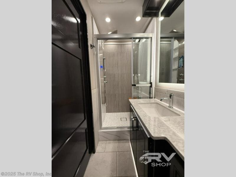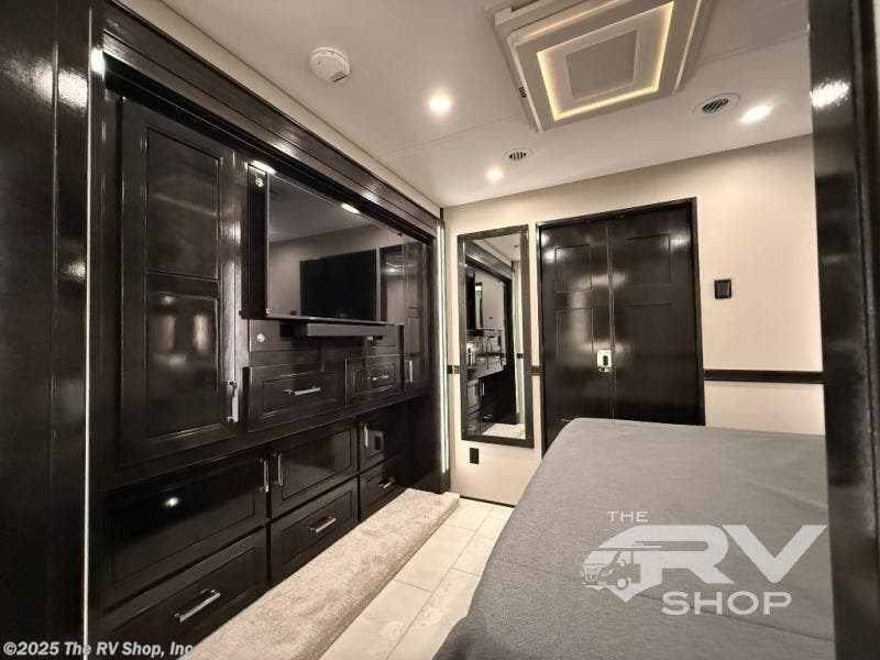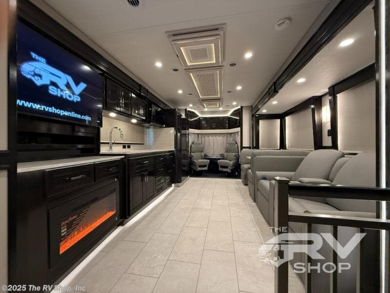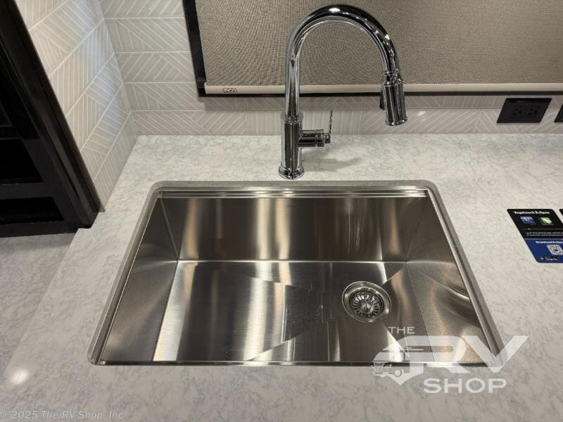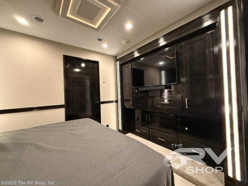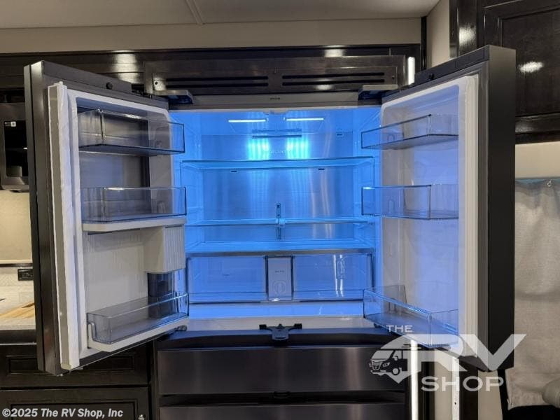 Pack your bags and pick your favorite destination to travel to in this motorhome! Get a good night's rest each night on the 66" x 80" mini-king bed slide and watch your favorite movies in true comfort with the 43" 4K Smart LED TV in the master suite. You will love having quick access into the full rear bath with a lighted vanity mirror, Cambria Quartz countertops, and solid surface shower. Across from the half bathroom is the kitchen pantry and an area prepped to add an optional washer and dryer for clean clothes throughout the entire trip. You can watch the big game either indoors with the 50" 4K Smart LED TV while relaxing on the sofa sleeper and booth dinette or head to the outside entertainment center and watch it with the 43" Smart LED TV with sound bar and USB charging!