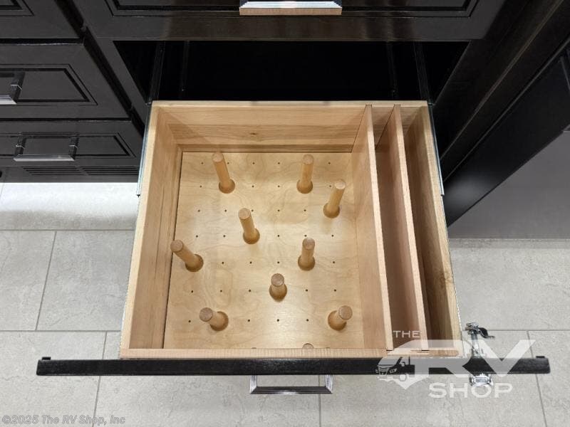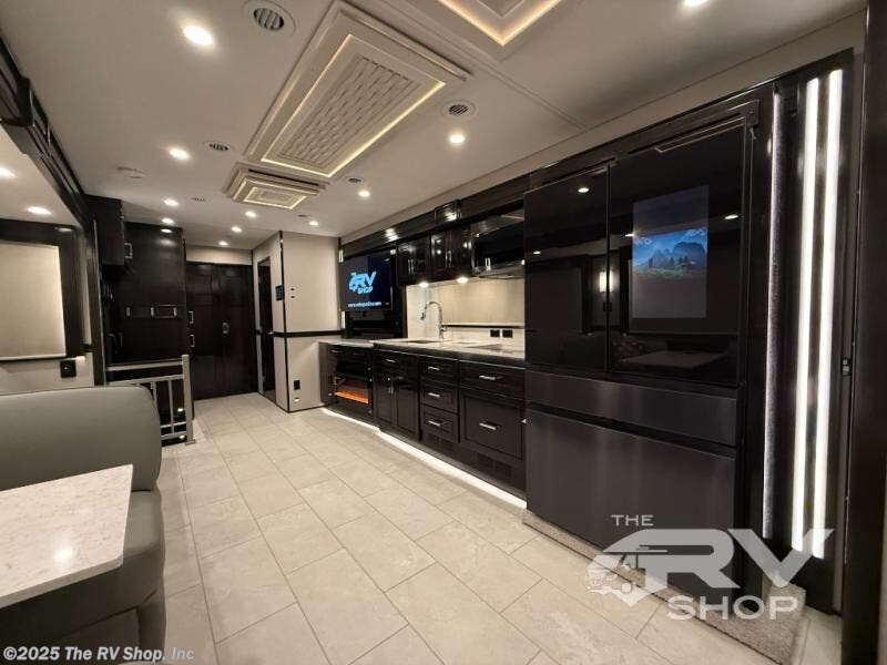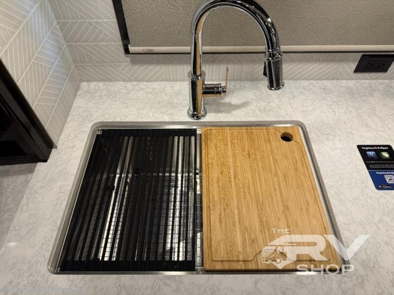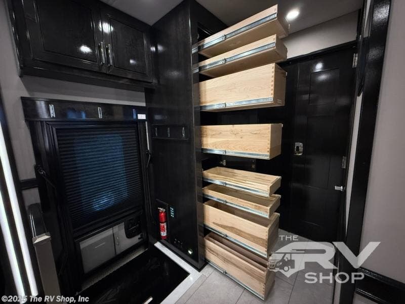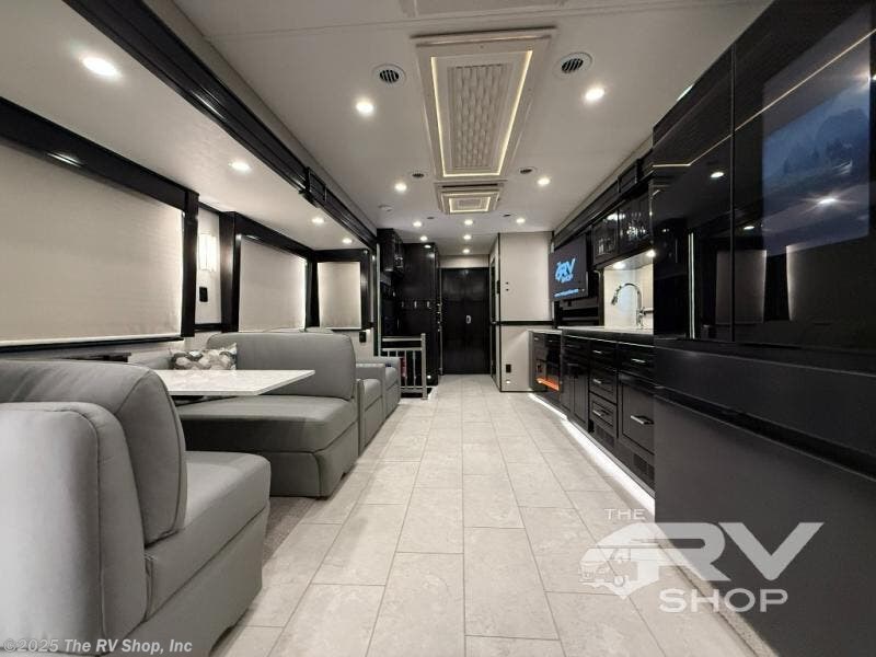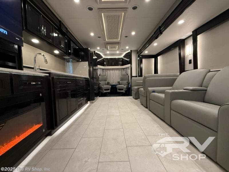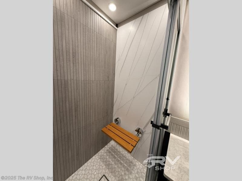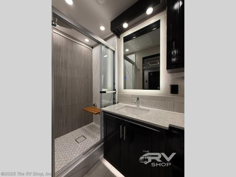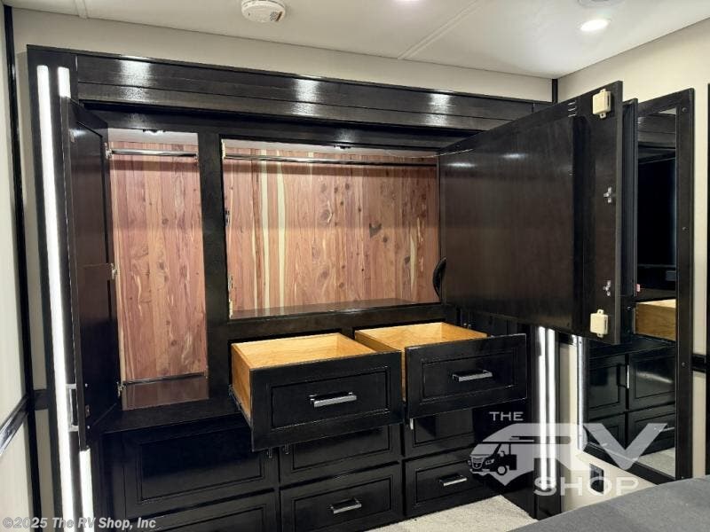 Pack your bags and pick your favorite destination to travel to in this motorhome! Get a good night's rest each night on the 66" x 80" mini-king bed slide and watch your favorite movies in true comfort with the 43" 4K Smart LED TV in the master suite. You will love having quick access into the full rear bath with a lighted vanity mirror, Cambria Quartz countertops, and solid surface shower. Across from the half bathroom is the kitchen pantry and an area prepped to add an optional washer and dryer for clean clothes throughout the entire trip. You can watch the big game either indoors with the 50" 4K Smart LED TV while relaxing on the sofa sleeper and booth dinette or head to the outside entertainment center and watch it with the 43" Smart LED TV with sound bar and USB charging!