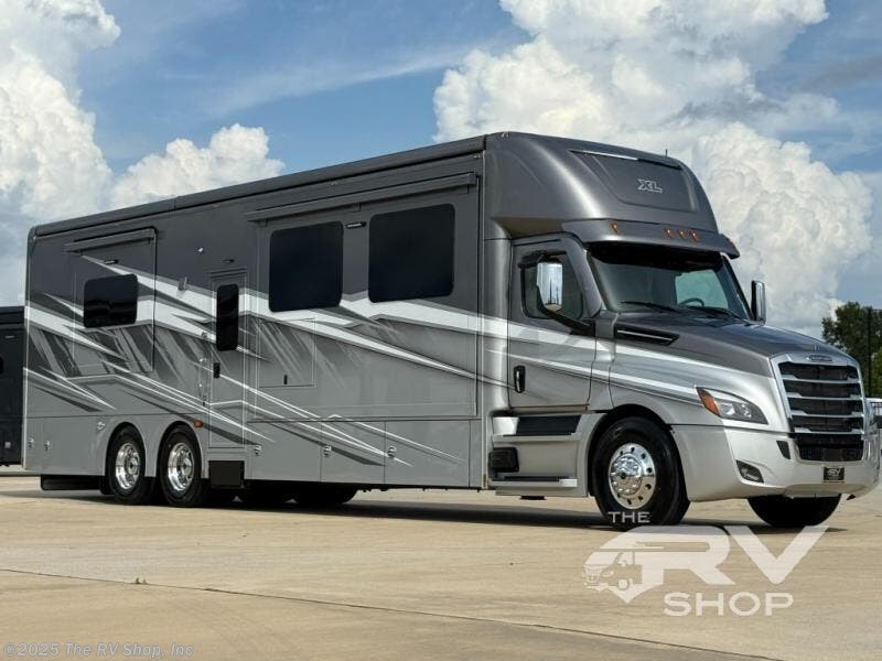 A legend of luxury is what you will find in each one of these Renegade XL Super C diesel motorhomes! Their ultra sleek interiors have been thoughtfully designed with simplified luxury and many unparalleled features like Cambria Quartz countertops throughout and Mastrotto Italian hide leather furniture. The 4-point automatic hydraulic leveling system makes life easier, the multiplex system with color touch panel and Bluetooth app control lets you adjust things with the touch of a finger, and the Aqua-Hot 600D hydronic water and zone heating system provides hot water where ever you go. With seven Colorway paint options and three interior decor options, you can be sure to have the one that fits your style. You will appreciate the electrical systems with dual 3,000W True Sine wave inverters, (4) high-capacity Lithium batteries, and (6) 200W solar panels for off-grid capabilities. Head outdoors to find dual roof-mounted Girard awnings, and steel storage compartments to keep your gear secure. The Renegade XL sits on a Freightliner Cascadia 126 or Western Star 57X tandem axle chassis; see dealer for more details!