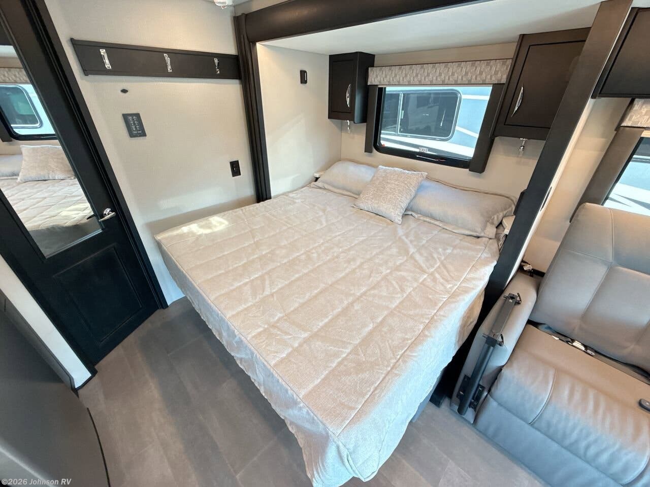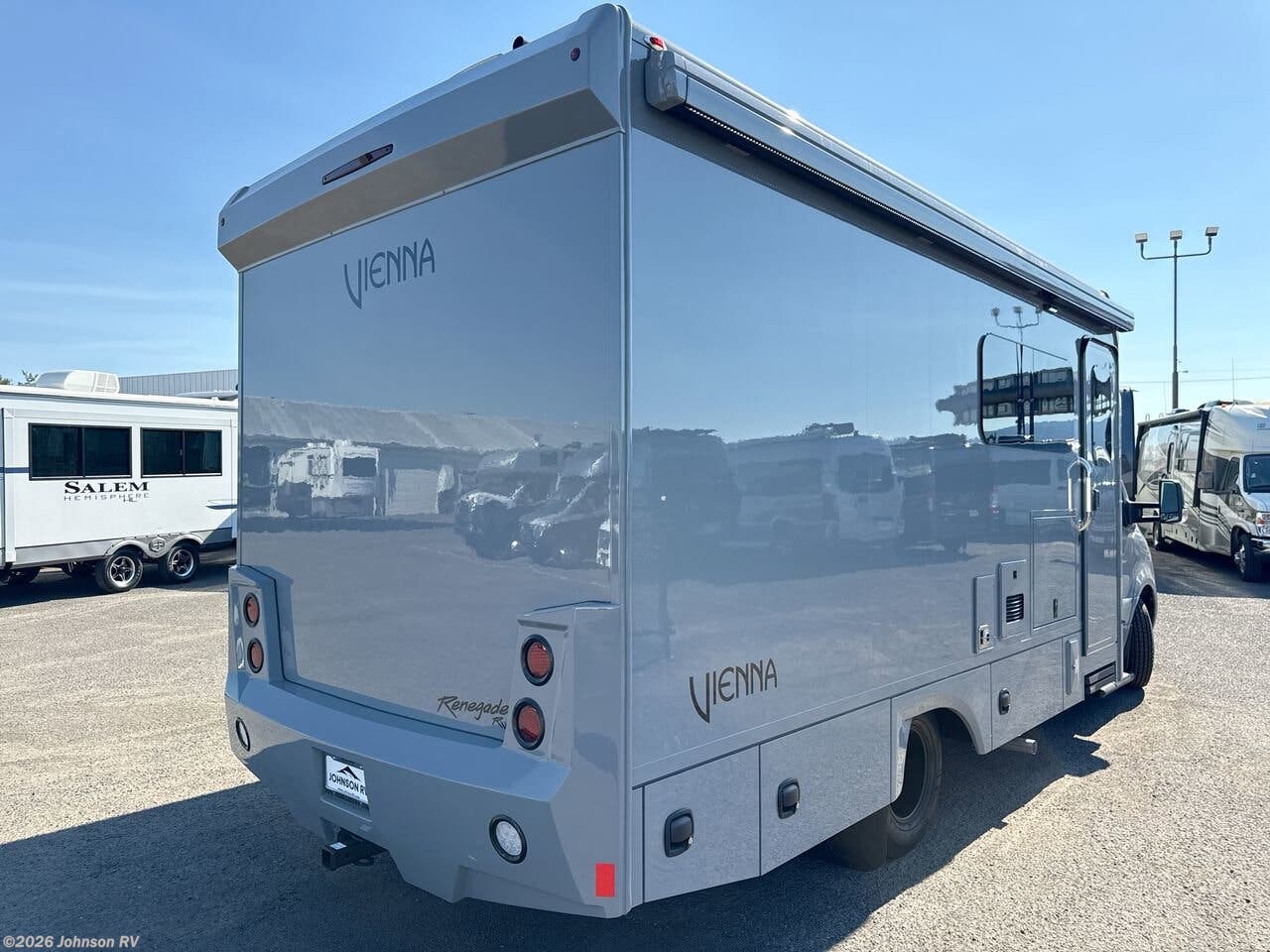 The 2026 Renegade RV Vienna 25RML is a luxurious and innovative Class C motorhome designed to offer comfort and convenience on the road. Built on the reliable Mercedes-Benz Sprinter 4500 Cab Chassis, this RV combines performance with elegance, making it a perfect choice for travelers seeking both adventure and luxury. Under the hood, the Vienna is powered by a 4-cylinder high-output turbo diesel engine, ensuring efficient and powerful performance. The 280-amp alternator and aluminum wheels add to its robust capabilities, while the 4200-pound tow capacity allows for additional travel flexibility. The chassis and cab are equipped with a range of advanced features: - Instrument cluster with color display - MBUX multimedia system with a 10.25-inch touchscreen - Radio, satellite, navigation, Apple CarPlay, and Android Auto compatibility - Wireless charging capabilities - Acoustic package for a quieter ride - Rear and side view cameras for enhanced safety - Heated steering wheel and exterior mirrors - Active lane-keeping assist and Distronic active distance assist - Attention, brake, and traffic sign assist - Rain sensor with wet wiper system - Leather, multifunction steering wheel - Swivel, power, and heated seats - Removable cab mat and privacy shade - Cab courtesy lights and steps The exterior of the Vienna is designed with both style and functionality in mind: - Aerodynamic fiberglass front cap with full transitions - Diamond Shield Nano-Fusion paint protection - Four-point hydraulic leveling system with app control - Lighted exterior entry door assist handle - Keyless entry and powered folding double-entry steps - Eight colorway paint options - Girard GG lateral arm electric awning with LED lights - Slide toppers and frameless tinted windows with screens - Side-swing insulated aluminum compartment doors - Composite liner storage compartments with motion-activated lighting The plumbing systems are designed for convenience and efficiency: - 20-gallon LP tank with remote fill - See-Level tank monitoring system - Full maintenance wet bay and black tank flush system - Fresh water fill and city water hookup - Exterior shower with coil hose - On-demand water pump and whole house water filtration system - LP quick disconnect Inside, the Vienna offers a luxurious and comfortable living space: - Three interior décor options with coordinating wood valances - Single roller night shades and soft touch padded walls and ceiling - Premium vinyl flooring and maple hardwood cabinetry - Hardwood dovetail drawers on soft closing slides - Chrome door hardware and kitchen faucet - Solid surface countertops and backsplash - LED dimmable lighting and memory foam mattress - Ultra soft touch vinyl furniture upholstery - Convertible booth dinette with storage and Jiffy sofa sleeper The kitchen is equipped with modern appliances: - 8 cu. ft., 12V stainless-steel compressor refrigerator - Flush mount 2-burner electric induction cooktop - 1.0 cu. ft. stainless steel convection microwave oven - Truma Aquago Comfort Plus tankless water heater Entertainment systems ensure a pleasurable experience: - 32-inch smart LED TV in the living area with soundbar home theater - 24-inch smart LED TV in the bedroom - Exterior entertainment center with 27-inch smart LED TV - Winegard Connect 5G rooftop OTA antenna with Wi-Fi and 5G readiness The bathroom is designed for comfort and convenience: - Maple hardwood vanity and medicine storage cabinets - LED vanity light and deluxe chrome bath faucet - Porcelain macerator toilet with foot pedal flush - Shower with glass door and skylight Electrical systems are robust and reliable: - 3.6KW Onan LP generator with automatic start system - 30-amp electrical panel and 2,000w true sine wave inverter - Transfer switch with surge protection - 330W solar panel and multiplex control system with Bluetooth app control The construction of the Vienna is both durable and lightweight: - Lightweight vacuum bond laminated sidewalls and floor - Welded aluminum framing and roof truss system - One-piece crowned fiberglass roof surface Popular options include high gloss cabinet finishes, powered theater seating, and enhanced lithium battery upgrades, among others. The 2026 Renegade RV Vienna 25RML is a perfect blend of luxury, technology, and performance, making it an ideal choice for those who love to travel in style. ?? Features Include: 280-Amp Alternator, Aluminum Wheels, Satellite, Navigation, Apple Carplay, Brake, Power, Towel Ring, Bedroom, Kitchen