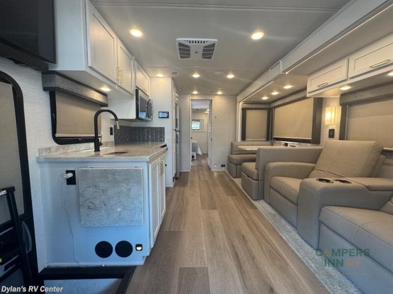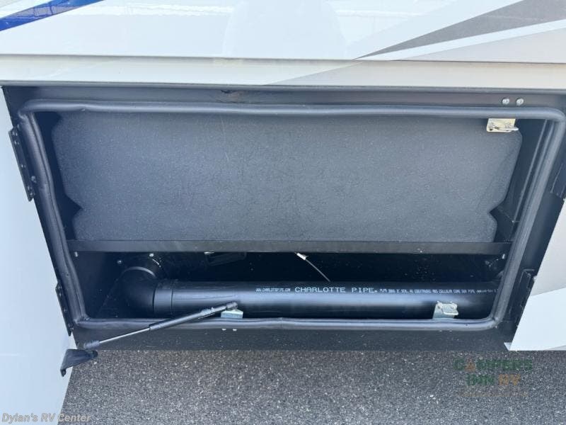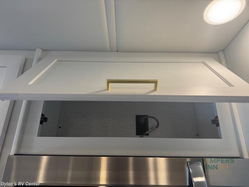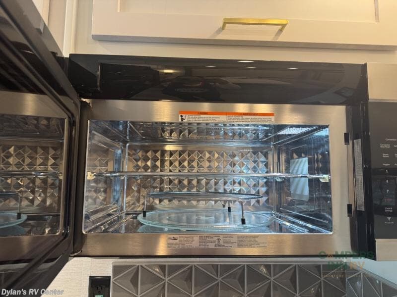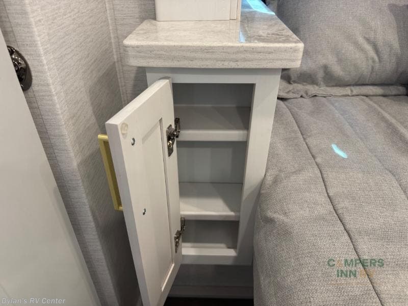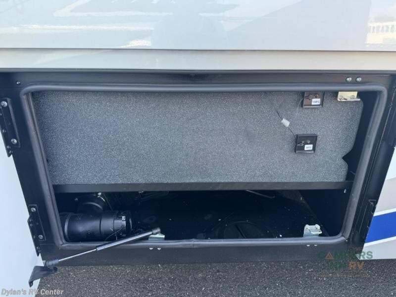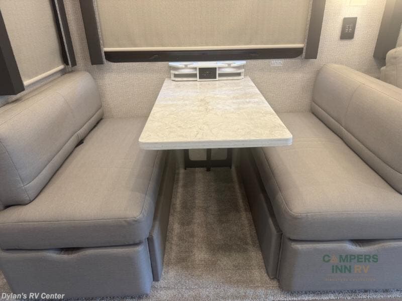 You will experience comfort and luxury with this motorhome! The rear private bedroom has a 66" x 74" mini-king bed across from a 32" Smart LED TV with a dresser below and closets on either side, plus it leads into the separated bathroom. The bathroom has a radius shower with a skylight above for natural lighting as you get ready and a closet that pre-wired and plumbed for an optional washer and dryer for clean clothes throughout your entire trip. The sofa sleeper and booth dinette offer a comfortable place to relax and convert to sleeping space. Grab a cold beverage from the 18 cu. ft. residential stainless steel refrigerator then head to the exterior entertainment center to watch the big game on the 32" Smart LED TV with a sound bar on a swivel and USB charging!