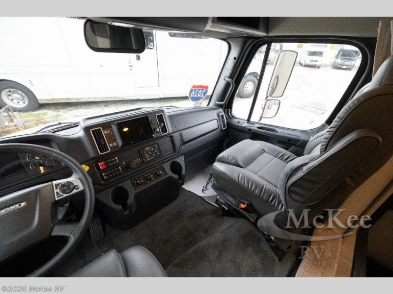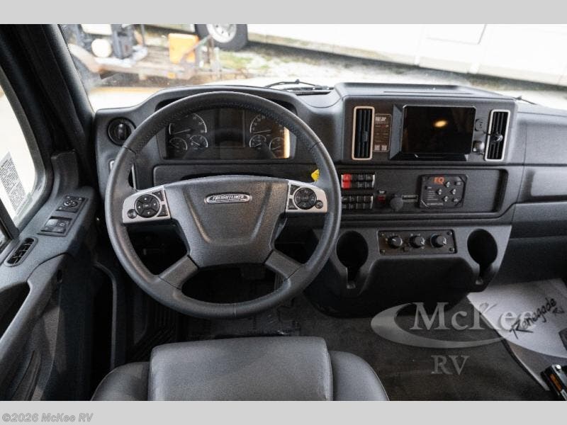 Each one of these Renegade Valencia Super C diesel motorhomes offer ultimate comfort and durable construction! They have a Freightliner S2RV chassis for a refined ride with responsive handling, as well as a powerful Cummins ISB 360 HP engine with a 3,000MH Alison transmission and a single 100 gallon fuel tank to get you farther. A few of the beautifully designed interior features are the solid hardwood cabinets, the polished solid surface countertops, and the stainless steel appliances. Travel in comfort and style with the modern furniture and abundant storage areas like the exterior steel storage compartments with carpeted lining. You will also appreciate the four point automatic hydraulic leveling system and the multiplex system with Bluetooth app control. With eight colorway paint options and three interior décor options, you can be sure to find the right one for you!