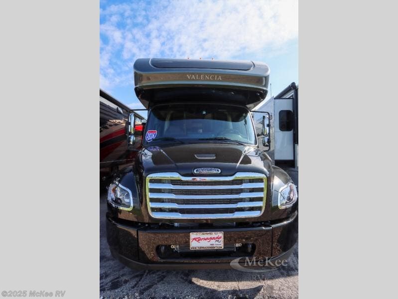 Each one of these Renegade Valencia Super C diesel motorhomes offer ultimate comfort and durable construction! They have a Freightliner S2RV chassis for a refined ride with responsive handling, as well as a powerful Cummins ISB 360 HP engine with a 3,000MH Alison transmission and a single 100 gallon fuel tank to get you farther. A few of the beautifully designed interior features are the solid hardwood cabinets, the polished solid surface countertops, and the stainless steel appliances. Travel in comfort and style with the modern furniture and abundant storage areas like the exterior steel storage compartments with carpeted lining. You will also appreciate the four point automatic hydraulic leveling system and the multiplex system with Bluetooth app control. With eight colorway paint options and three interior décor options, you can be sure to find the right one for you!