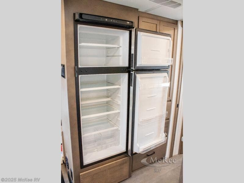 Experience ultimate luxury on wheels in this motor home bedroom. A 65 x 75 queen bed comfort with 32” LED TV entertainment and a full bathroom convenience with ample storage. The kitchen is fitted with spacious closet organization, 10 cu. stainless steel refrigerator, microwave, two-burner cooktop, overhead cabinets, and a pantry storage ideal for storing different stuff. In the living room, you will find a 42” LED TV, overhead cabinets, sofa sleeper flexibility, dinette dining, and a cab-over bed for extra sleep. This unit is also equipped with outdoor entertainment, perfect for socializing and outdoor fun, allowing you to experience extended trips with family during vacations, ideal for those who are adventure-seekers. Unforgettable adventures await! Experience the freedom of luxury motorhome living.