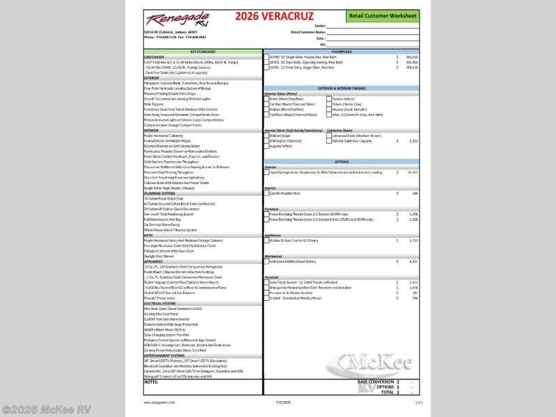 Request More Info on this 2026 Renegade Veracruz 32VDS Offered for sale by McKee RV