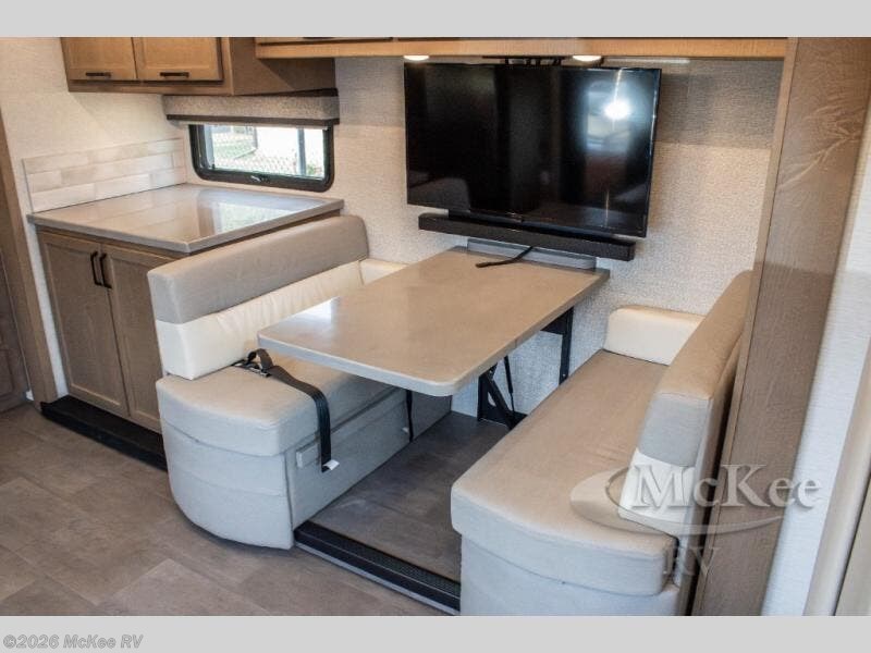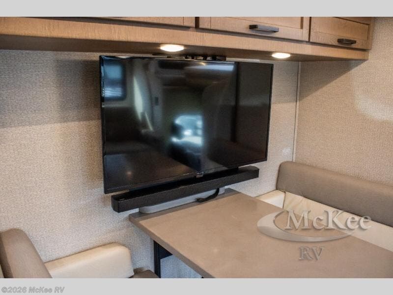 Experience ultimate luxury on wheels in this motor home bedroom. A 65 x 75 queen bed comfort with 32” LED TV entertainment and a full bathroom convenience with ample storage. The kitchen is fitted with spacious closet organization, 10 cu. stainless steel refrigerator, microwave, two-burner cooktop, overhead cabinets, and a pantry storage ideal for storing different stuff. In the living room, you will find a 42” LED TV, overhead cabinets, sofa sleeper flexibility, dinette dining, and a cab-over bed for extra sleep. This unit is also equipped with outdoor entertainment, perfect for socializing and outdoor fun, allowing you to experience extended trips with family during vacations, ideal for those who are adventure-seekers. Unforgettable adventures await! Experience the freedom of luxury motorhome living.