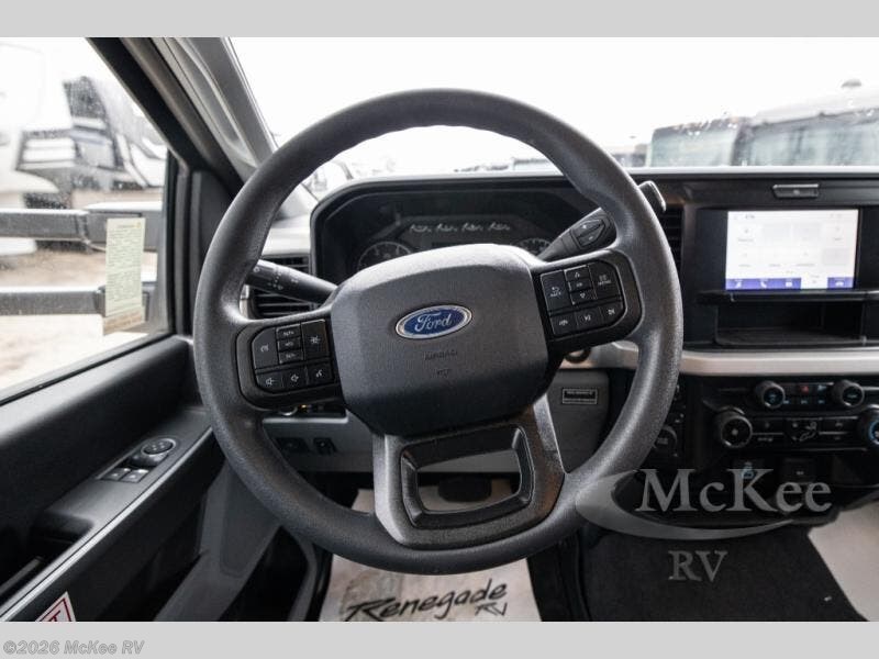 You will have the confidence to go anywhere with the Renegade Veracruz Super C diesel motorhome! It is built with a 6.7L power stroke diesel engine with 330 horsepower and a four-wheel drive system to go off-road when the adventure calls for it. The 8" LCD touchscreen infotainment with wireless phone connection will come in handy when you want to play your favorite tunes. Some other key features to make note of are the XLT trim package, the four-point automatic hydraulic leveling system, the Maxx Air fans in the bath and living area, and ducted heating and air conditioning to keep you comfortable all year long! The interior will have you feeling right at home with three stylish decor options, solid surface countertops throughout, solid wood cabinets, and plenty of storage for all your belongings!
