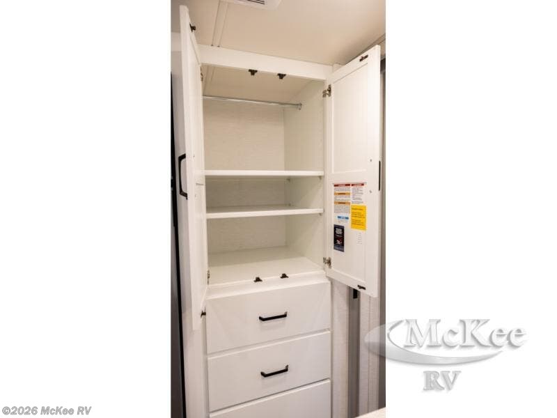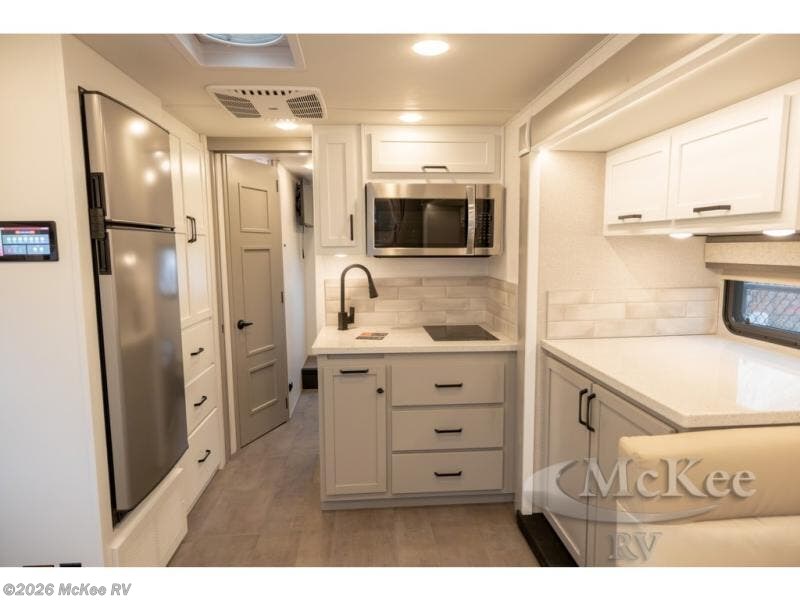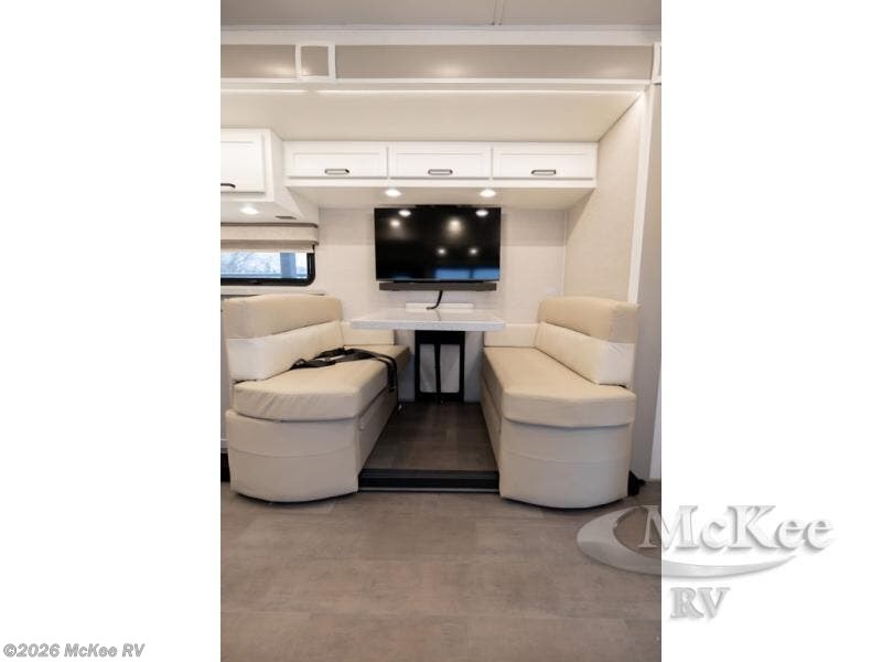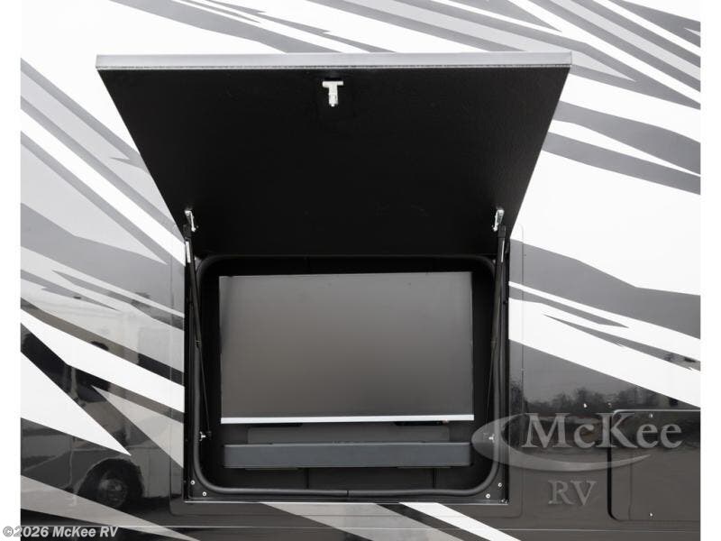 Experience ultimate luxury on wheels in this motor home bedroom. A 60 x 75 queen bed comfort with 32” LED TV entertainment and a full bathroom convenience with ample storage. The kitchen is fitted with spacious closet organization, 10 cu. stainless steel refrigerator, microwave, two-burner cooktop, overhead cabinets, and a pantry storage ideal for storing different stuff. In the living room, you will find a 42” LED TV, overhead cabinets, sofa sleeper flexibility, dinette dining, and a cab-over bed for extra sleep. This unit is also equipped with outdoor entertainment, perfect for socializing and outdoor fun, allowing you to experience extended trips with family during vacations, ideal for those who are adventure-seekers. Unforgettable adventures await! Experience the freedom of luxury motorhome living.