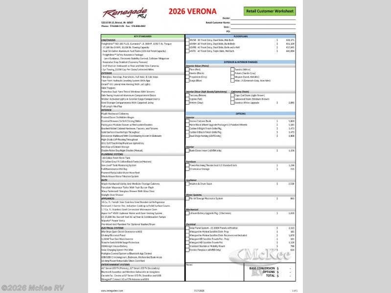 Request More Info on this 2026 Renegade Verona 36VSB Offered for sale by McKee RV