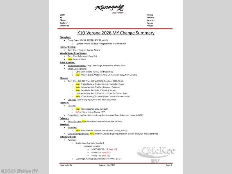 Request More Info on this 2026 Renegade Verona 40VBH Offered for sale by McKee RV