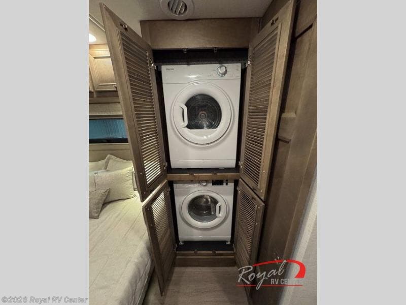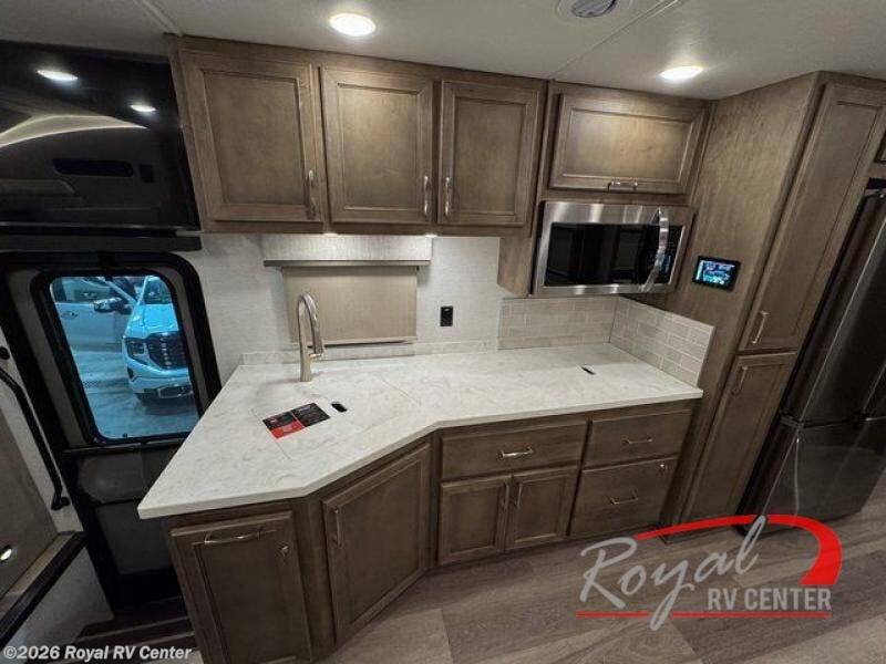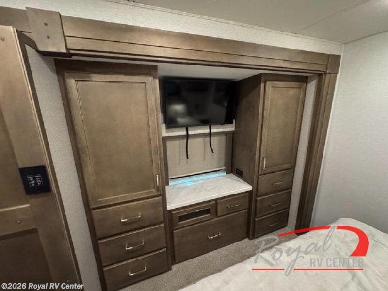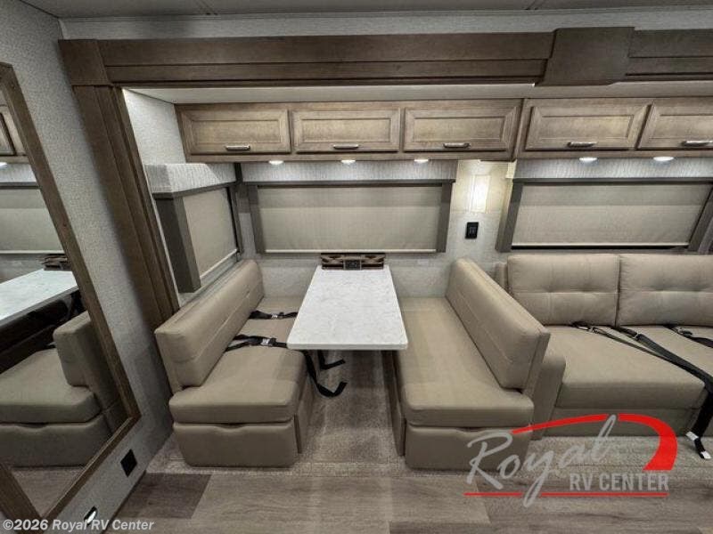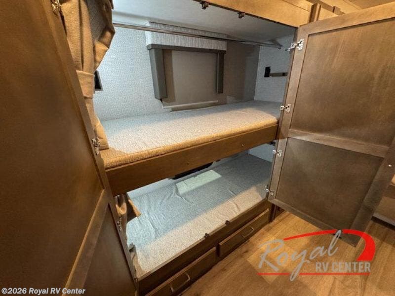 Hit the road to watch the leaves change in the fall, enjoy the sunshine during the summer and experience every season in its beauty! You can sleep like royalty in this coach while your family or friends enjoy comfortable accommodations on the bunk beds or the furniture that doubles as extra sleeping space when needed. The rear bedroom also offers a 32" 4K Smart LED TV, closets and a space prepped to add the washer/dryer option. The bunk beds are across from the full bathroom which offers a radius shower with a skylight. The cook will enjoy making meals using the induction cooktop and the convection microwave oven, and the French door residential refrigerator will hold lots of food and beverages. The booth dinette and sofa sleeper slide are a great place to visit and watch the 43" 4K Smart LED TV or head outside to sit under the electric awning with LED lights and watch the exterior 32" LED TV.