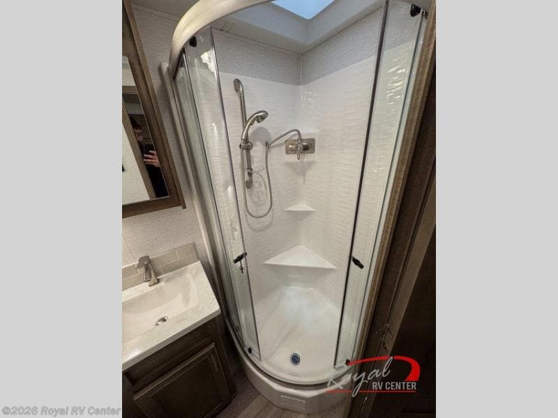 With any Renegade Verona Super C diesel motorhome, you will have confidence to explore the open road! The Cummins 360HP 3200TRV Allison transmission gives you the power and performance to travel anywhere, and the 3000-watt true sine wave inverter makes this an electric coach, plus the aluminum automotive cab construction is designed and tested for occupant protection. The interior boast about the solid hardwood cabinets including every cabinet stile and passage door are made from hardwood for true residential craftsmanship and the articulating cabinet hinges complete the package. More luxurious features include the solid surface countertops, the memory foam mattress, and the wavy patterned fiberglass shower with a glass door. Choose extreme luxury, purpose and durability; take a Verona on the road today!