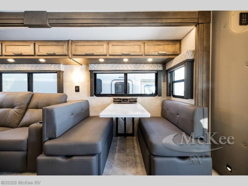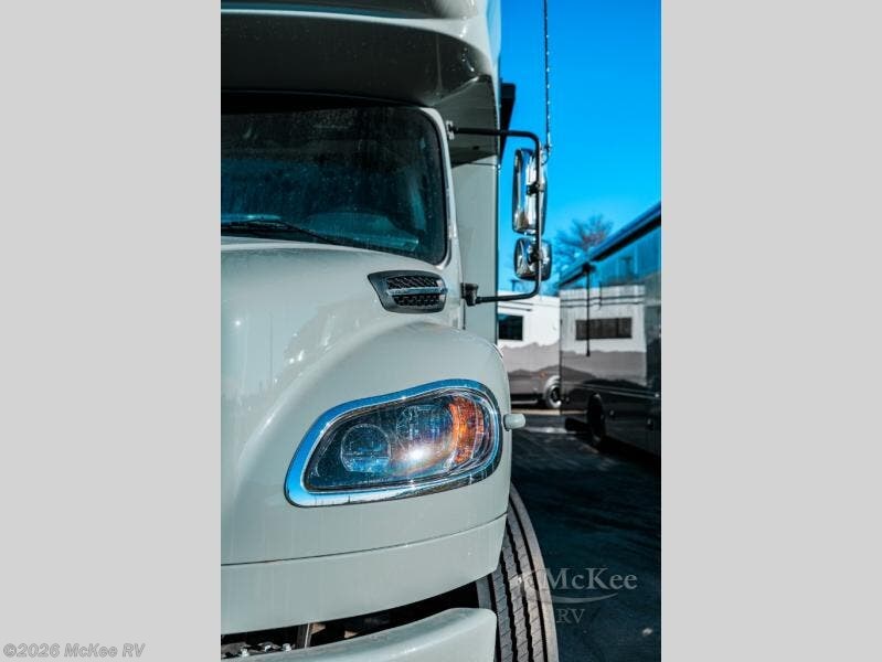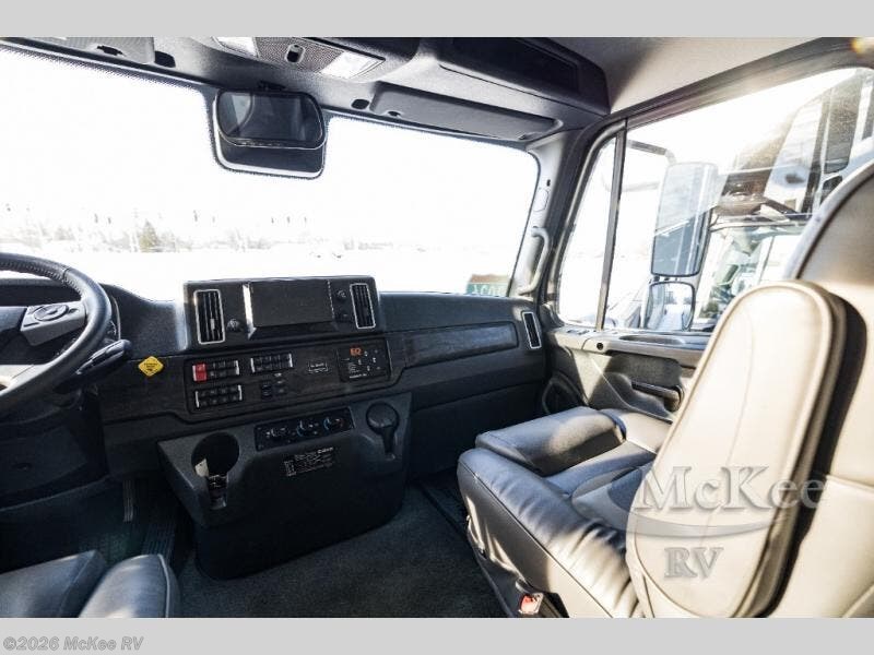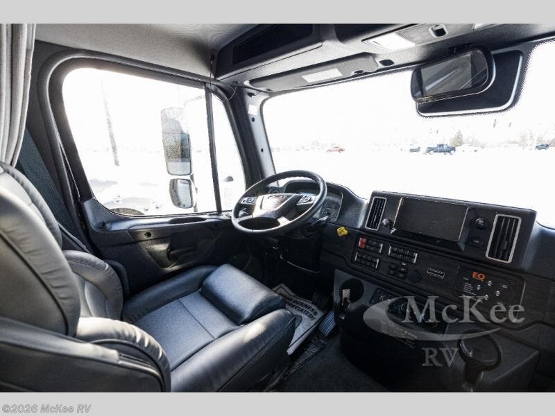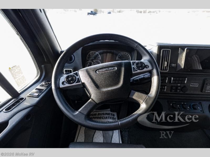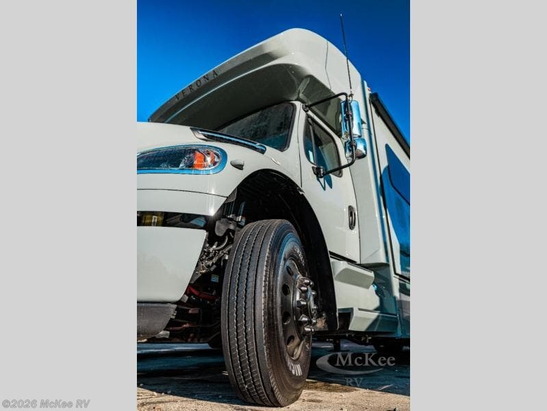 Why not enjoy the ride just as much as the destination, well you can with this Verona! The Airliner rear air suspension, power/heated remote control mirrors, and Freightliner "Safety Assurance package" will make that happen each trip. You will also have all the comforts of home such as the kitchen amenities including a convection microwave oven and a French door residential refrigerator, plus the Ultra-Soft sofa sleeper and booth dinette to relax on. The half bath is super convenient when you have two or more onboard, and the master suite offers a 66" x 74" king bed slide with lots of storage and a 32" 4K Smart LED TV, plus a rear full bathroom. There is so much more to love about this coach, step right up!