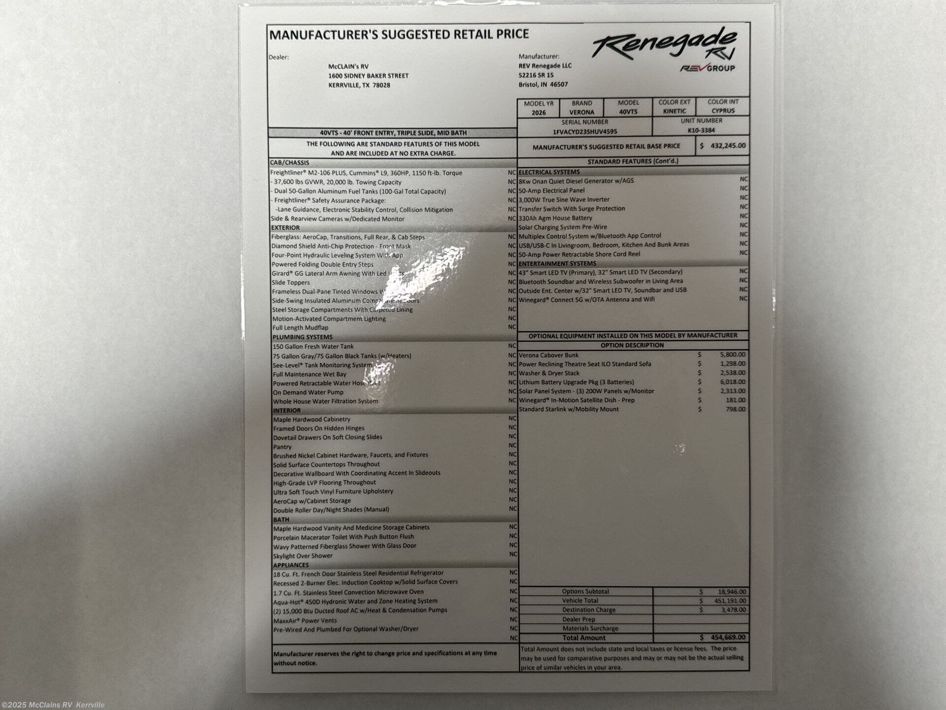 Request More Info on this 2026 Renegade VERONA 40VTS Offered for sale by McClains RV