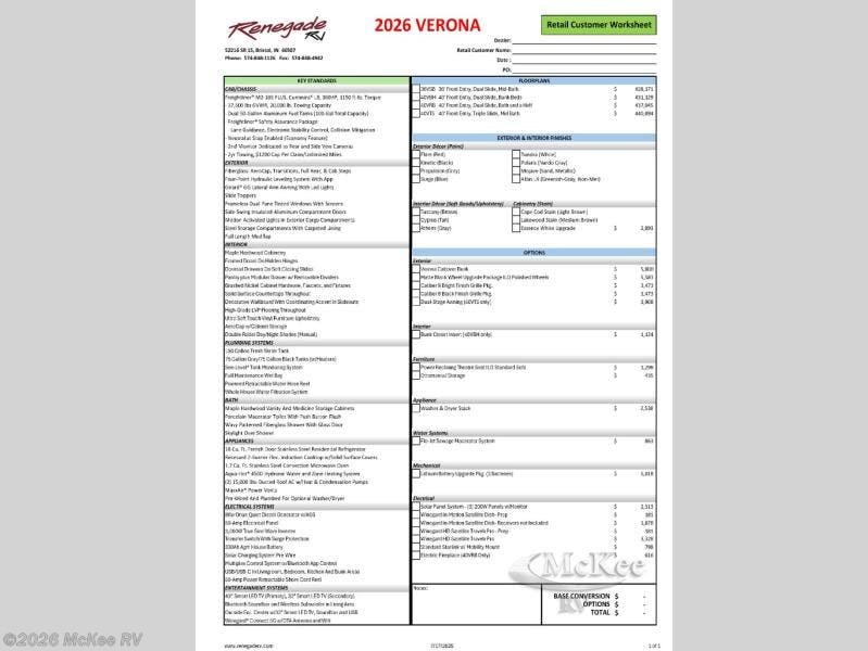 Request More Info on this 2026 Renegade Verona 40VTS Offered for sale by McKee RV