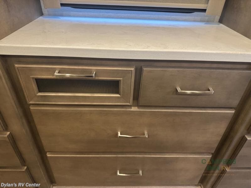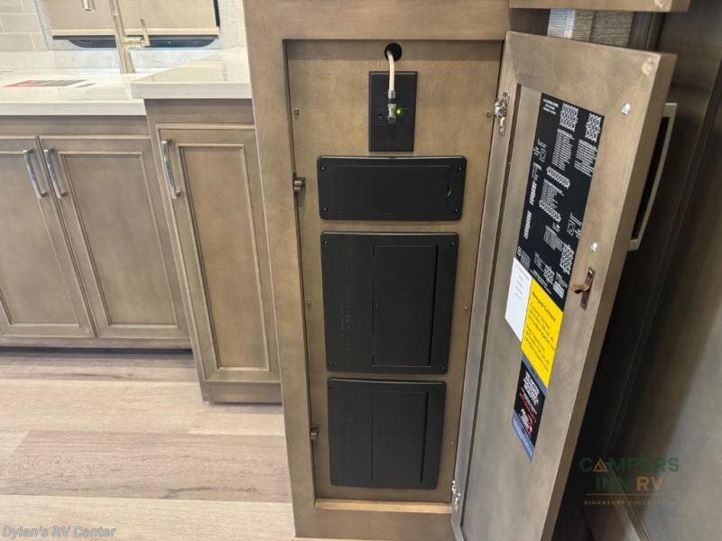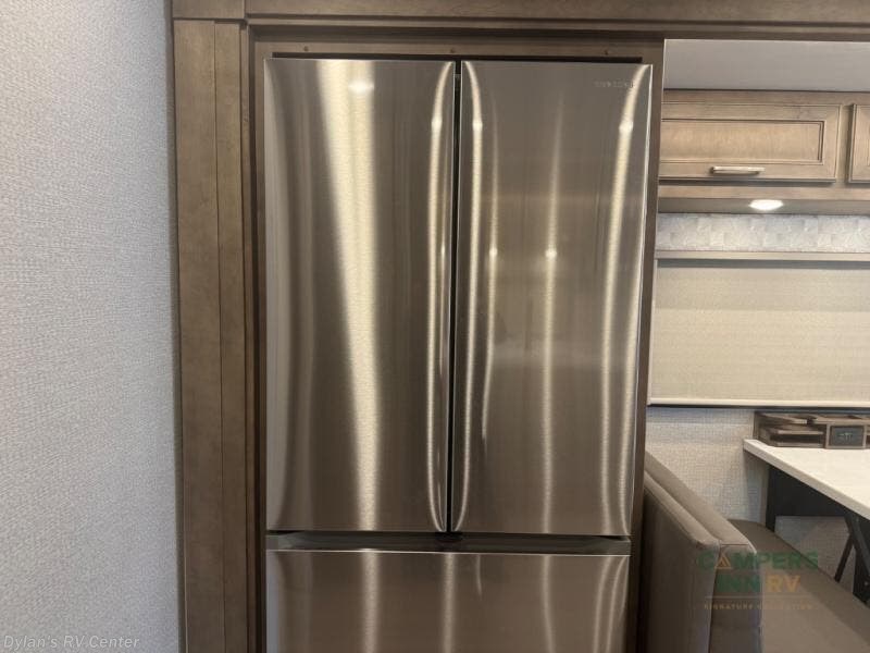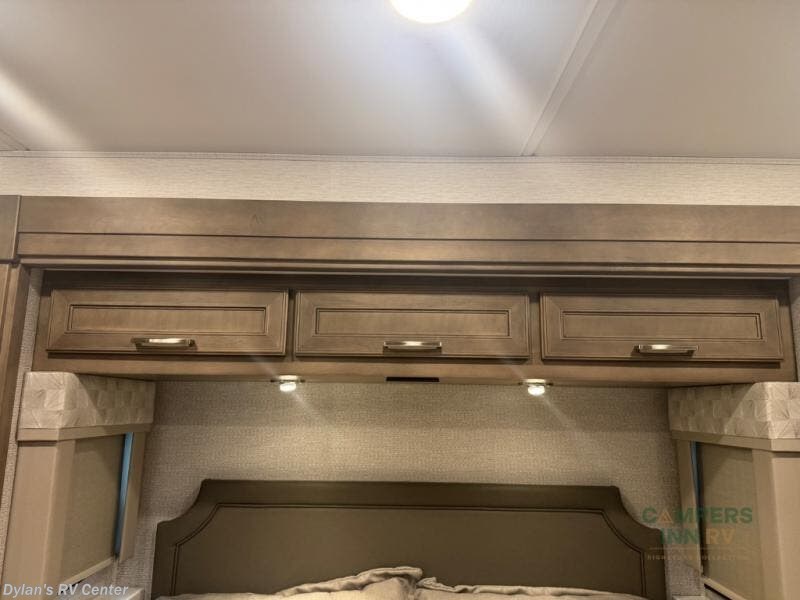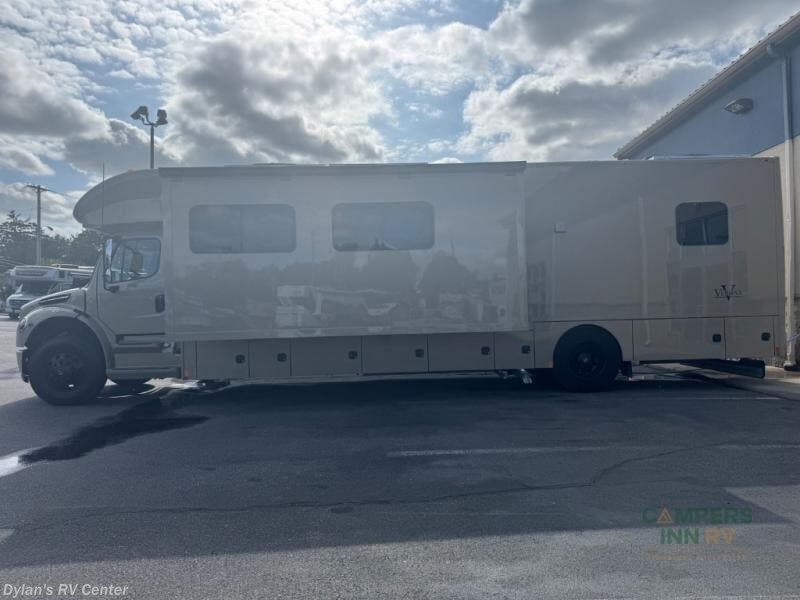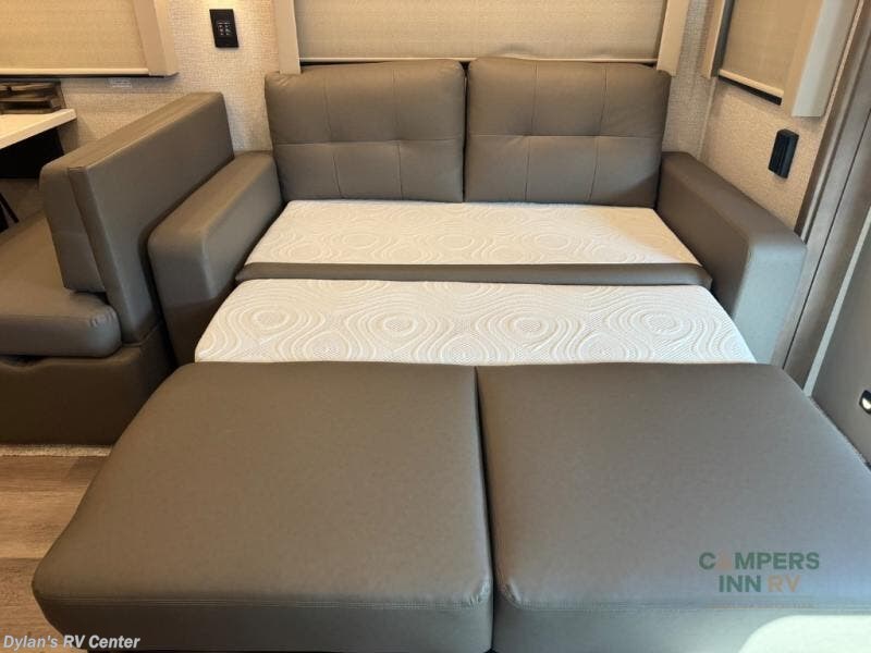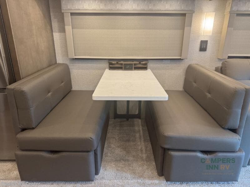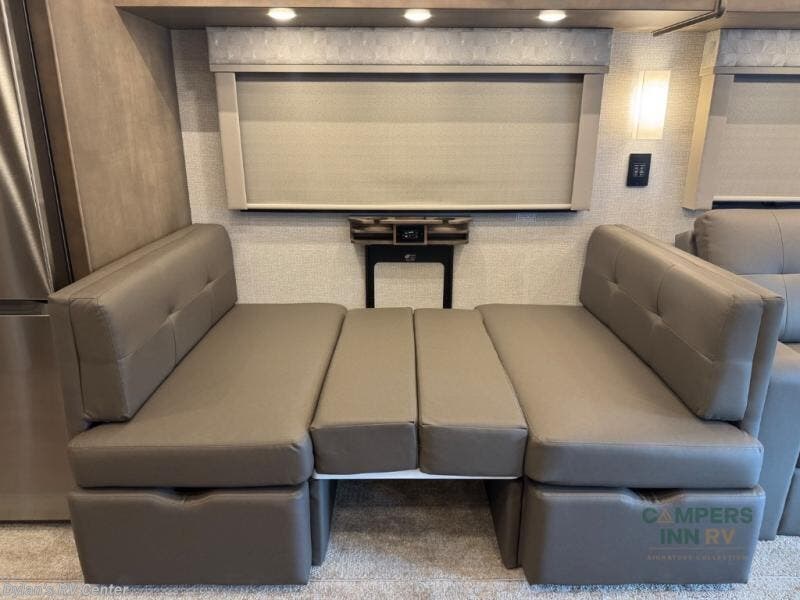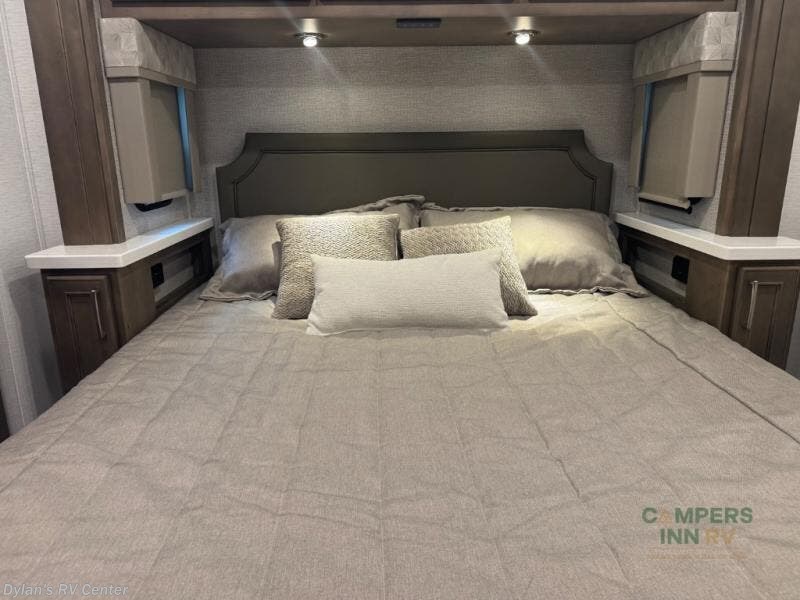 Renegade Verona Super C diesel motorhome 40VTS highlights: Bath and a Half Mini-King Bed Sofa Sleeper Separated Bathroom Outside Entertainment You will feel right at home in this motorhome! With a separated bathroom, one person can freshen up in the radius shower while another uses the sink or maybe put a load of laundry in the optional washer and dryer. There are plenty of places to sleep between the 66" x 74" mini-king bed in the rear private bedroom, the convertible booth dinette, and the sofa sleeper. You can prepare your best home cooked meals with the two burner induction cooktop in the fully equipped kitchen. Crank up the tunes with the Samsung soundbar with Bluetooth, wireless subwoofer, and JBL speakers. The Garmin infotainment with RV maps will ensure you stay on track! With any Renegade Verona Super C diesel motorhome, you will have confidence to explore the open road! The Cummins 360HP 3200TRV Allison transmission gives you the power and performance to travel anywhere, and the 3000-watt true sine wave inverter makes this an electric coach, plus the aluminum automotive cab construction is designed and tested for occupant protection. The interior boast about the solid hardwood cabinets including every cabinet stile and passage door are made from hardwood for true residential craftsmanship and the articulating cabinet hinges complete the package. More luxurious features include the solid surface countertops, the memory foam mattress, and the wavy patterned fiberglass shower with a glass door. Choose extreme luxury, purpose and durability; take a Verona on the road today! Visit us at Campers Inn Signature RV today!
