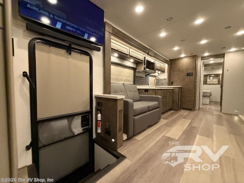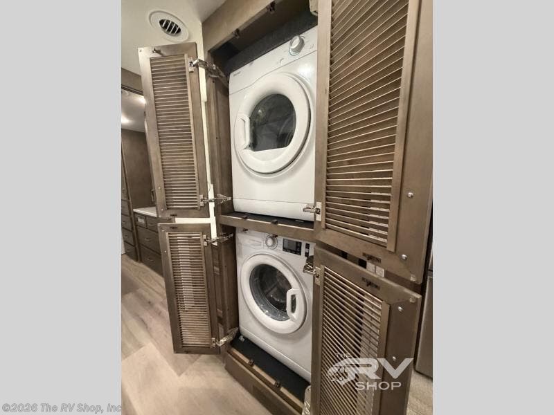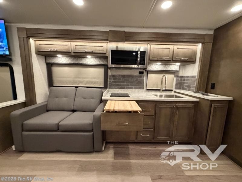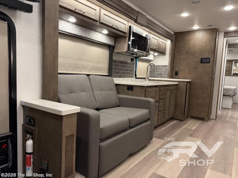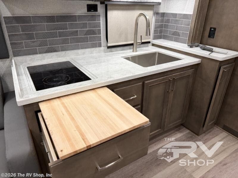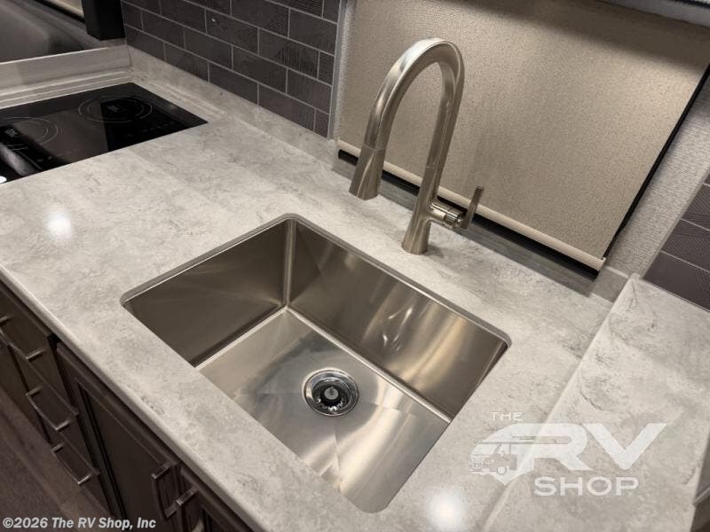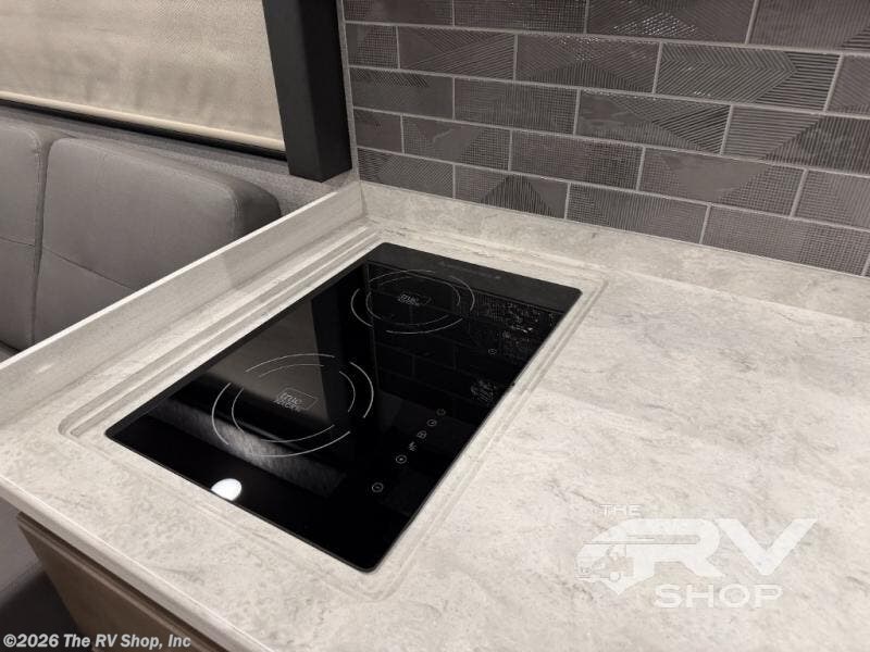 You will feel right at home in this motorhome! With a separated bathroom, one person can freshen up in the radius shower while another uses the sink or maybe put a load of laundry in the optional washer and dryer. There are plenty of places to sleep between the 66" x 74" mini-king bed in the rear private bedroom, the convertible booth dinette, and the sofa sleeper. You can prepare your best home cooked meals with the two burner induction cooktop in the fully equipped kitchen. Crank up the tunes with the Samsung soundbar with Bluetooth, wireless subwoofer, and JBL speakers. The Garmin infotainment with RV maps will ensure you stay on track!