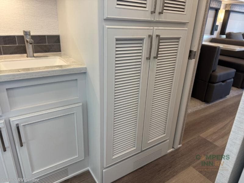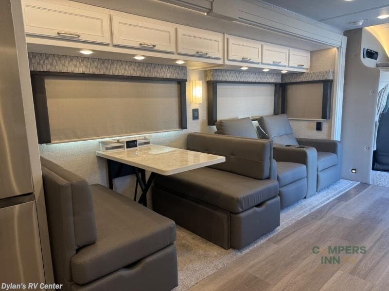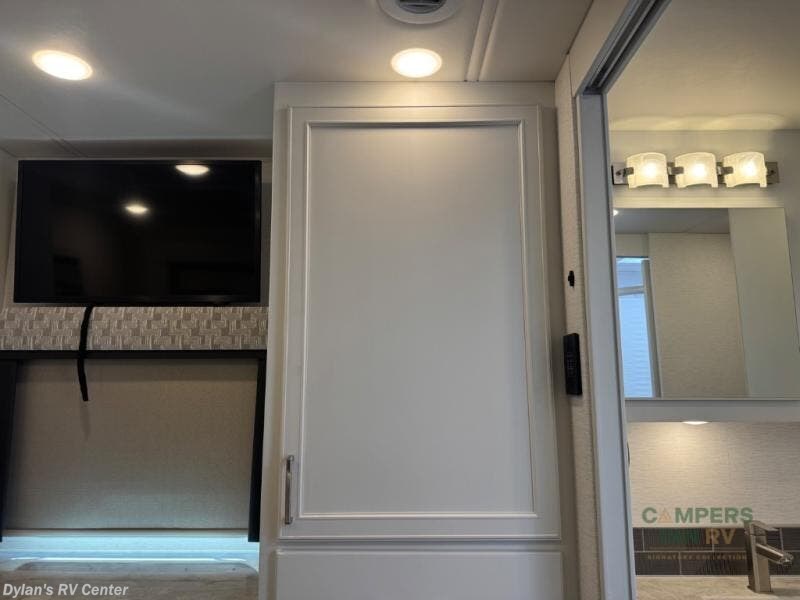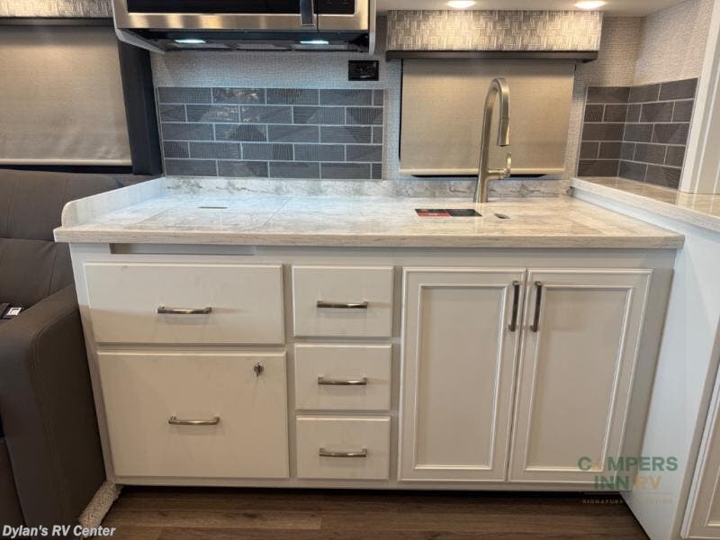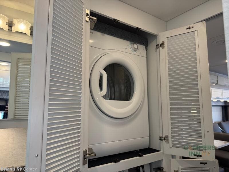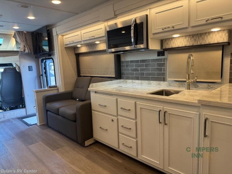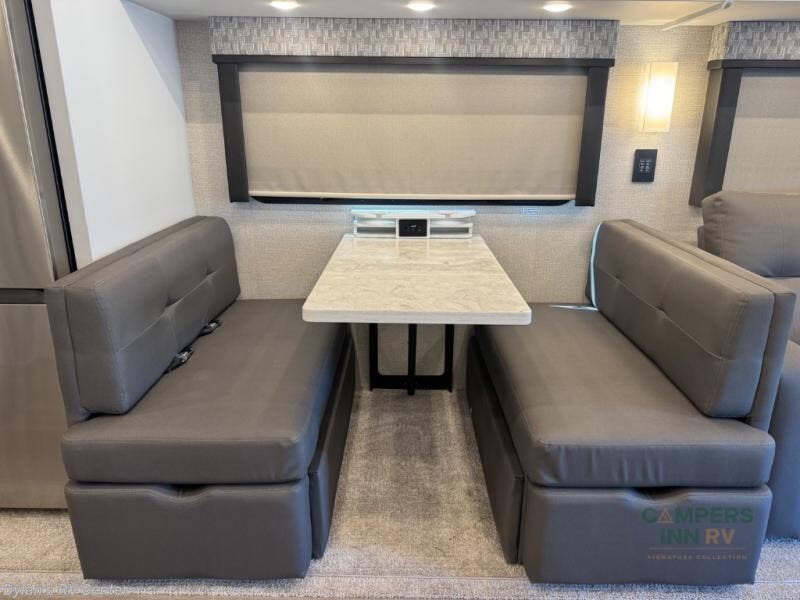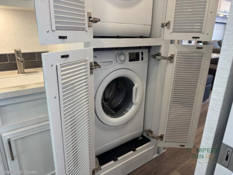 You will feel right at home in this motorhome! With a separated bathroom, one person can freshen up in the radius shower while another uses the sink or maybe put a load of laundry in the optional washer and dryer. There are plenty of places to sleep between the 66" x 74" mini-king bed in the rear private bedroom, the convertible booth dinette, and the sofa sleeper. You can prepare your best home cooked meals with the two burner induction cooktop in the fully equipped kitchen. Crank up the tunes with the Samsung soundbar with Bluetooth, wireless subwoofer, and JBL speakers. The Garmin infotainment with RV maps will ensure you stay on track!