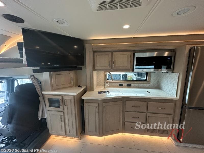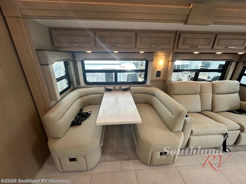 With any Verona LE Super C diesel motorhome by Renegade, you will be wowed by all the luxury features. The 2" vacuum laminated sidewalls feature welded aluminum framing for added support, and the 1.5" high density foam insulation in the sidewalls and roof means you can travel all year long in any season. The captain will love how easy it will be to drive with the Allison 3200TRV electronic 6-speed transmission, plus there are rear and side view cameras for easy parking and an upgraded cab sound system to keep the tunes going. Each model includes dual 15,000 BTU roof A/C pumps, an Aqua-Hot 450D hydronic water and zone heating system, plus MaxxAir power vents to keep you comfortable all year long. All of your power needs will be met with an 8kW Onan Quiet diesel generator, 3,000w True Sine wave inverter, (2) 330Ah AGM house batteries, and (3) 200W solar panels. Inside, there are three modern decor options to choose from, along with solid surface countertops, grouted tile backsplash, Maple hardwood cabinetry, and many more comforts of home!
